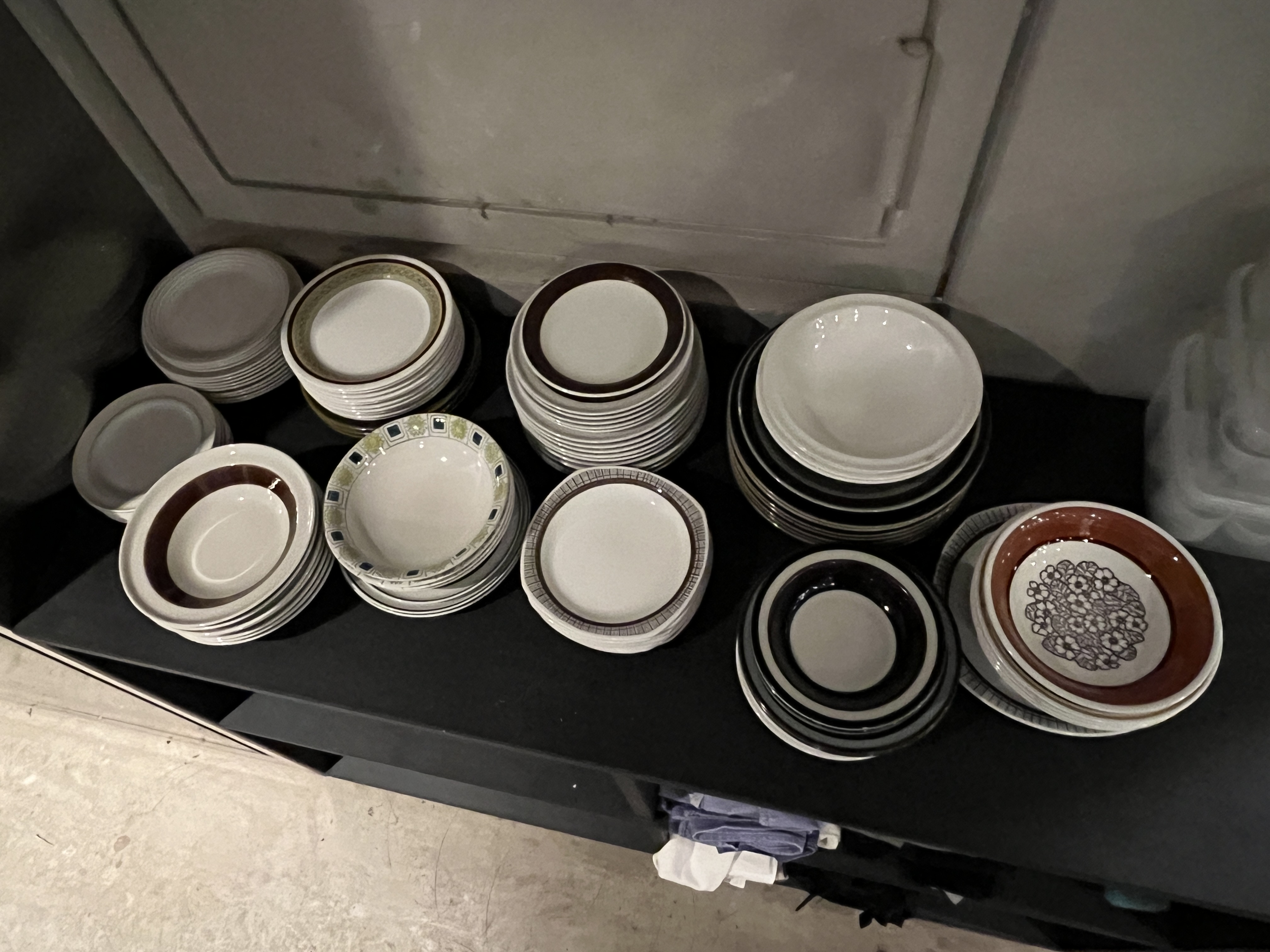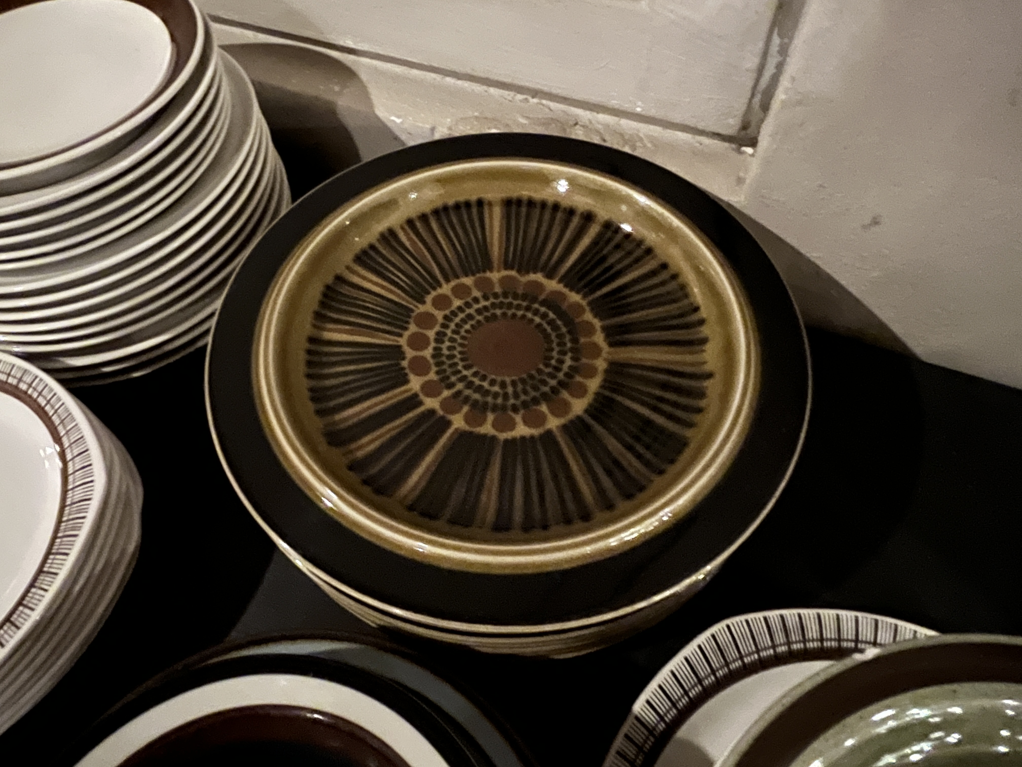 Diverse tallrikar, skålar och assietter i varierade storlekar och färger