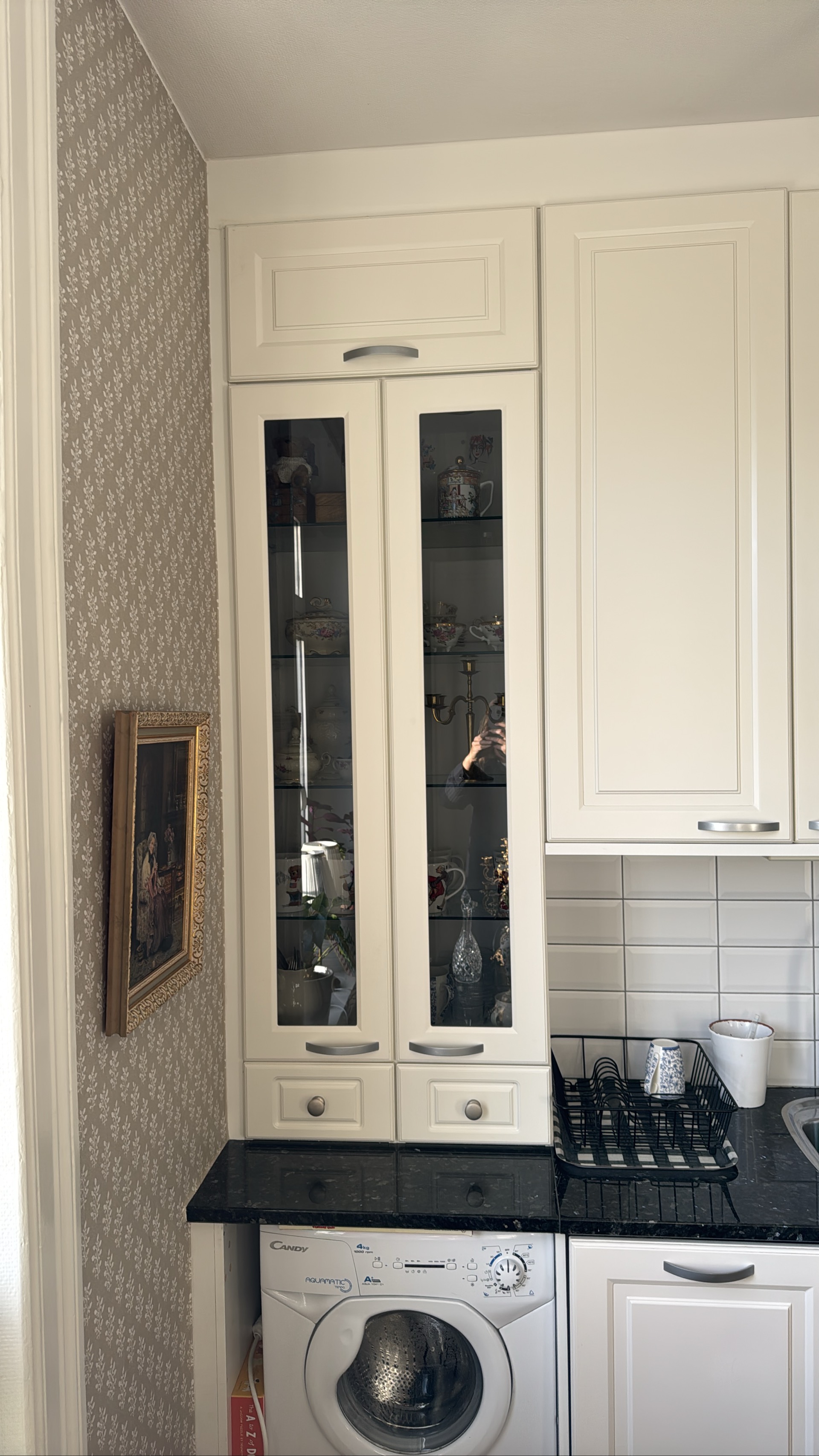 - 1 st vitrinskåp på bänk, bredd 60 cm, höjd 177 cm