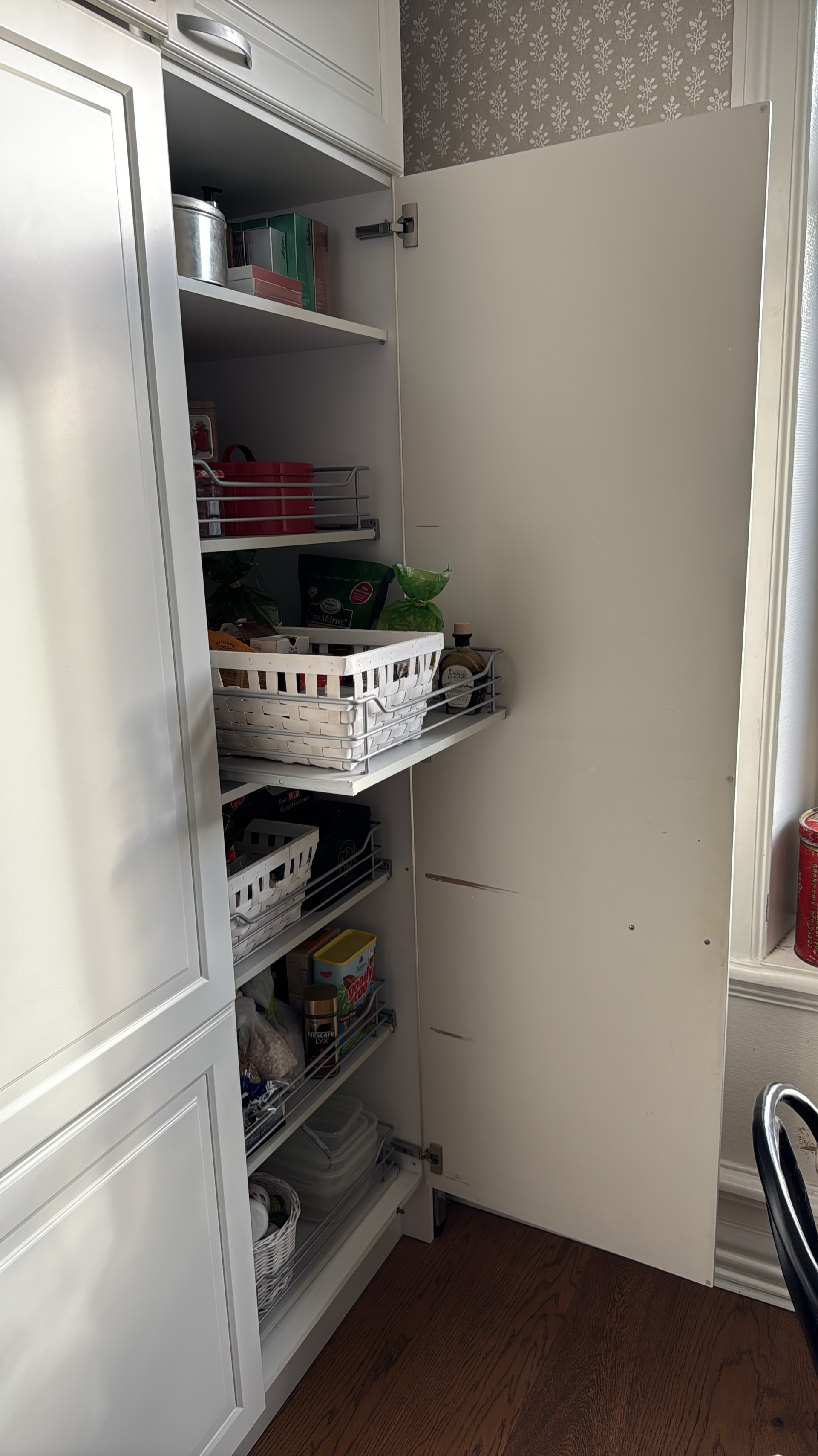 - 1 st högskåp skafferi, bredd 60 cm, djup 57,5 cm, höjd 232 cm, sockel 17 cm, överskåp med höjd om 41 cm