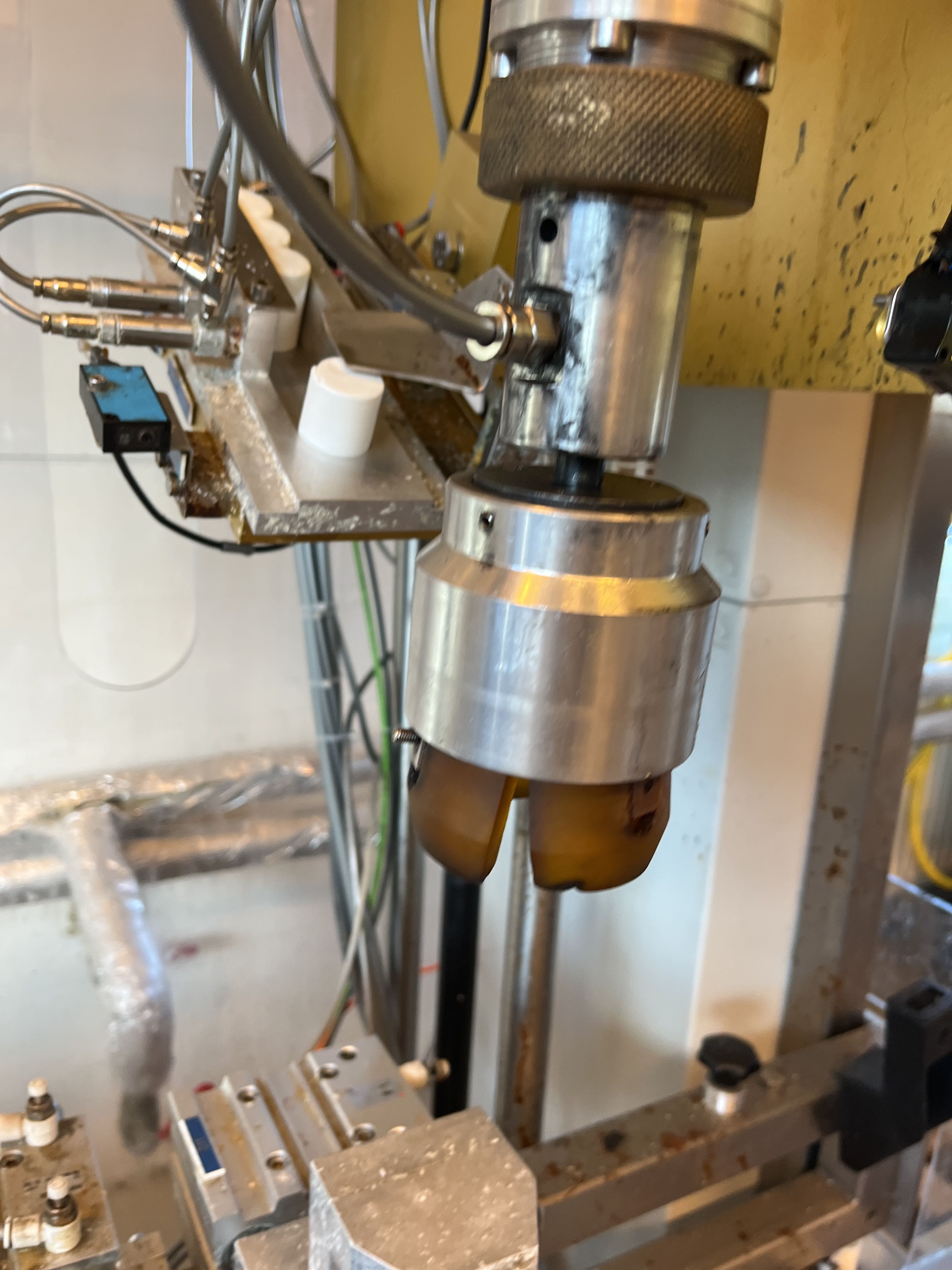 Denna maskin har använts till att monter korkar på flaskor