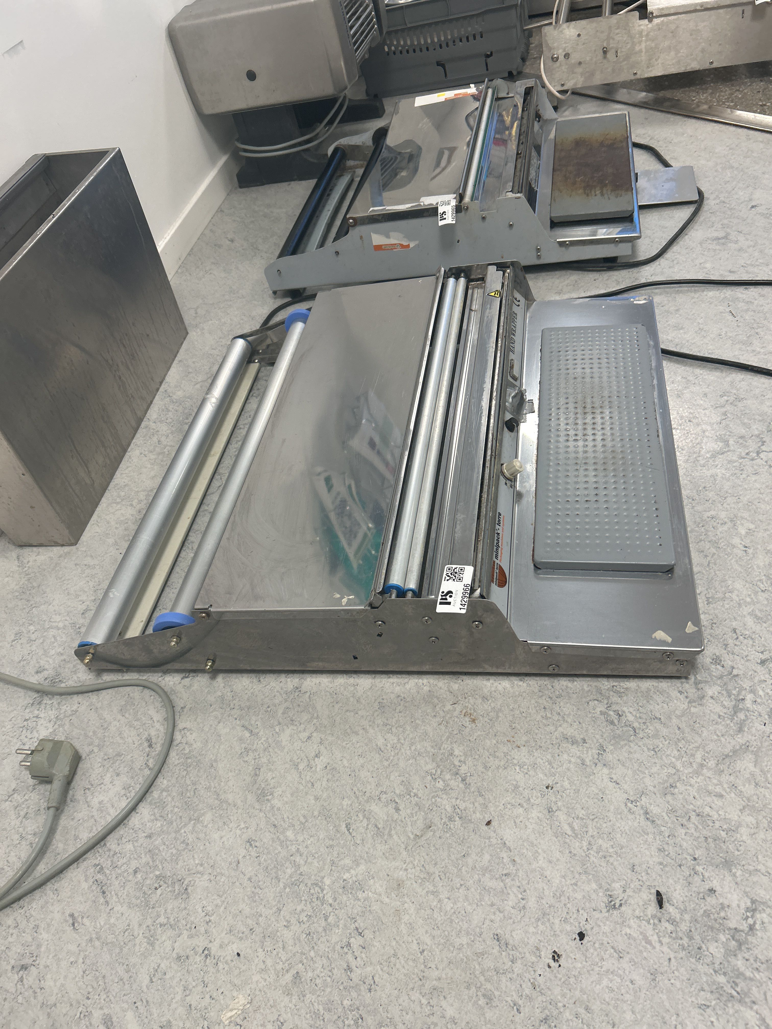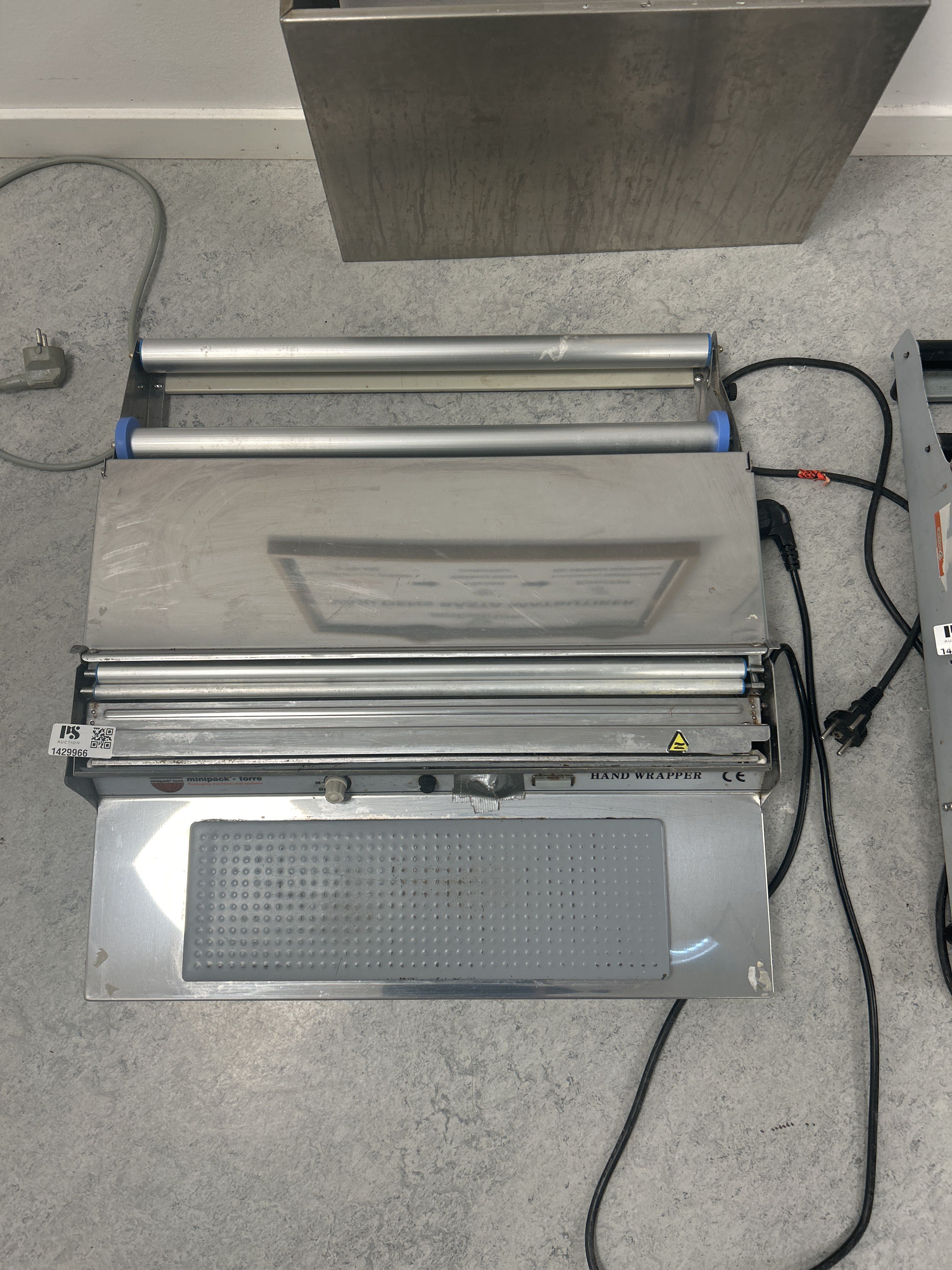 Tillverkare och exakt modell framgår inte tydligt av bilden, men utförandet är typiskt för professionella handwrappers som används i storkök och livsmedelsbutik.