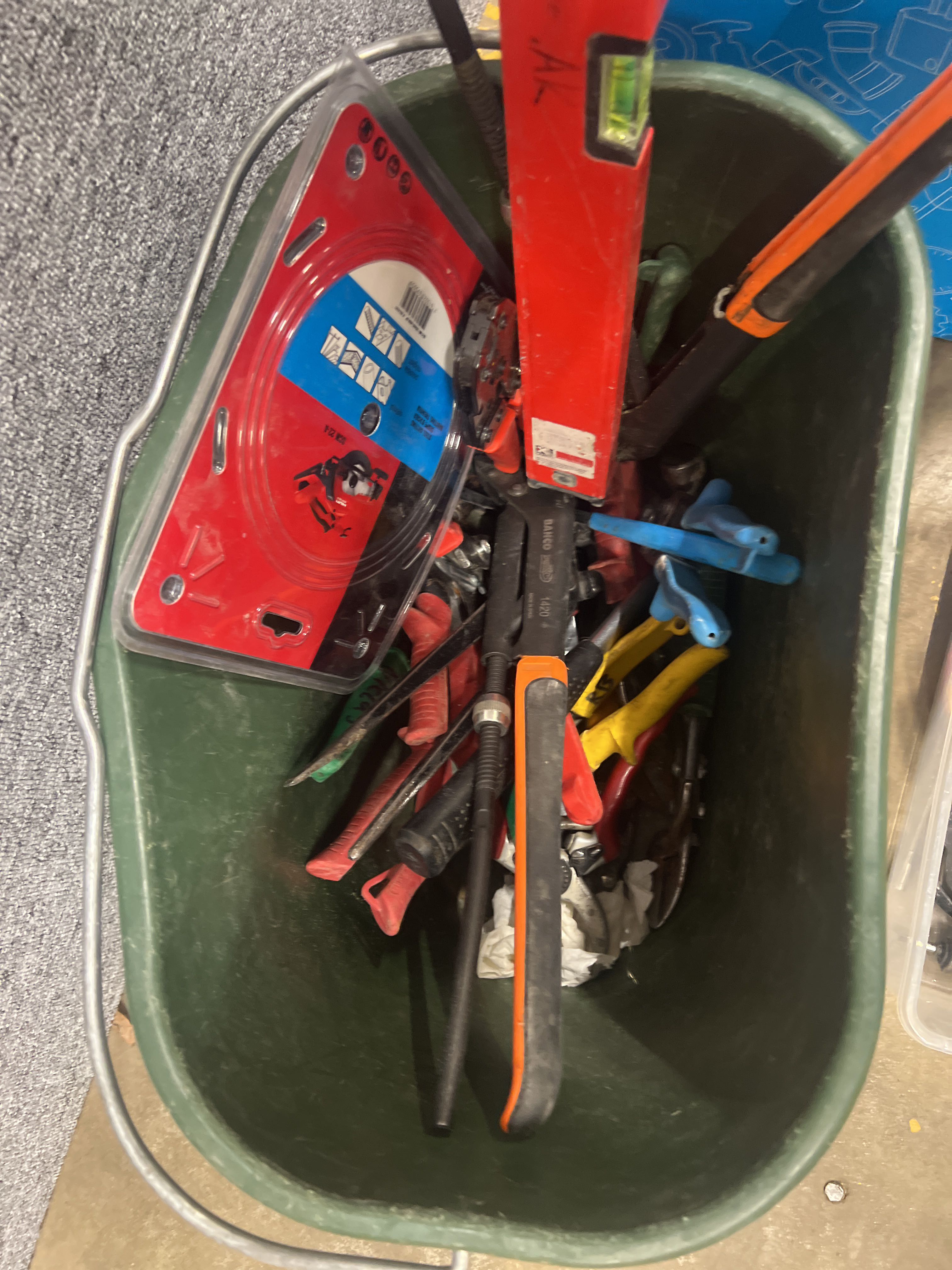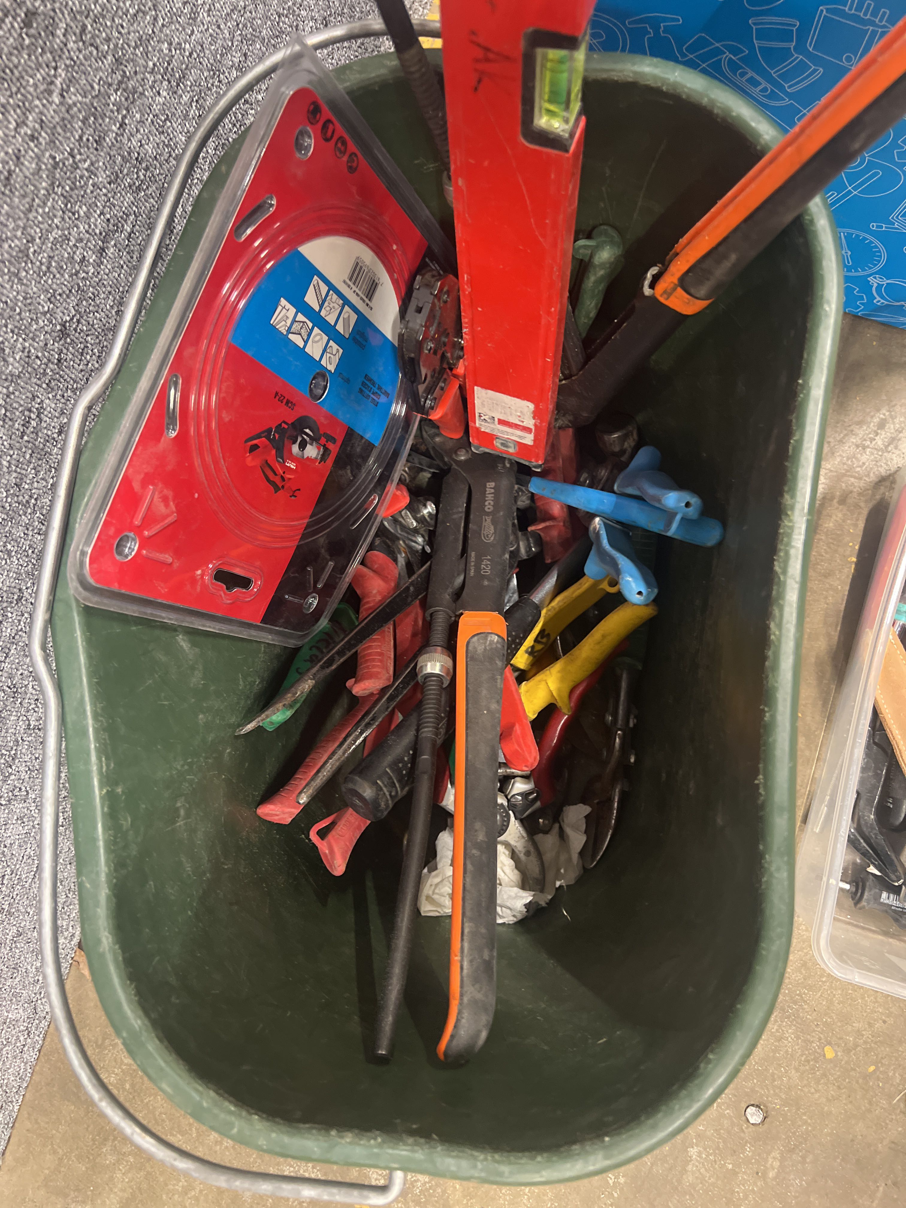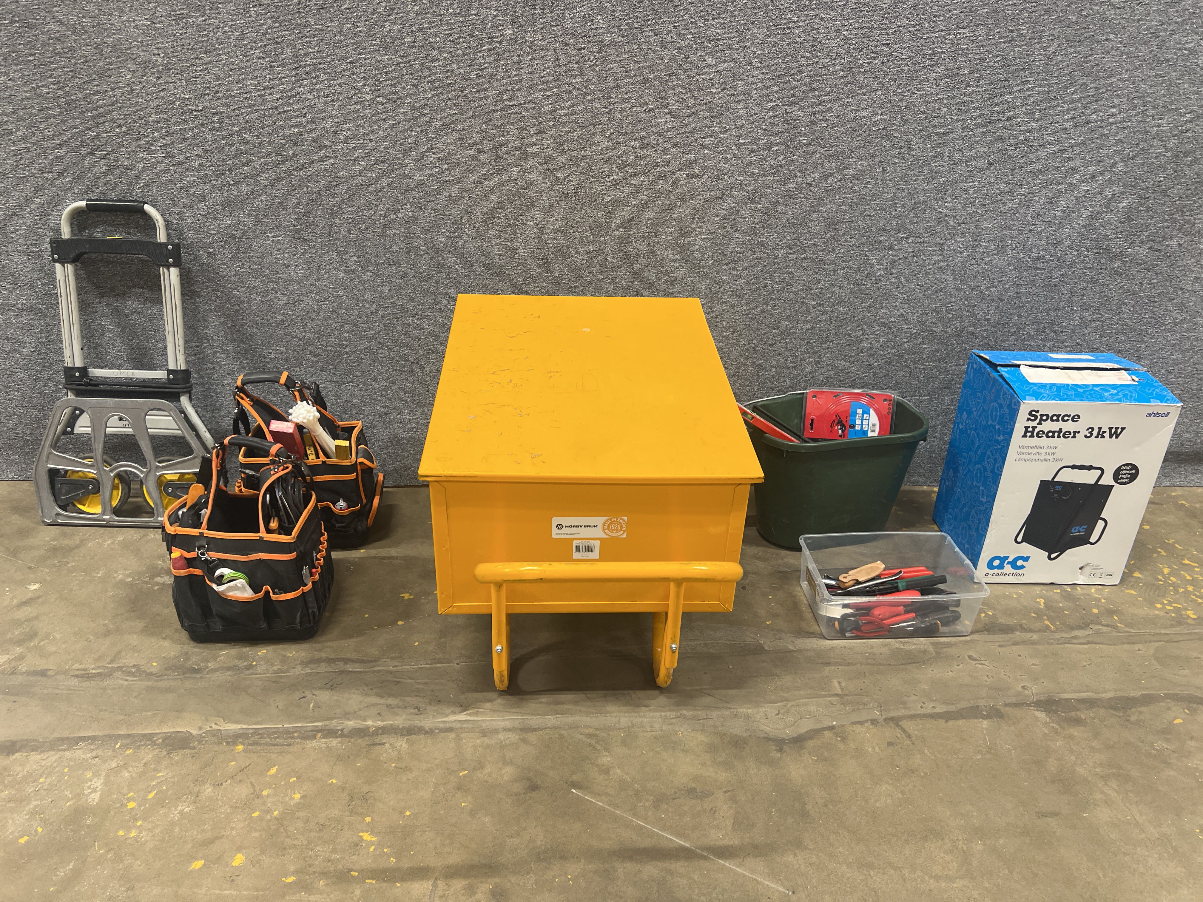 Verktygskista och blandade byggtillbehör