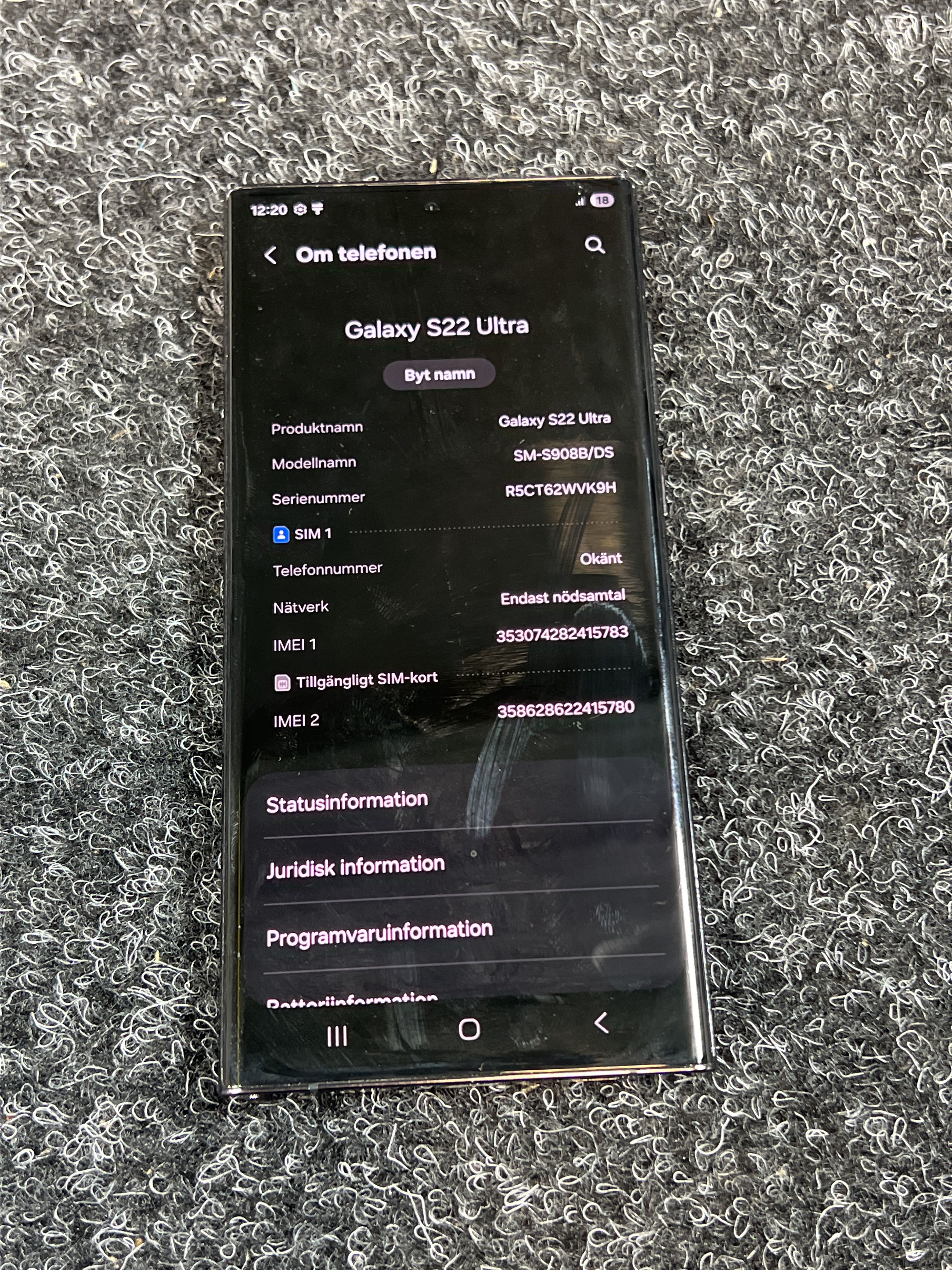 • Modell: Galaxy S22 Ultra (SM-S908B/DS)