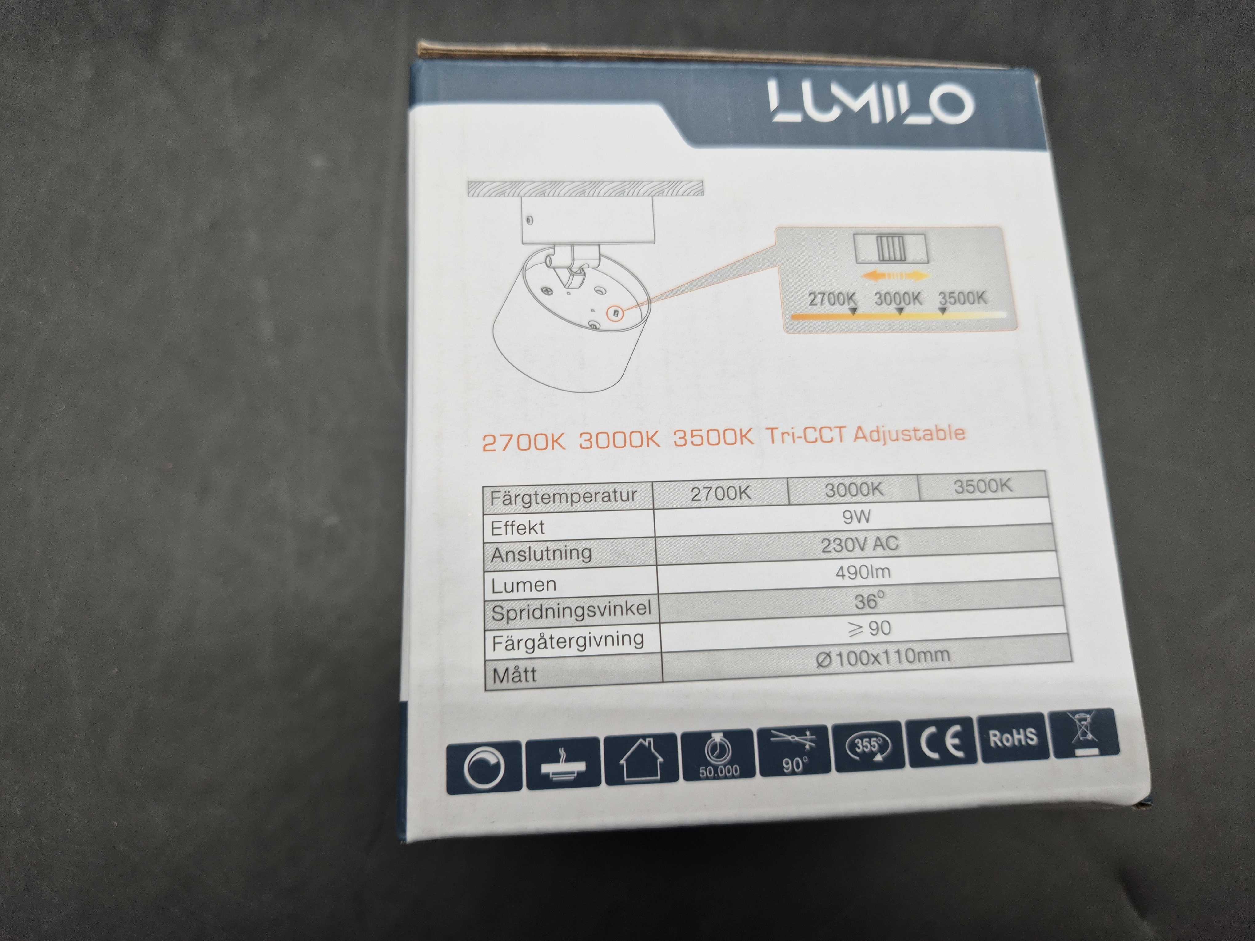 • Färgtemperatur: 2700K / 3000K / 3500K (justerbar)