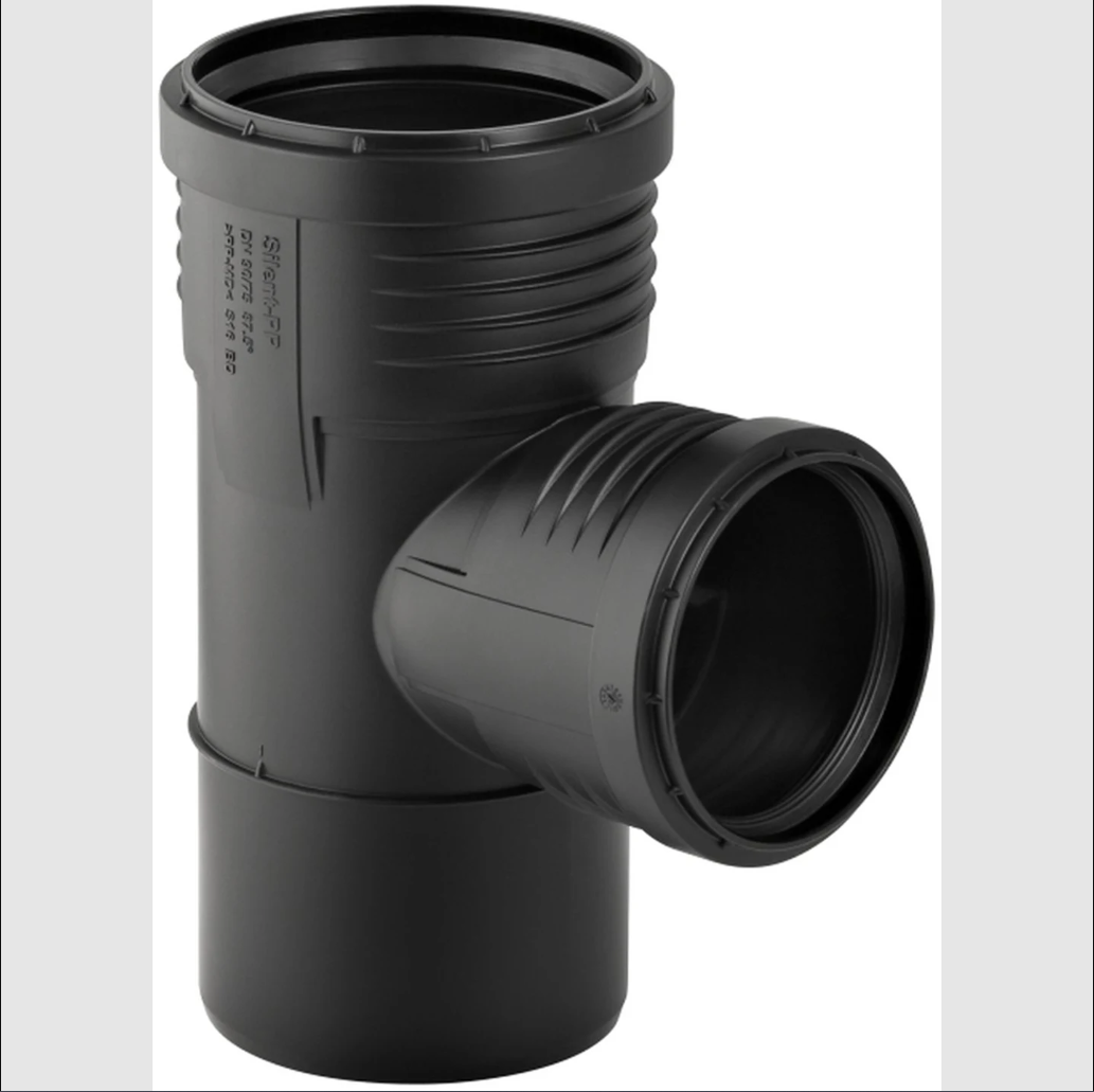 Ljuddämpande grenrör i polypropen för avloppssystem. Utformat för enkel montering med tätande muffar. Lämpligt för både horisontella och vertikala installationer där ljudnivå är en faktor.