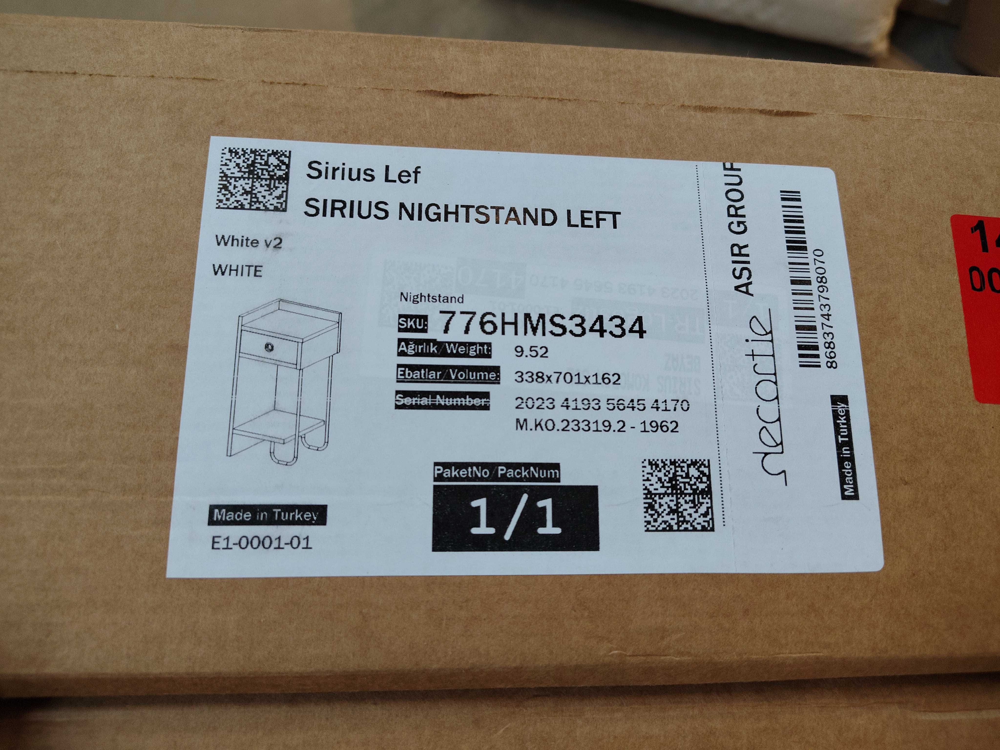 1 st Sirius sängbord vänster, vit melamin 32x30 cm
