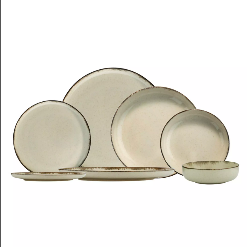 Matservis, 24 delar – Porslin, beige glasyr, rund design