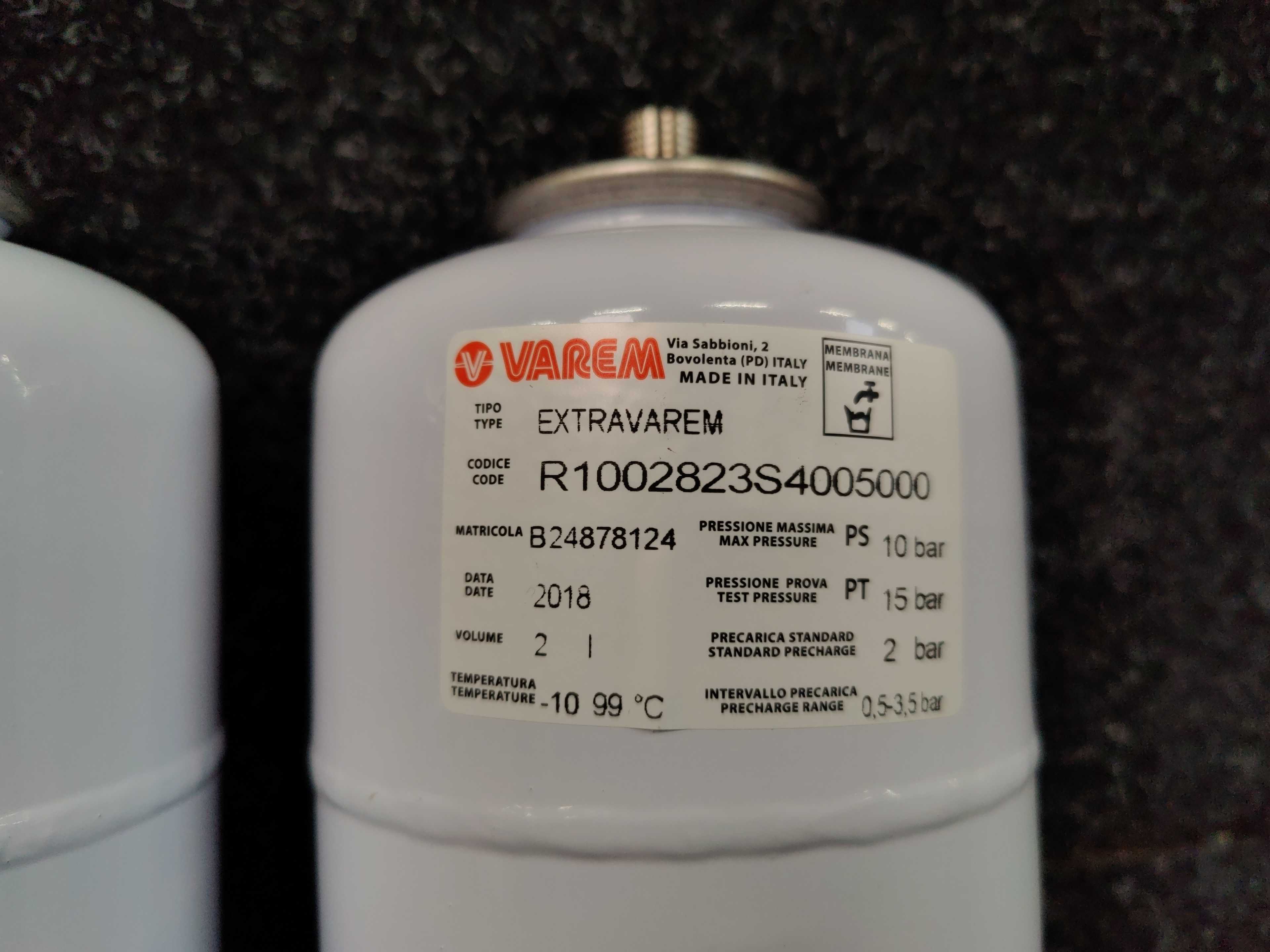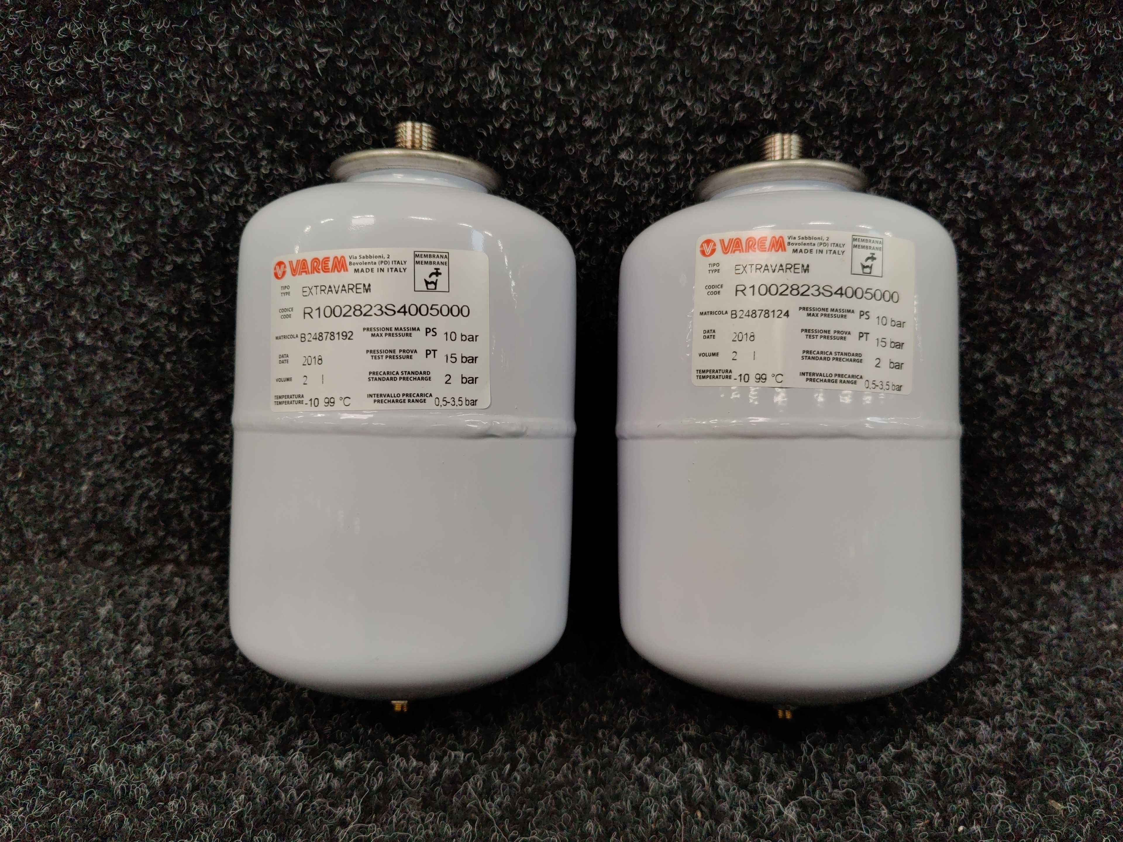 2 stycken nya, multifunktionella expansionskärl EXTRAVAREM med fast membran och hopvikt fläns för värmesystem, pannor, elektriska pumpar, varmvattenberedning, vattenslagsskydd etc.