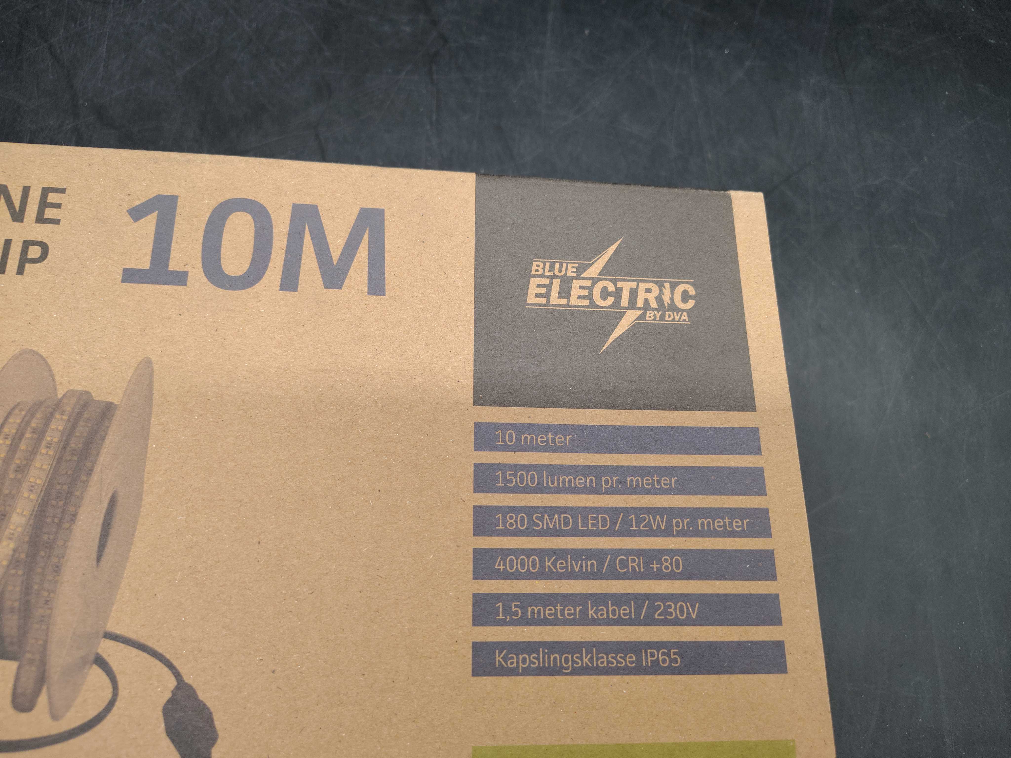 Flexibel arbetsbelysning i form av LED-slinga på plastrulle från Blue Electric. Slingan är 10 meter lång och levererar 1500 lumen per meter med neutralvitt ljus på 4000K. Försedd med 1,5 meter kabel och 230V-anslutning. Den robusta konstruktionen och kapslingsklass IP65 gör den lämplig för både inom- och utomhusbruk. Kan enkelt rullas ut, monteras eller hängas upp på arbetsplatsen.