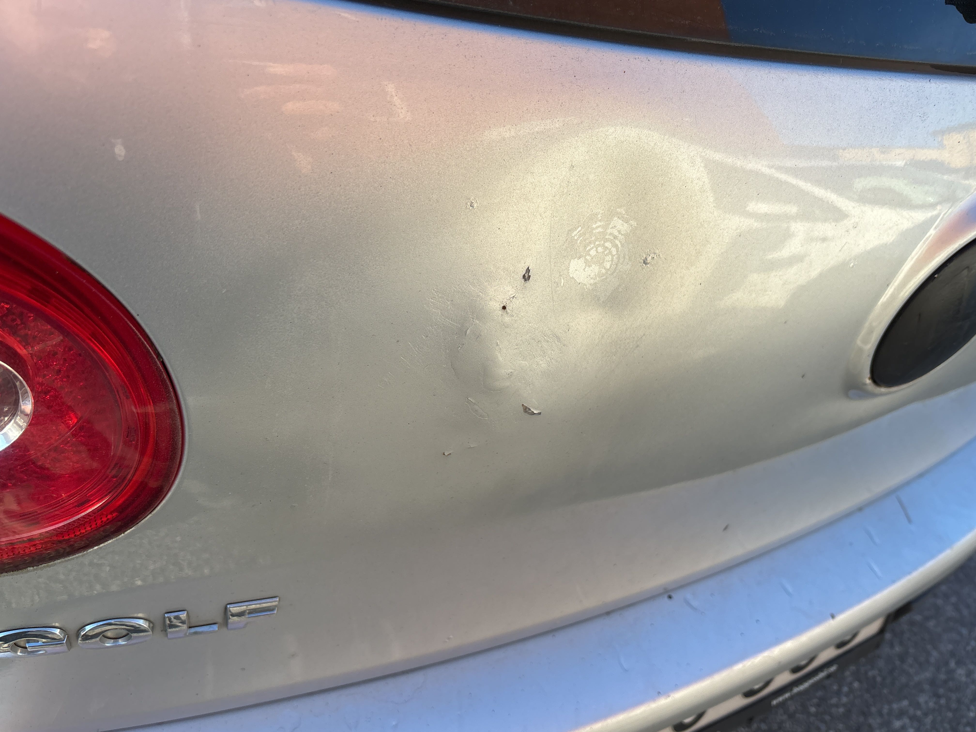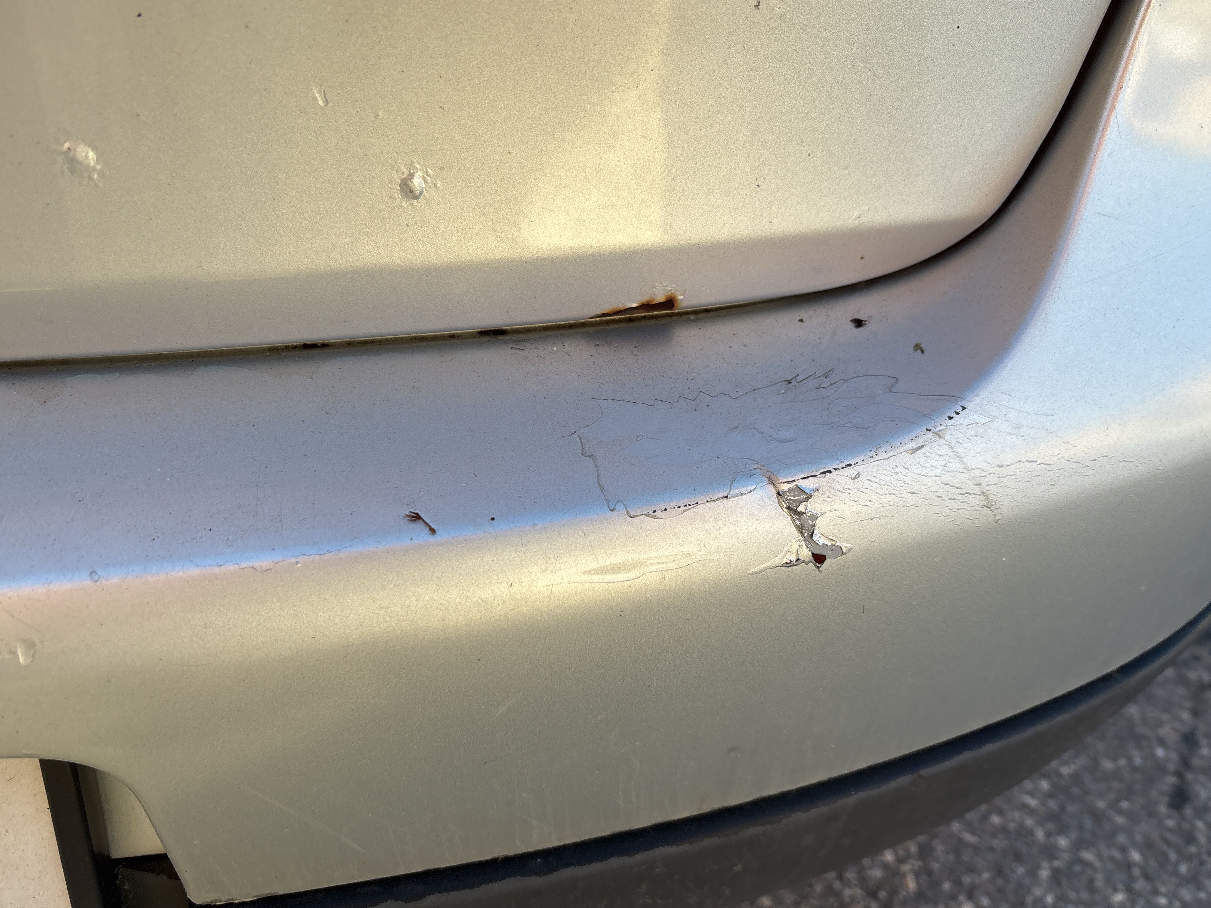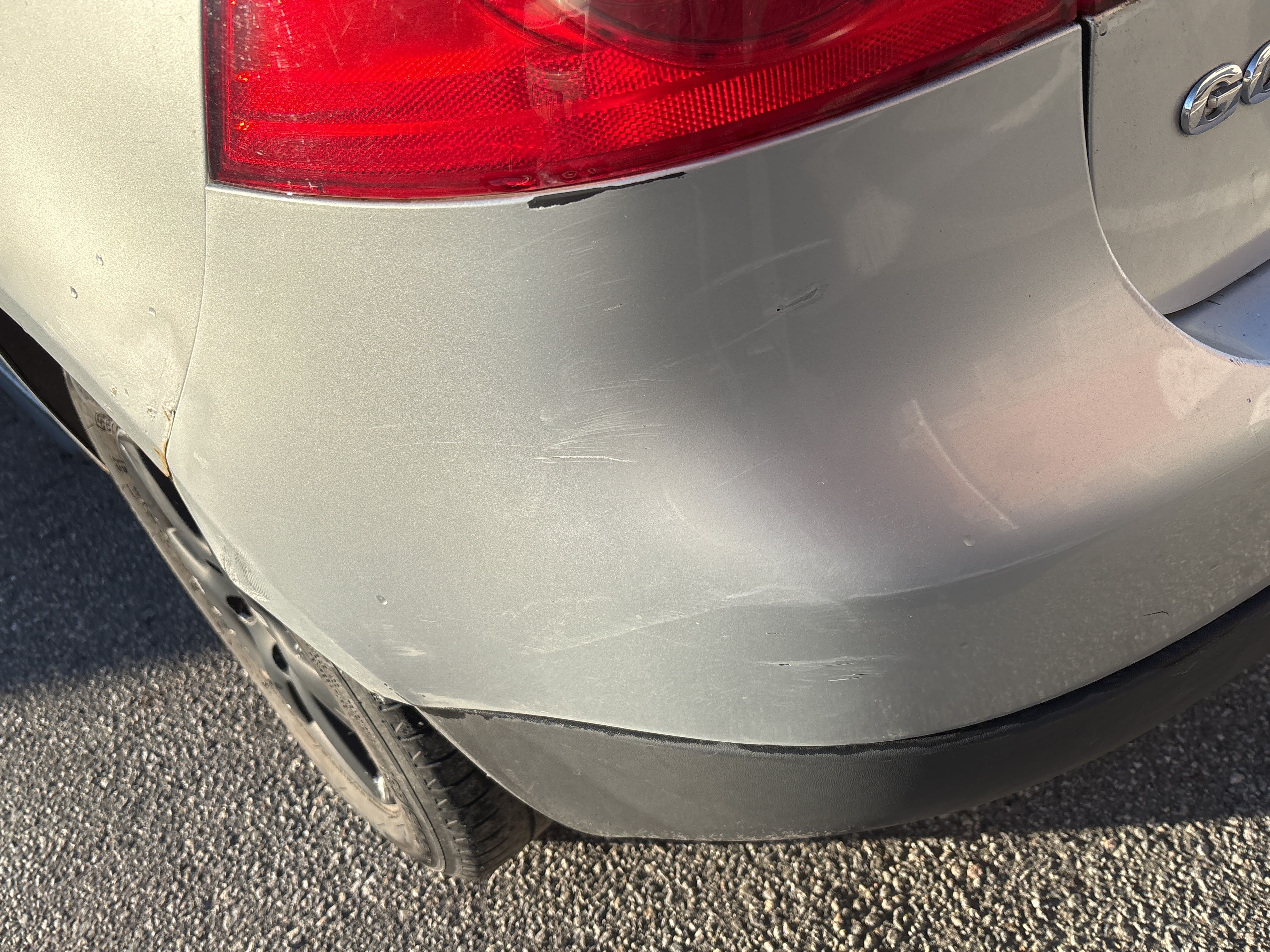 - Plåtskada på bakluckan.