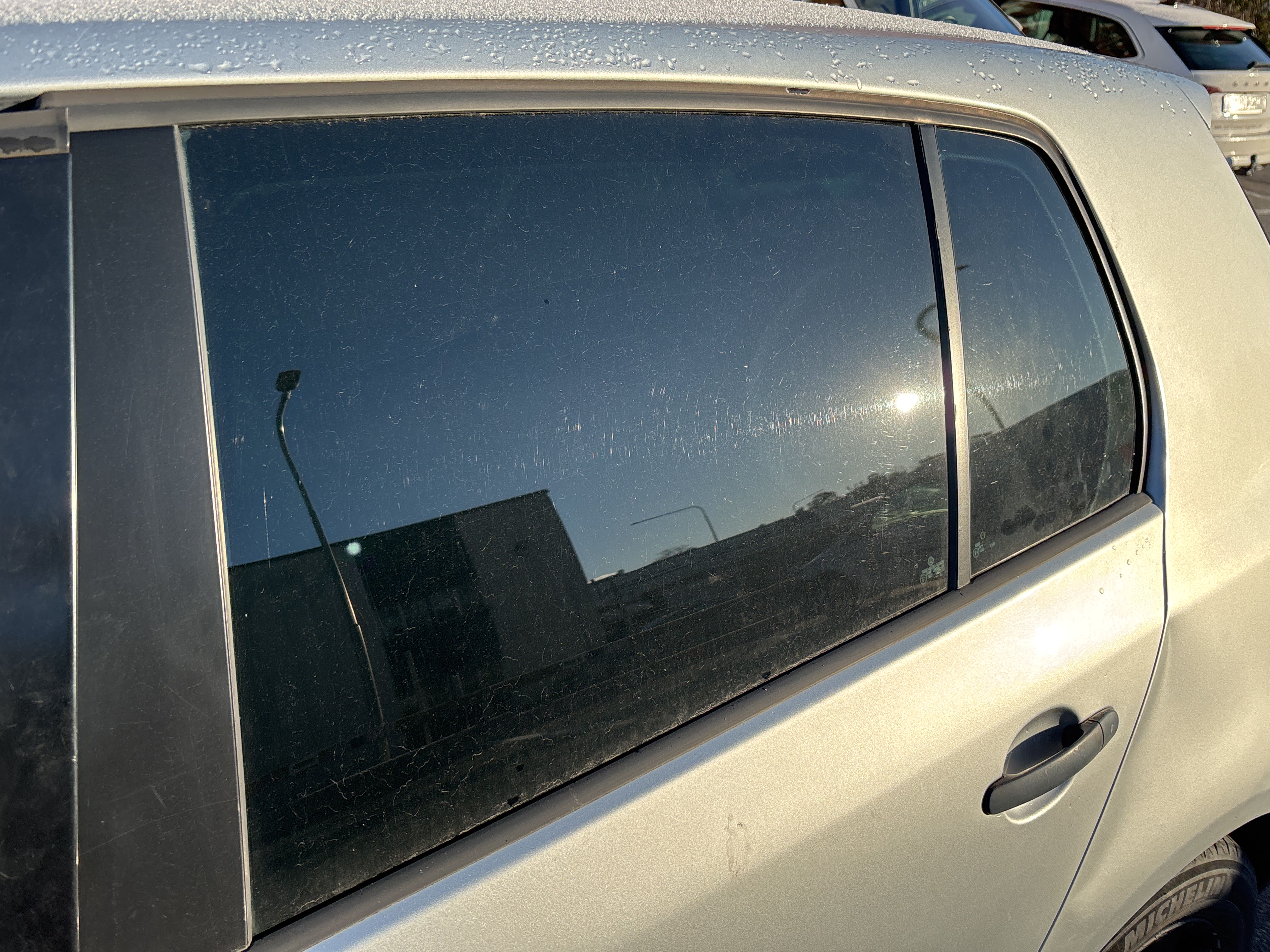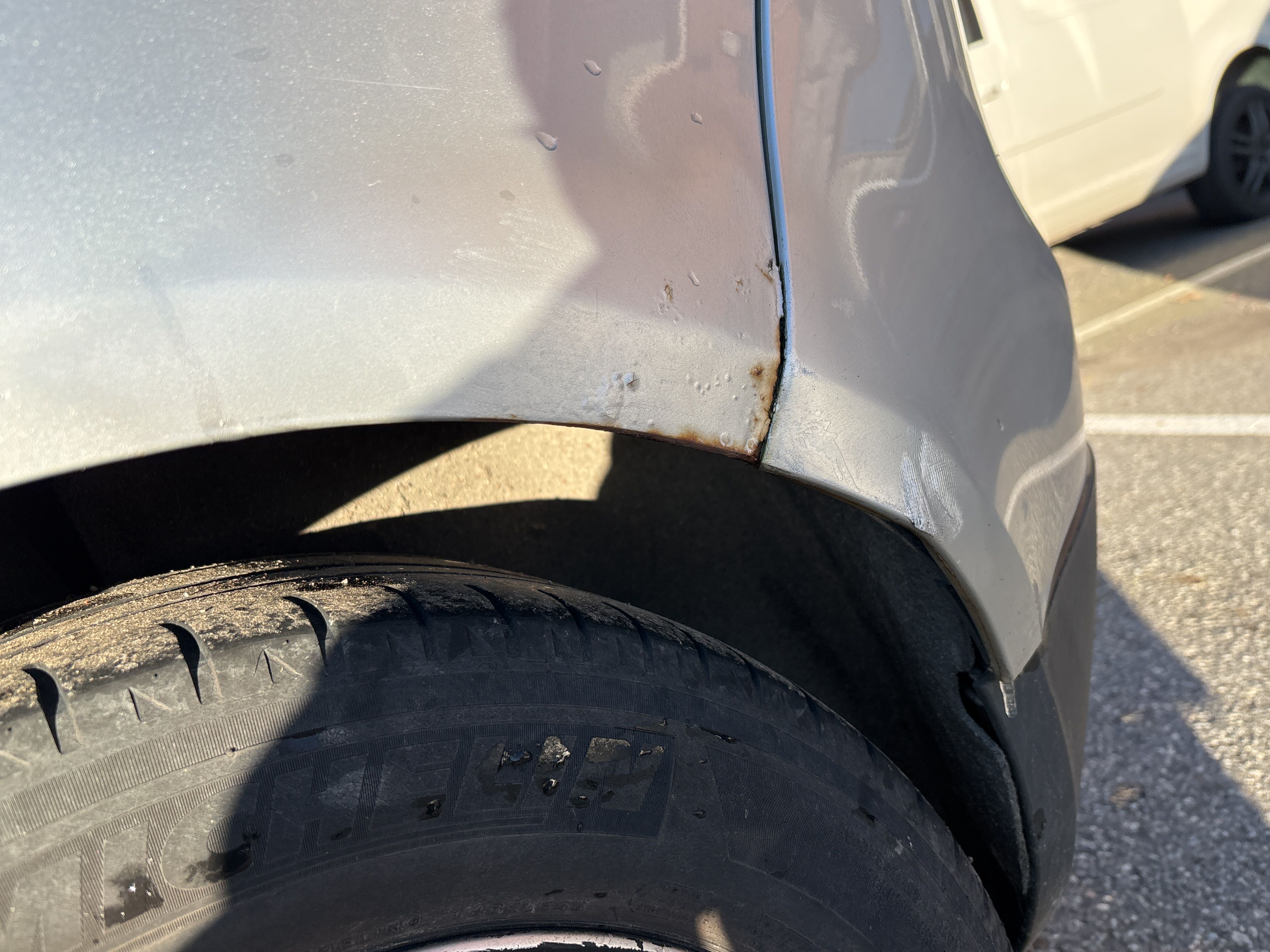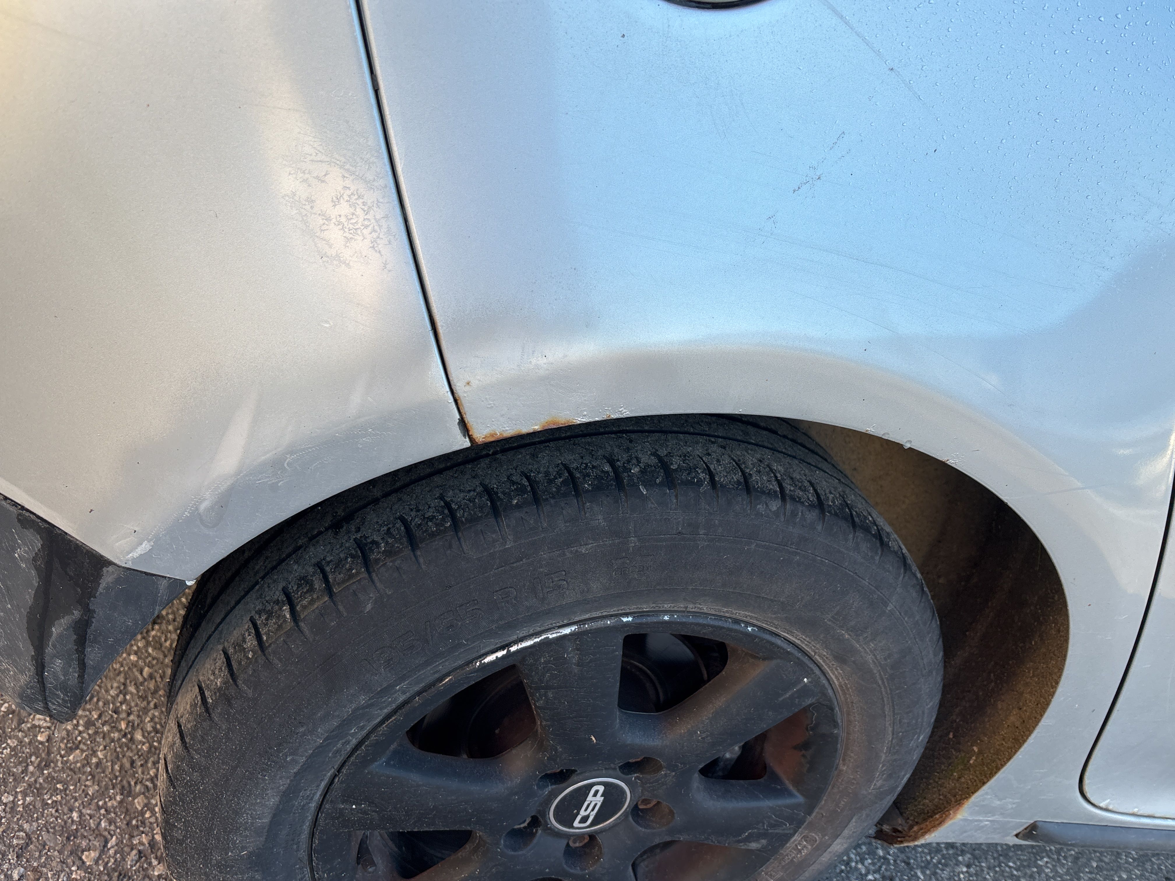 - Plåtskada på bakluckan.