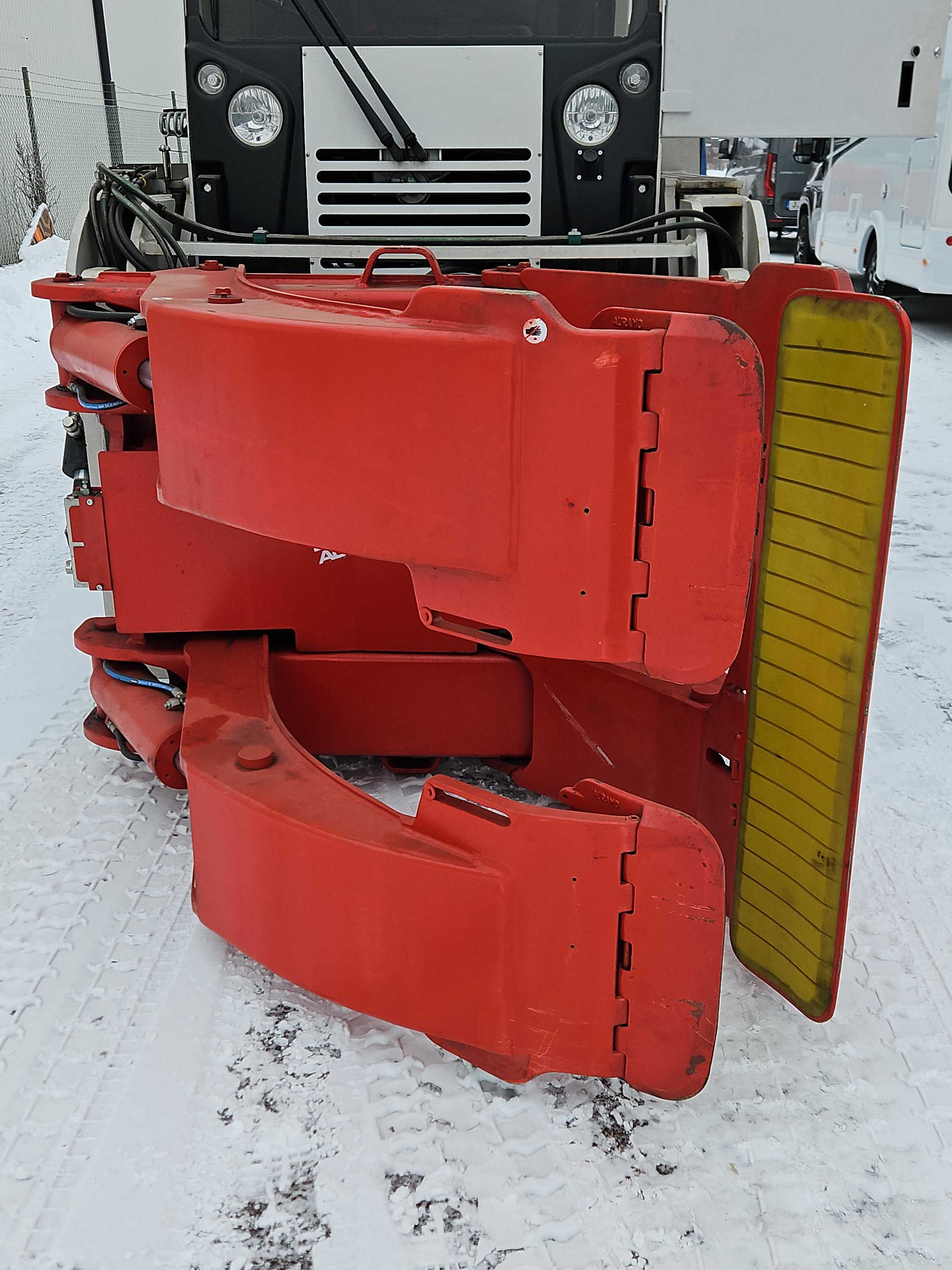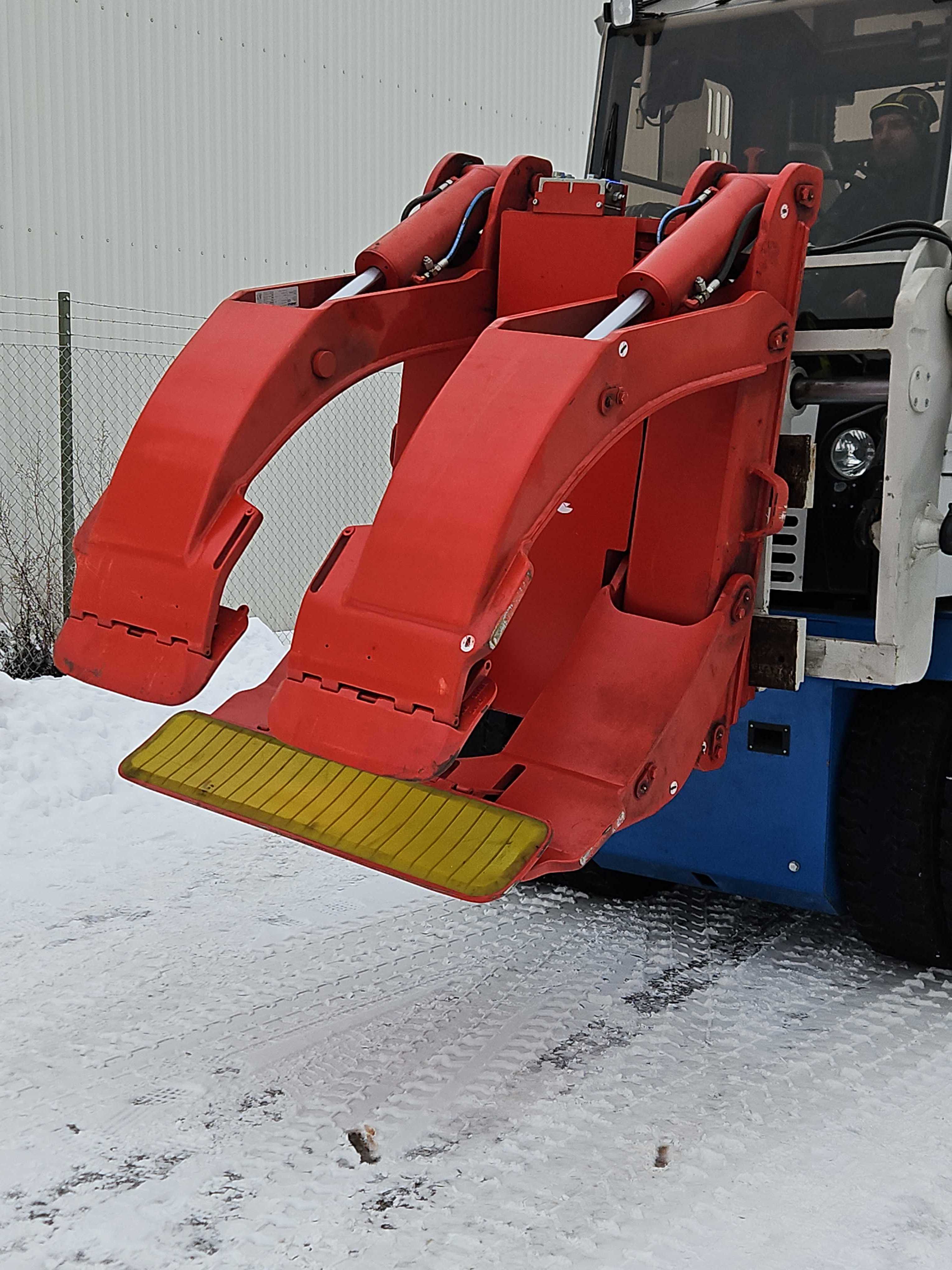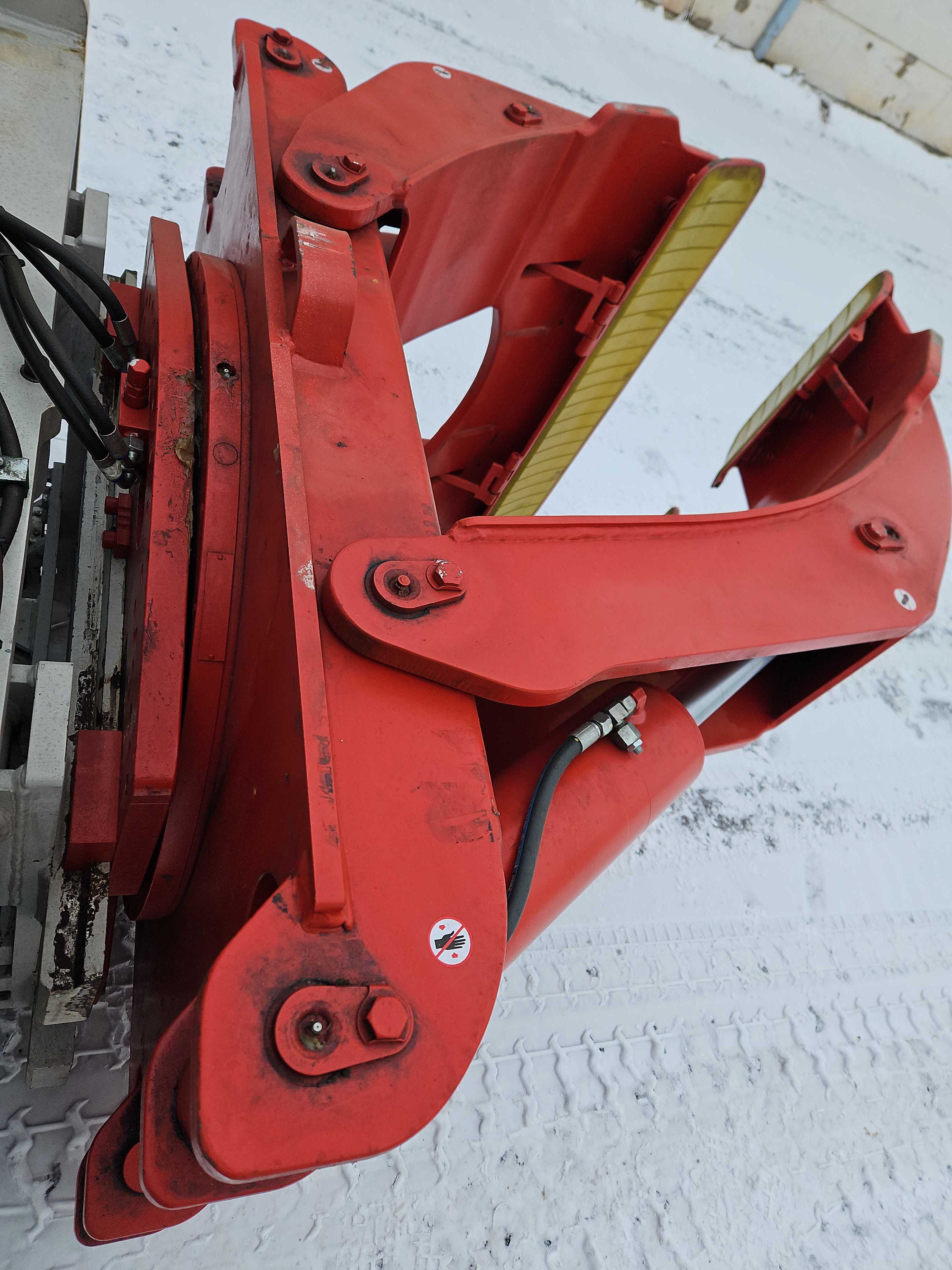 Normalt slitage förekommer. Inga kända funktionsfel enligt tillgänglig information. Hydraulik och klämarmar uppges vara hela och raka.