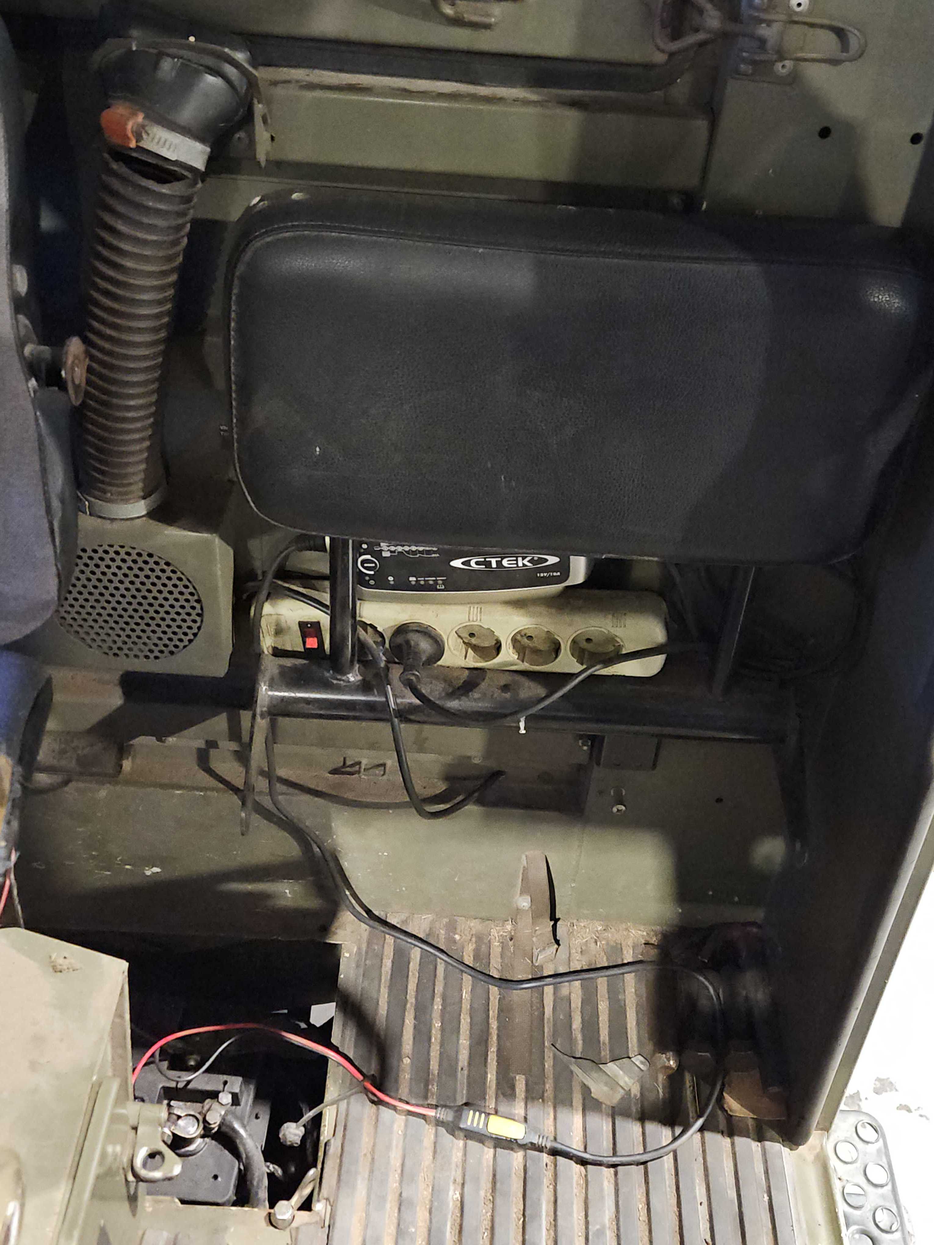 Brandsläckare monterad i hytten