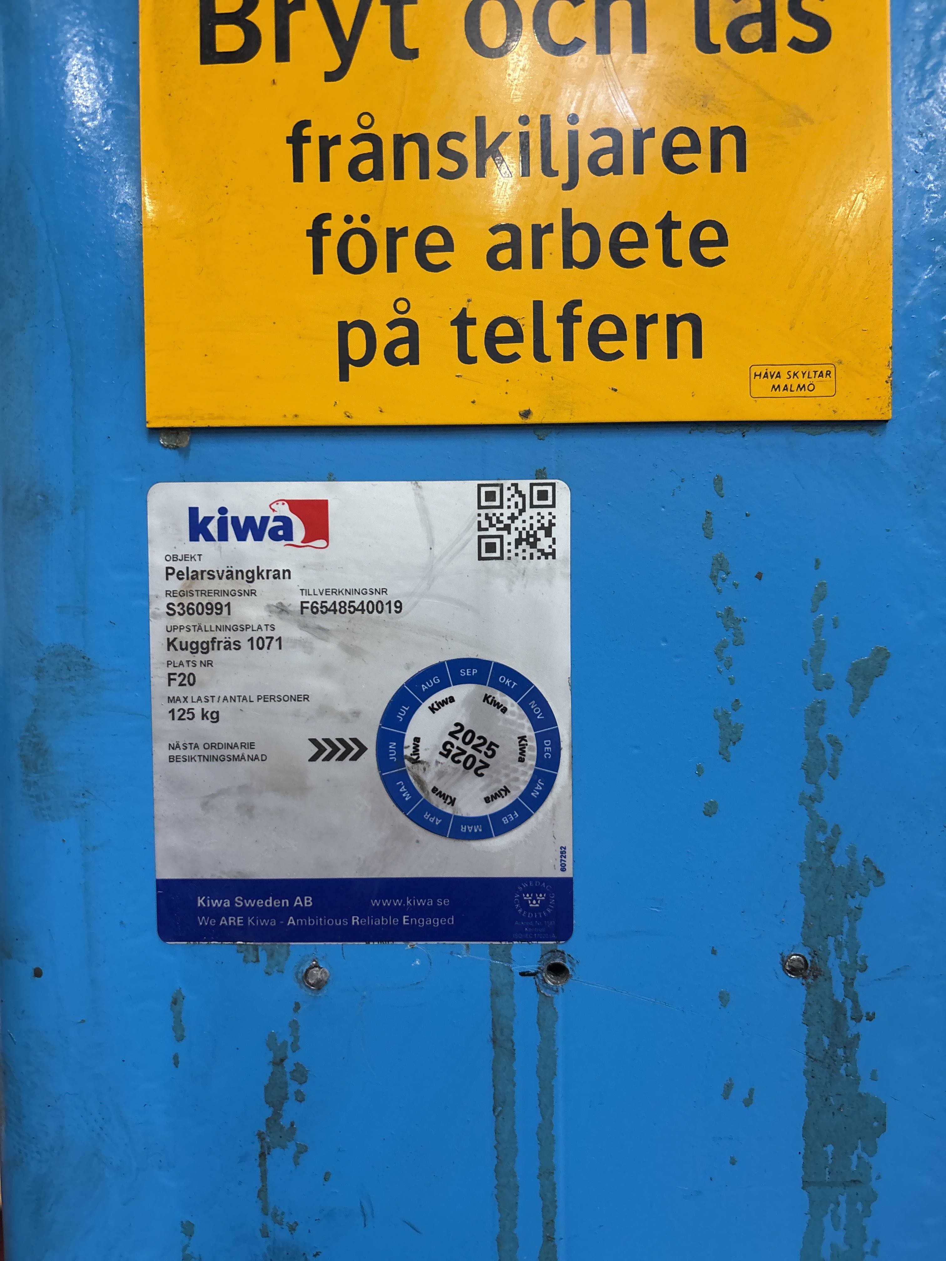 – Senast godkänd besiktning: 2025 (enligt märkning)