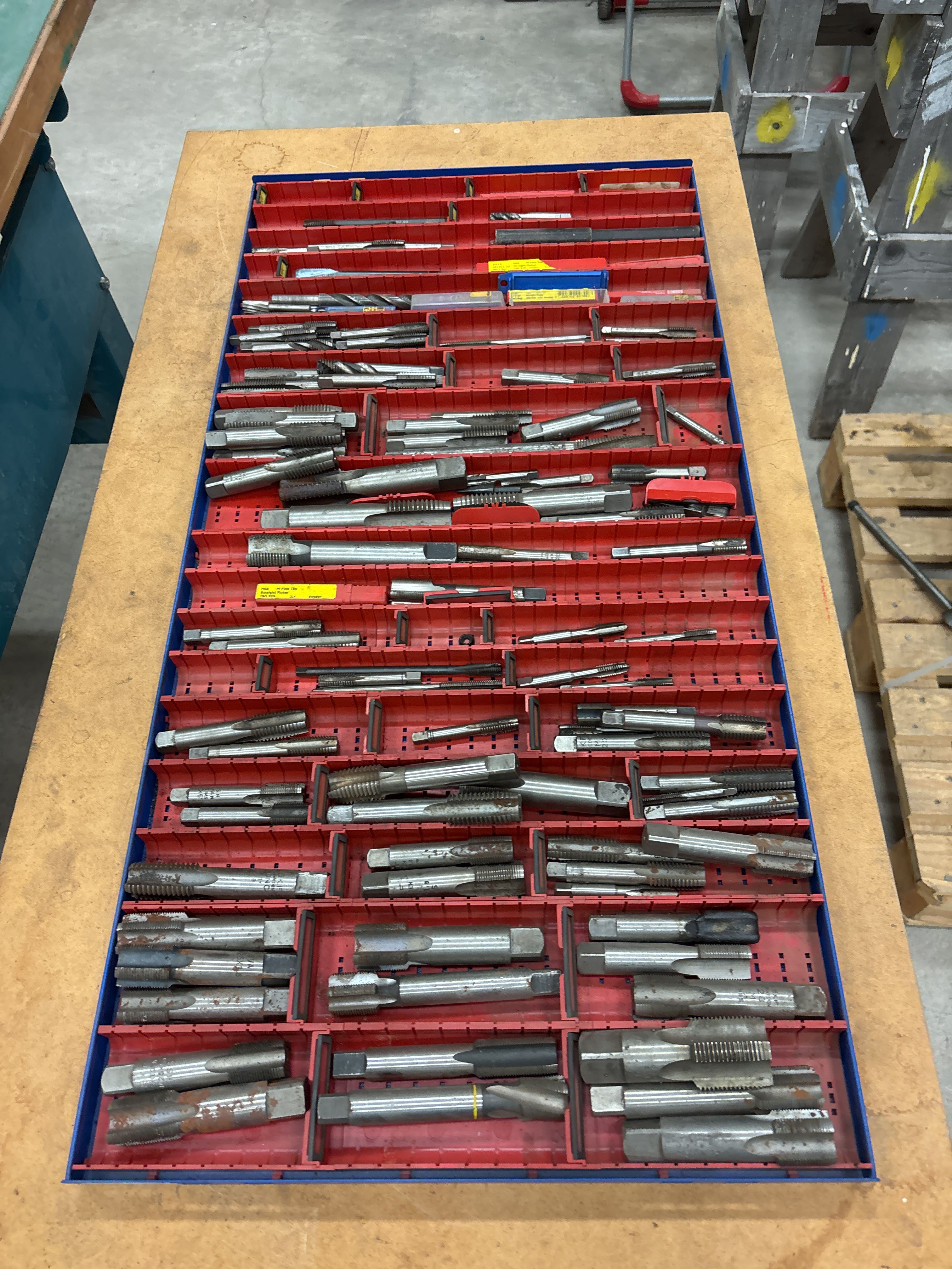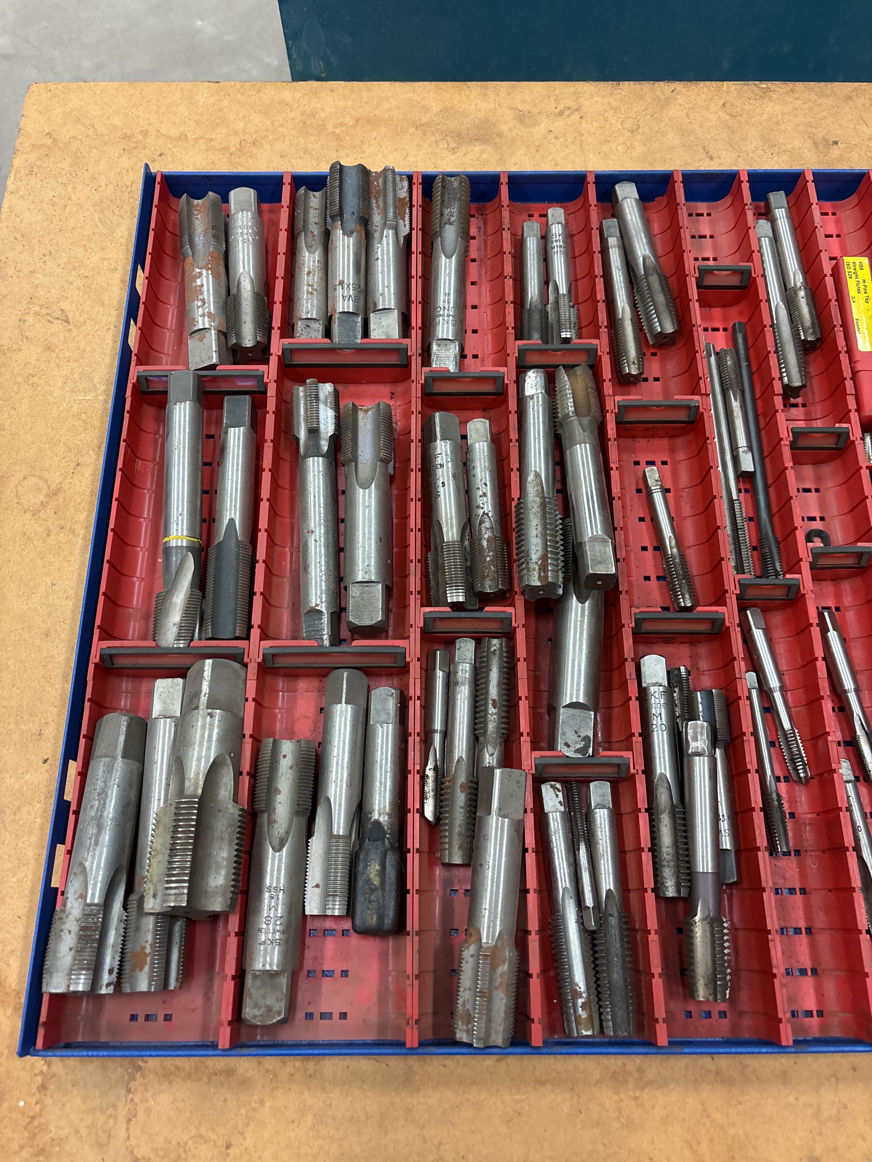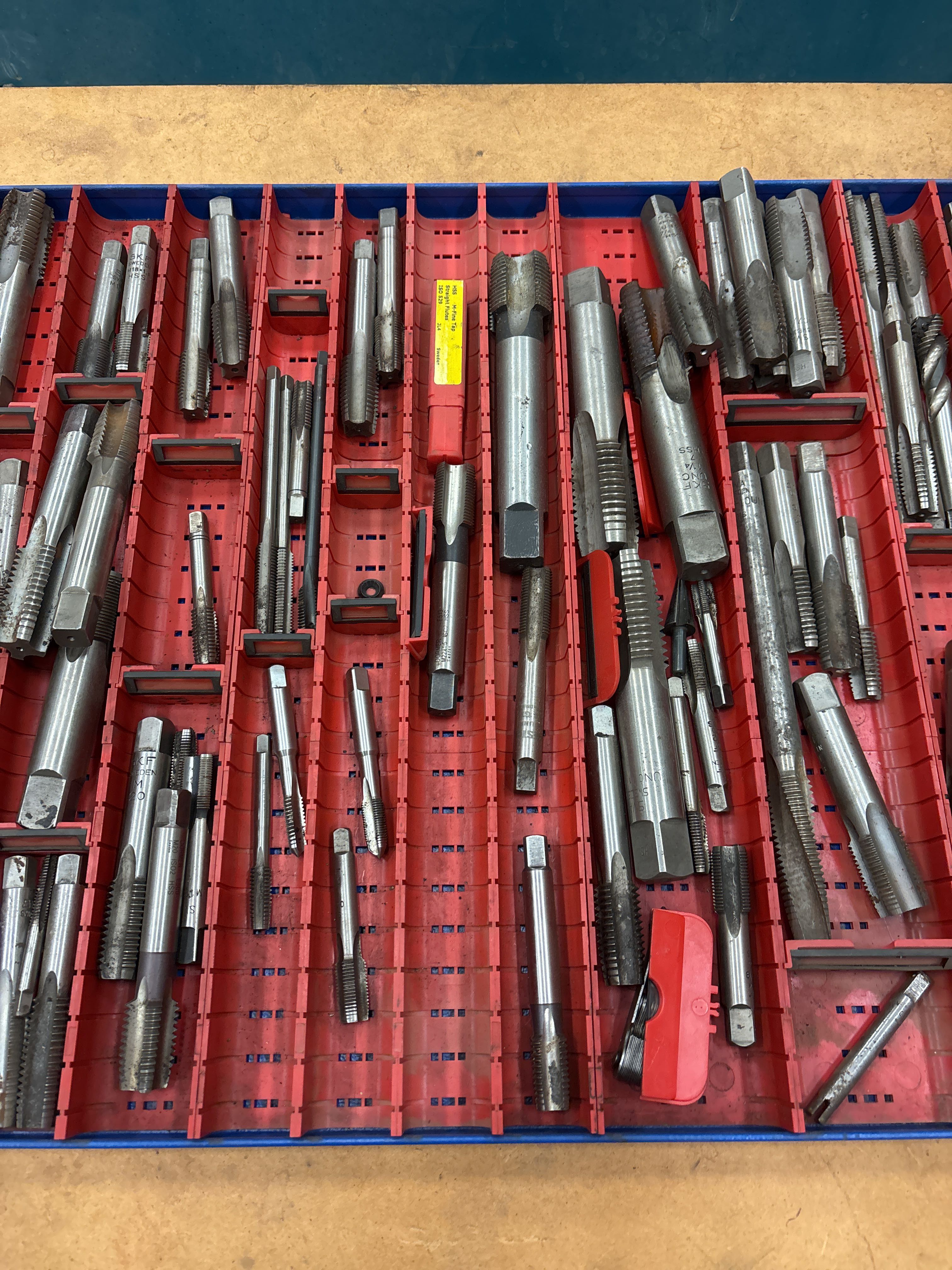 Innehåller både större och mindre tappar, främst för metallbearbetning. Blandade fabrikat och gängtyper förekommer.