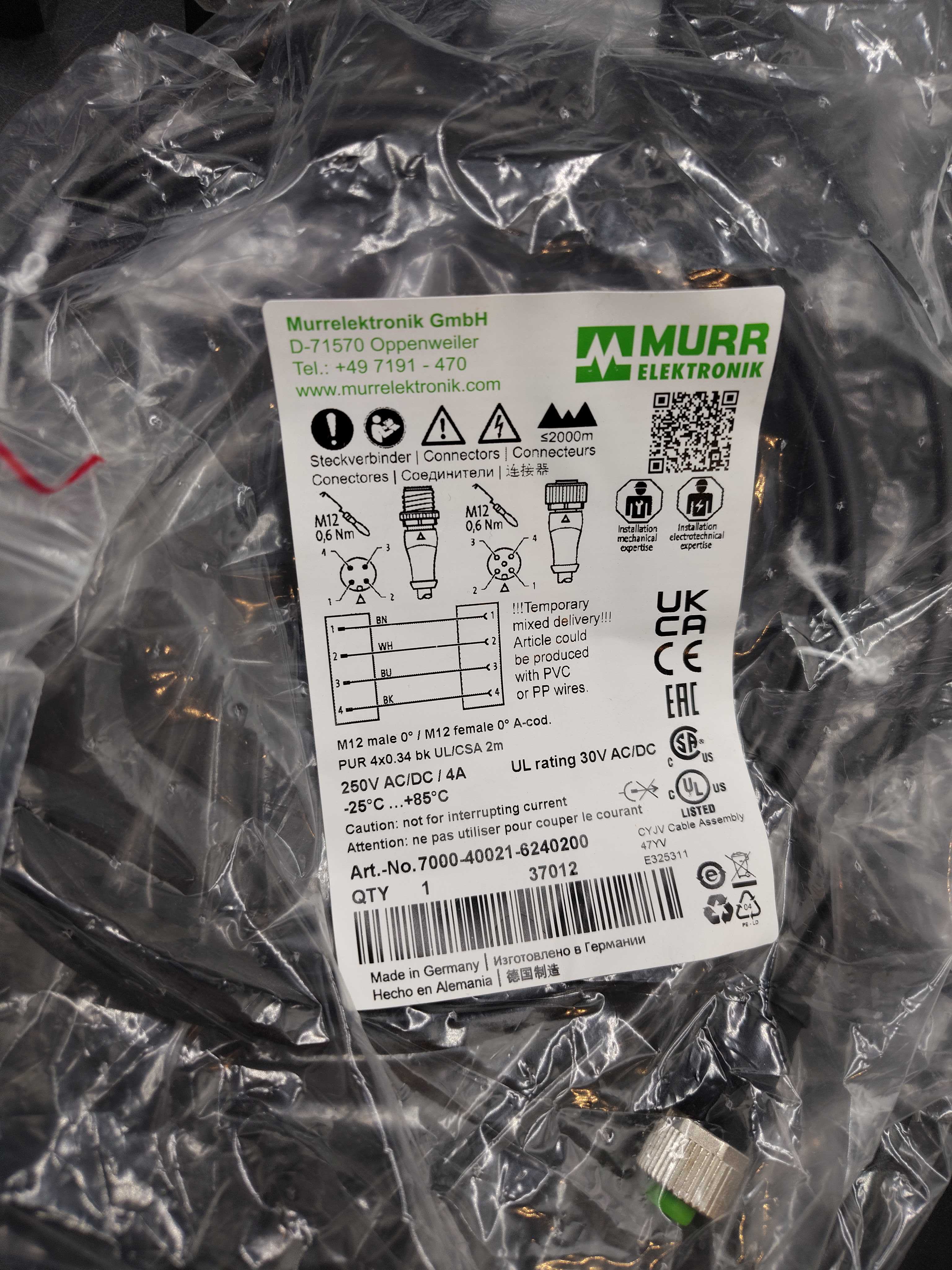 M12-anslutningskablar, 2–5 m, PUR, olika modeller (Murrelektronik)