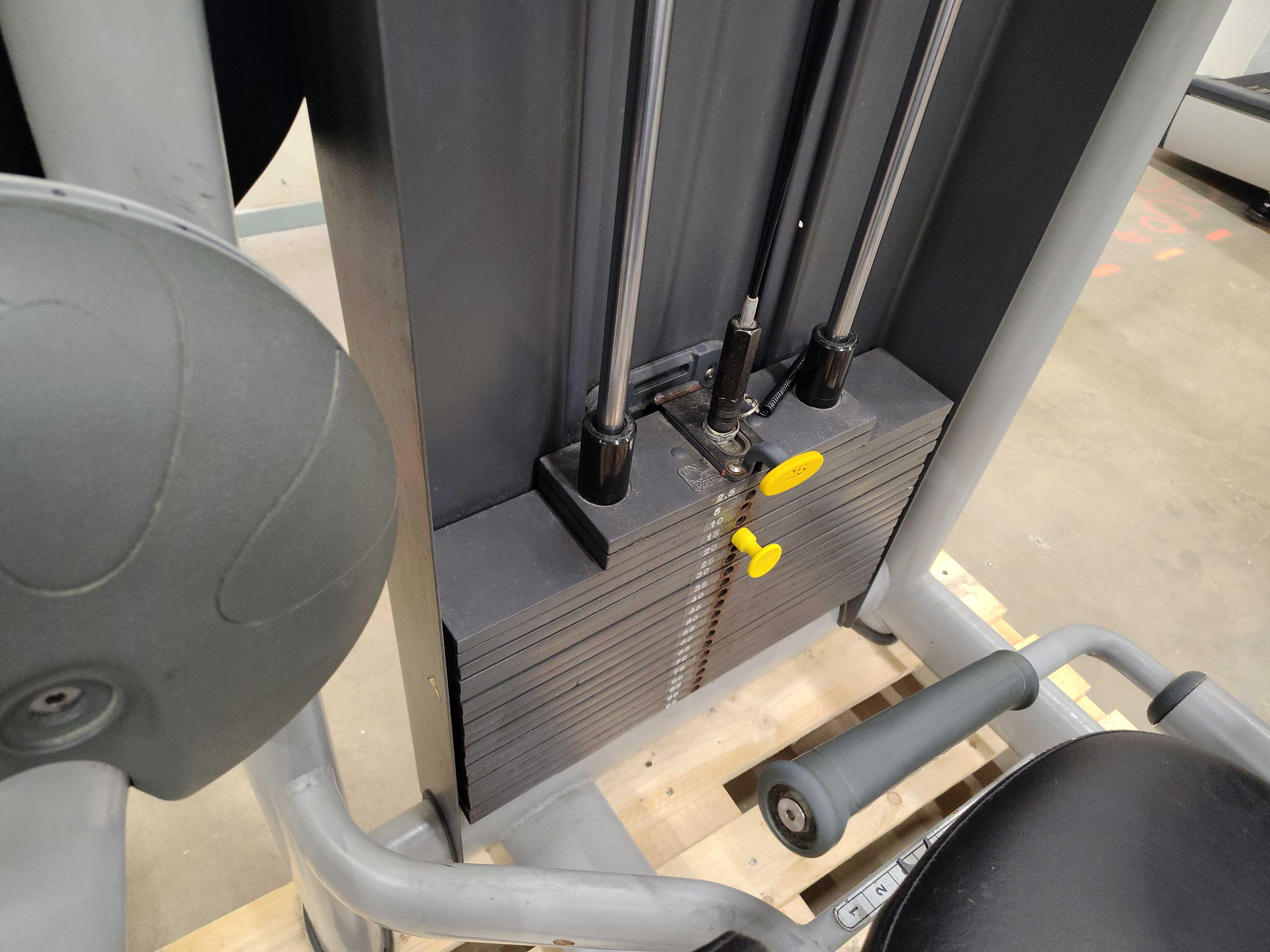 Bensträckningsmaskin, Technogym – justerbart säte, viktmagasin