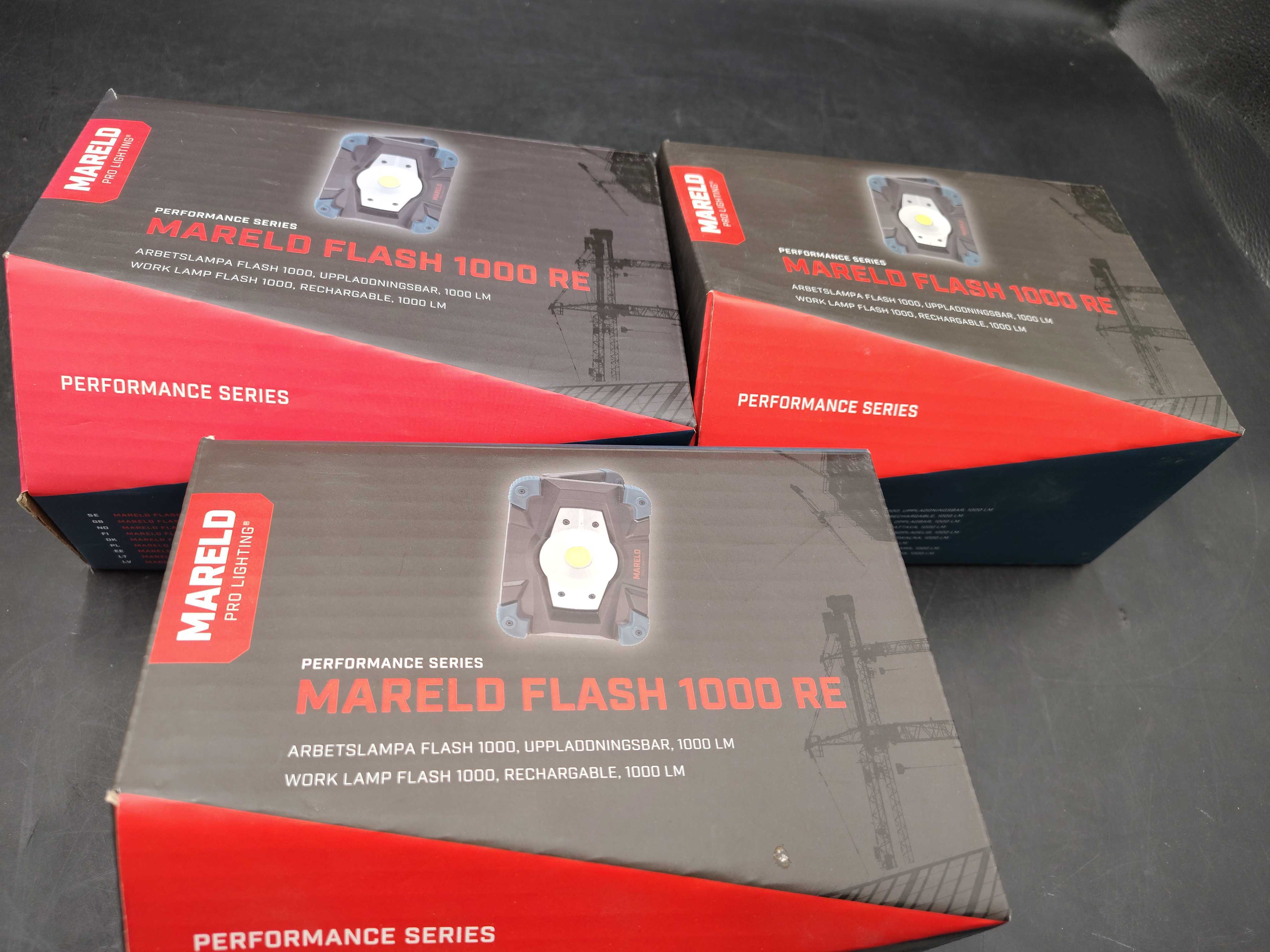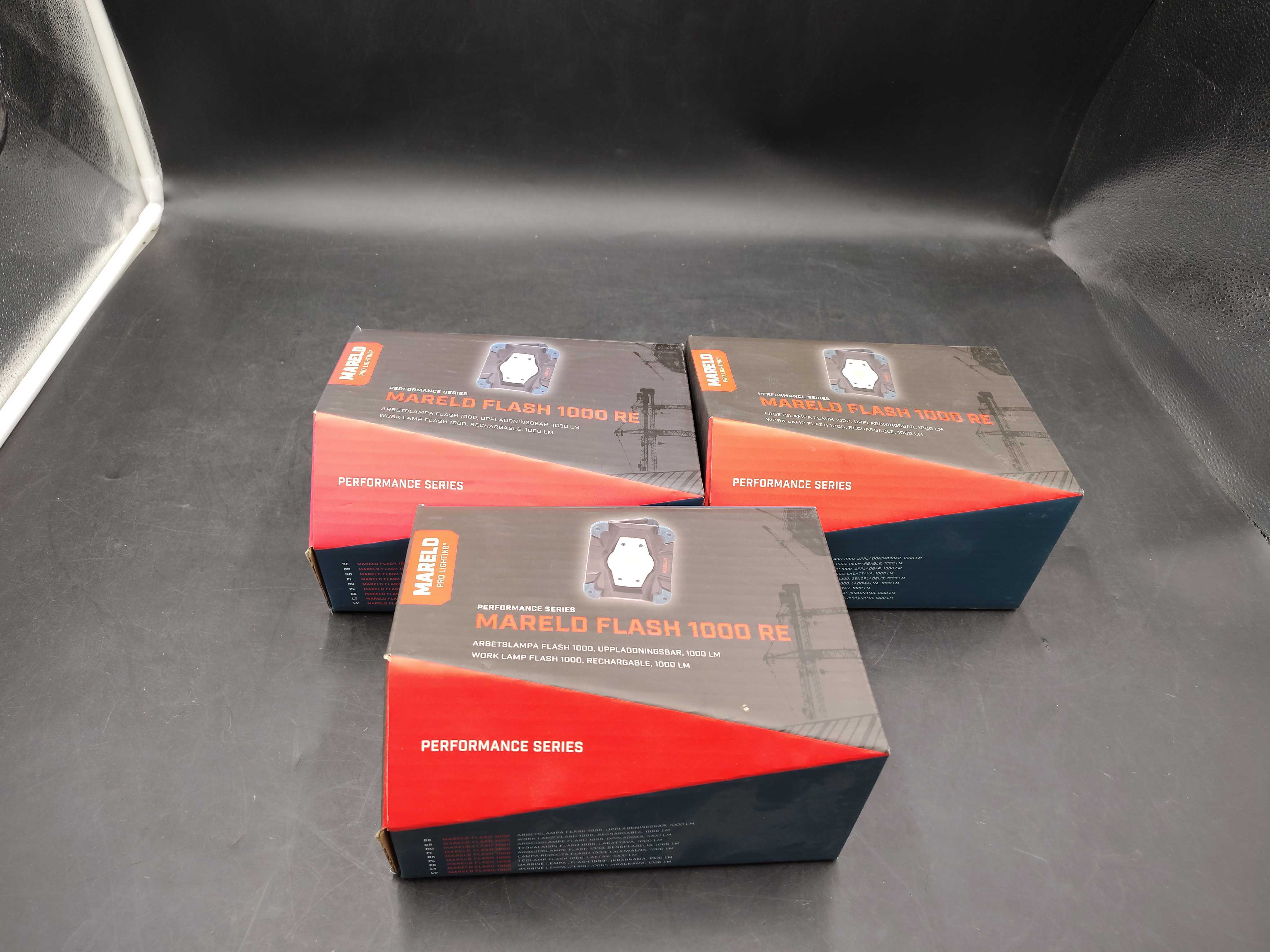 Arbetslampa , 3 st – Mareld Flash 1000 re – uppladdningsbar, kompakt, 1000 lm