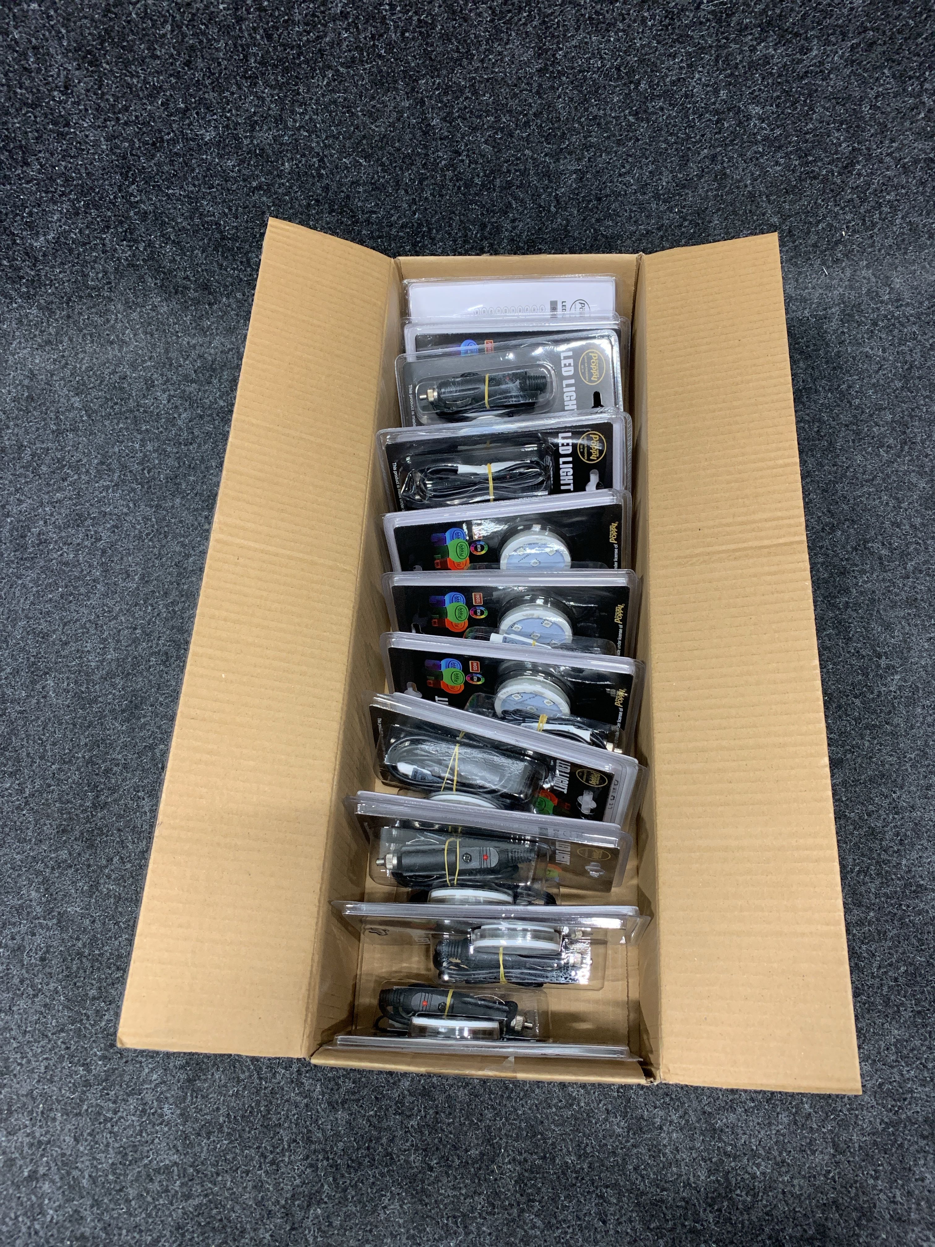 Auktionen innehåller bland annat: Baklampor Göd/ LED, LED ljusplattor för Poppy, Dashcams, Skyddsslang, LED indikatorlampor, 12V & 24V 3-vägsuttag, Ljusrampsfästen, Förlängningskablage för extraljus, Glödlampor,