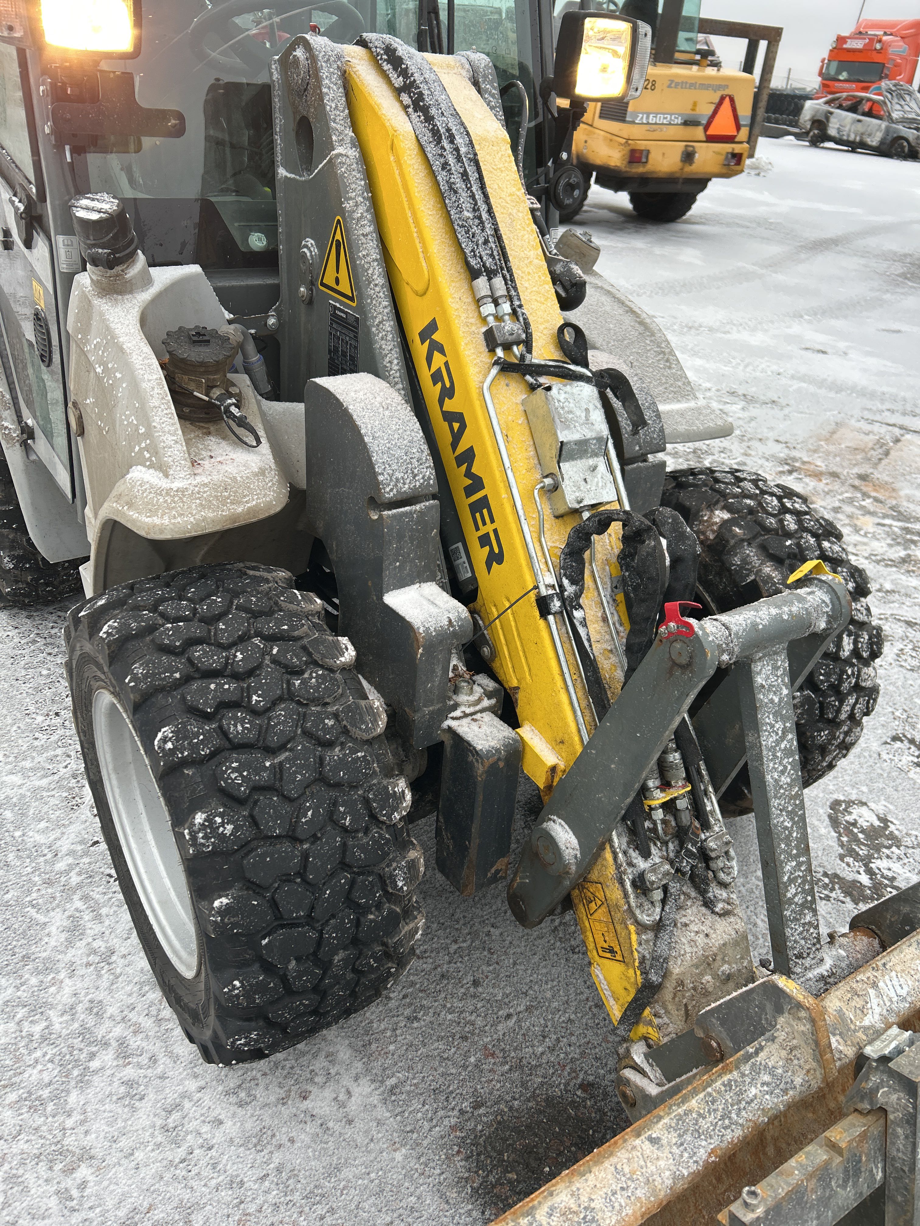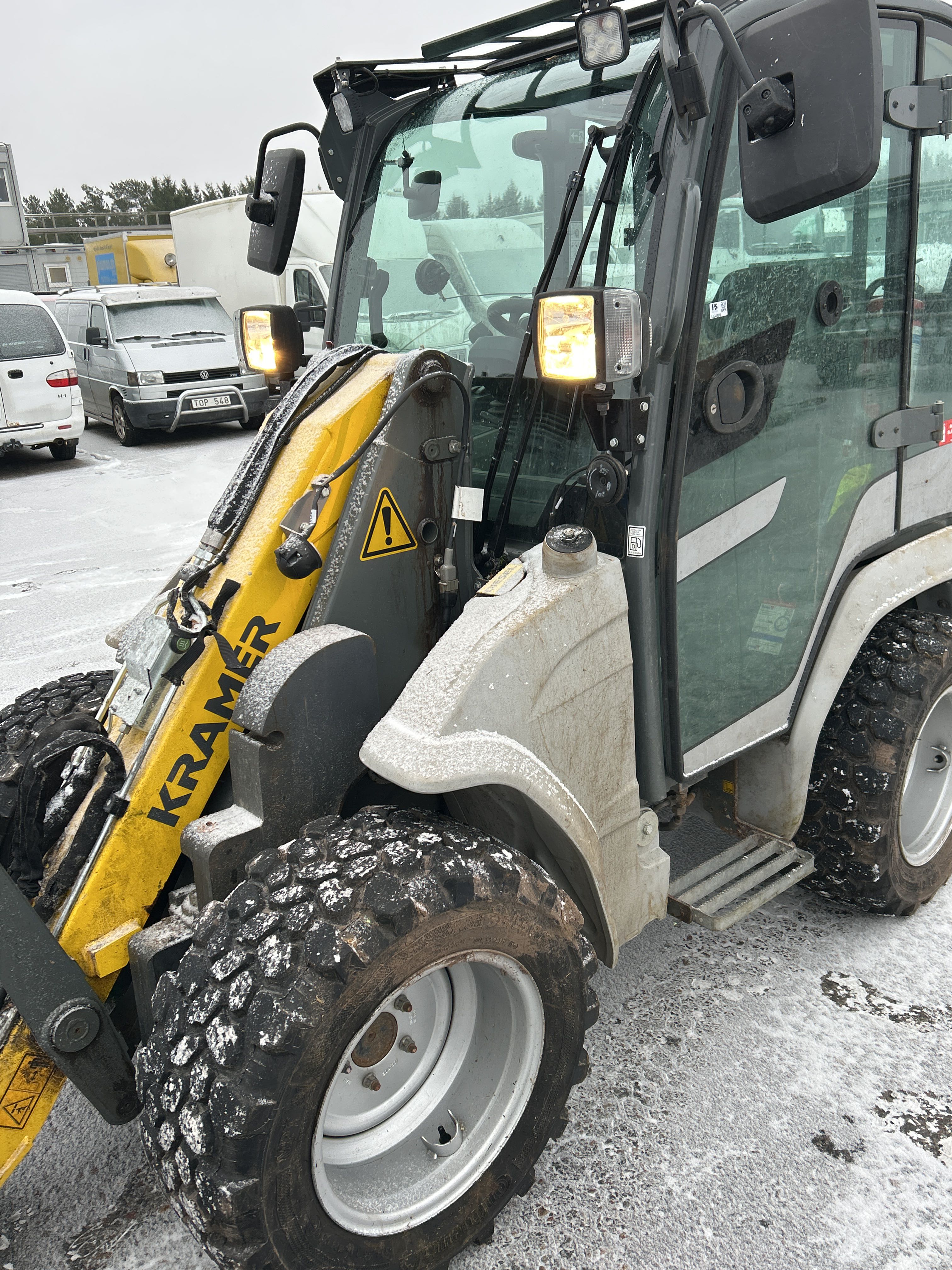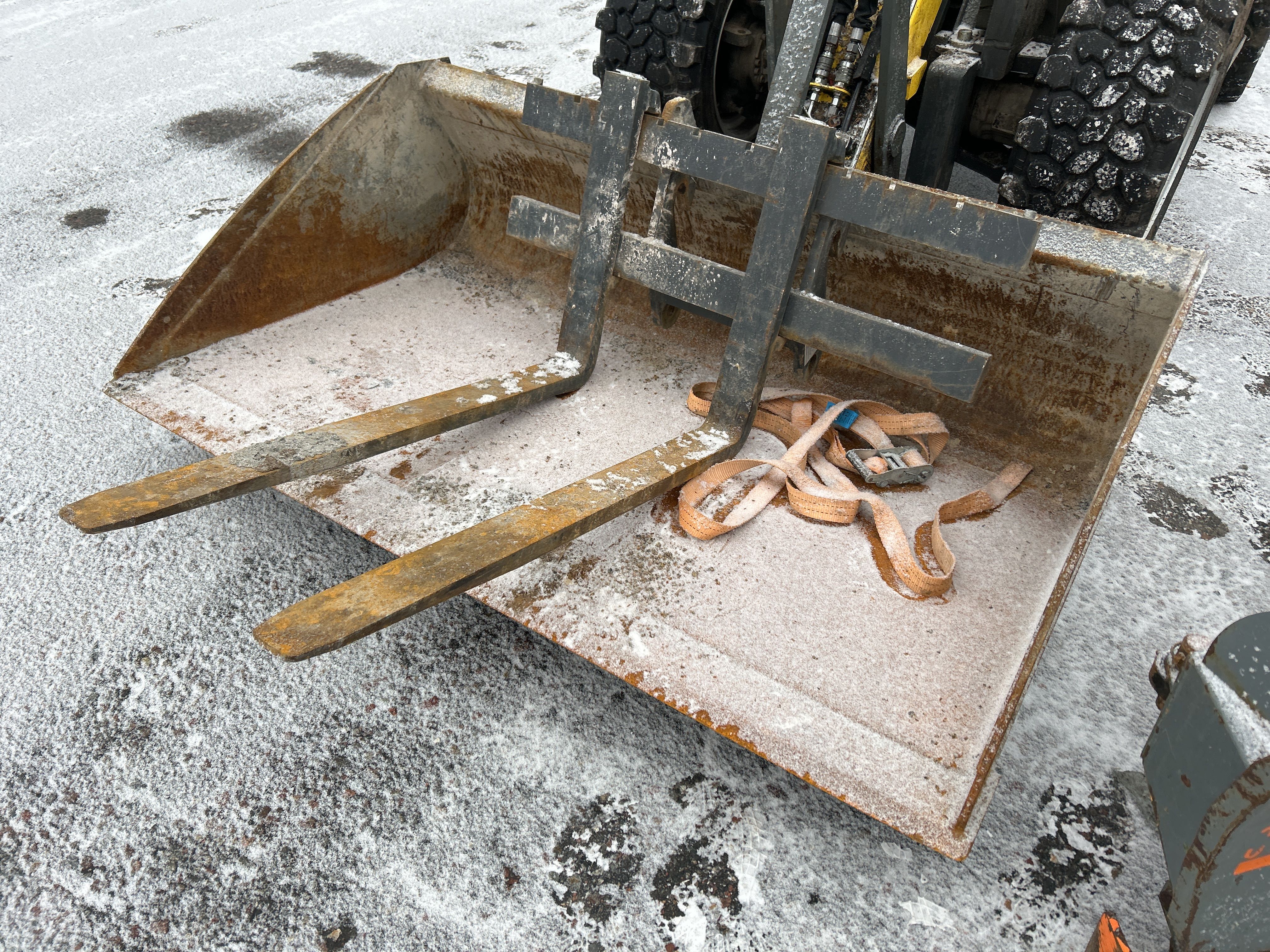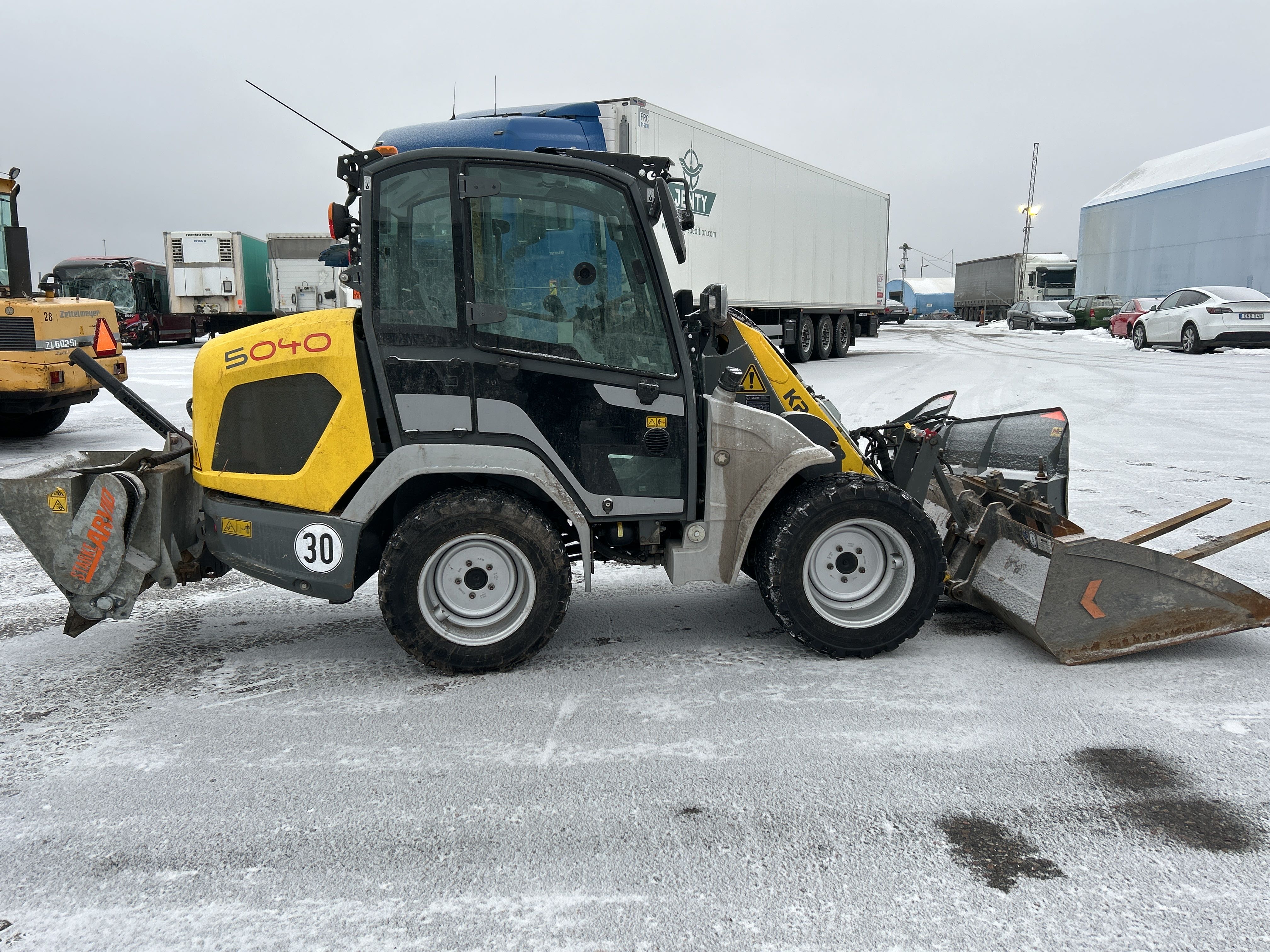 Kompaktlastare Kramer 5040 med skopa, gafflar, vikplog & sandspridare