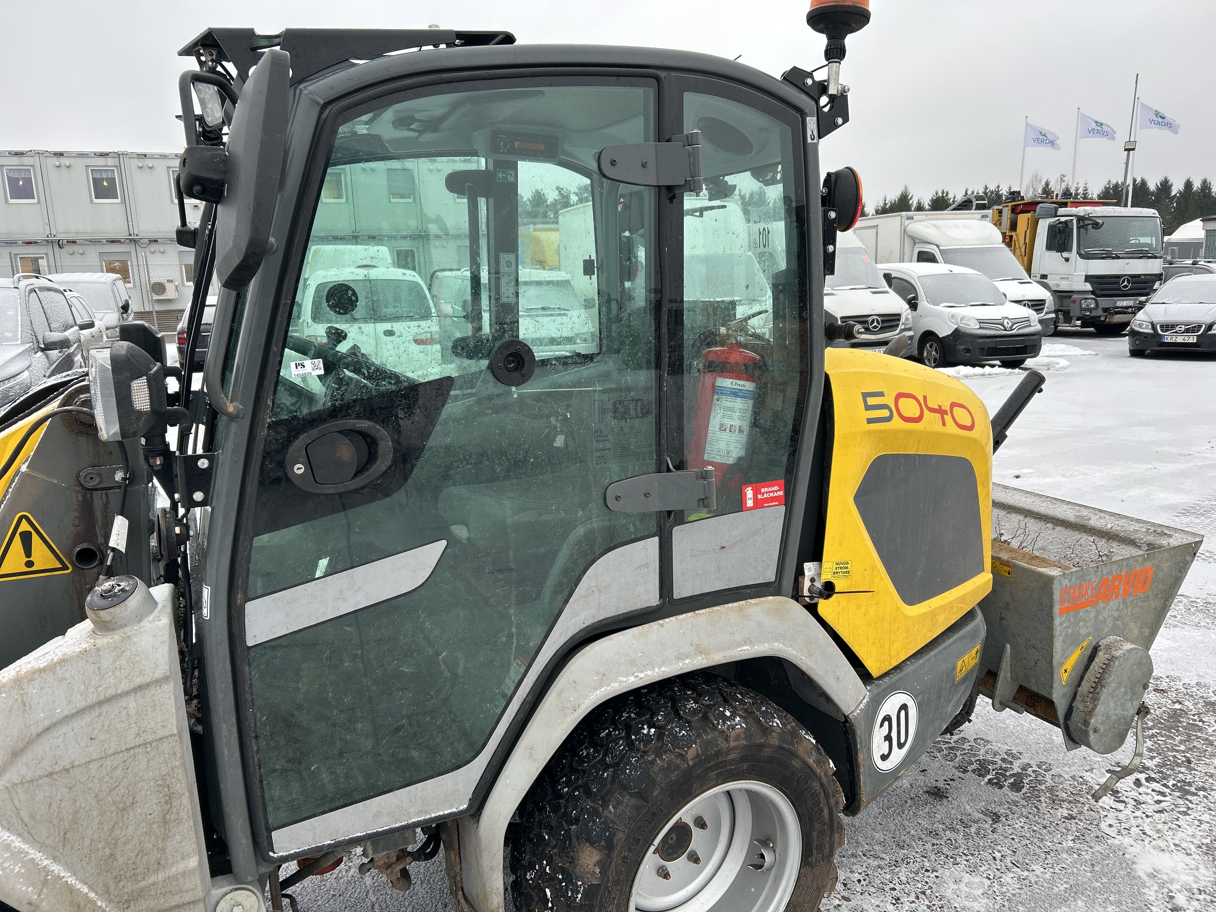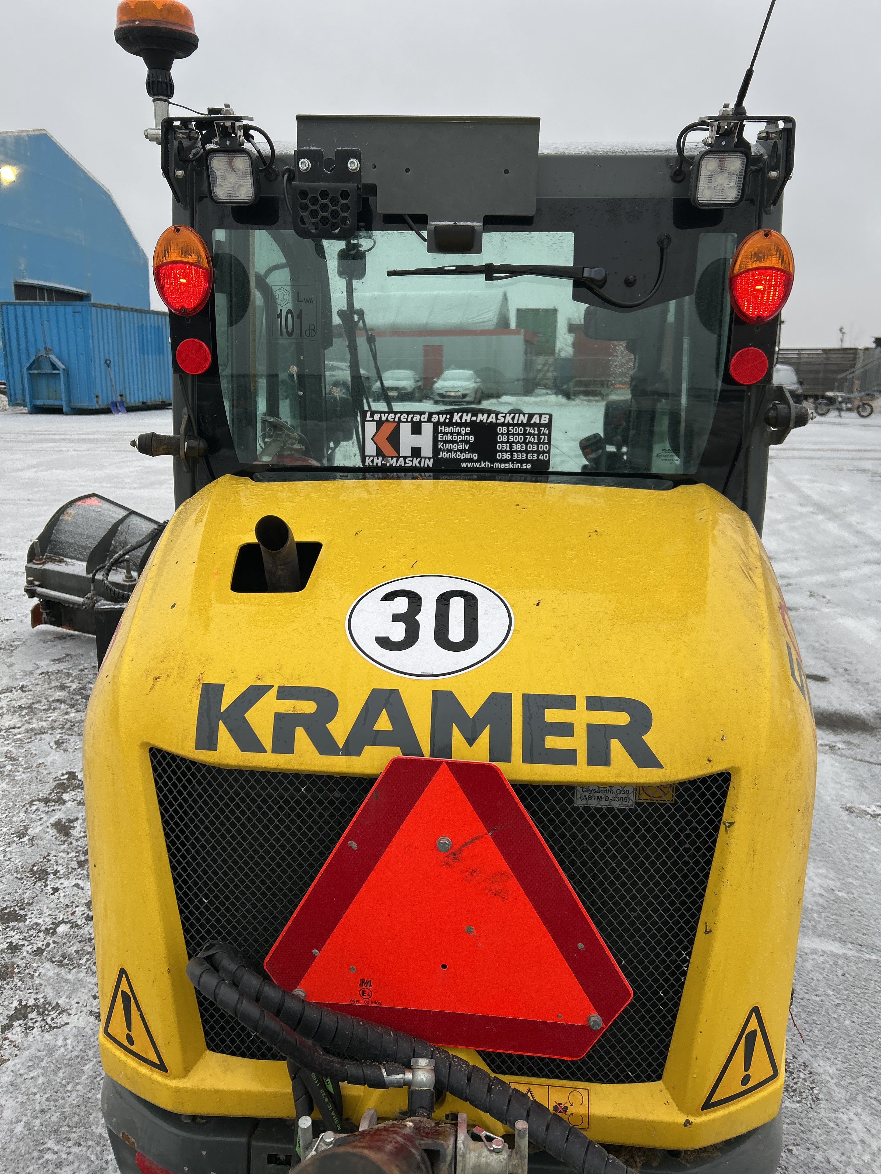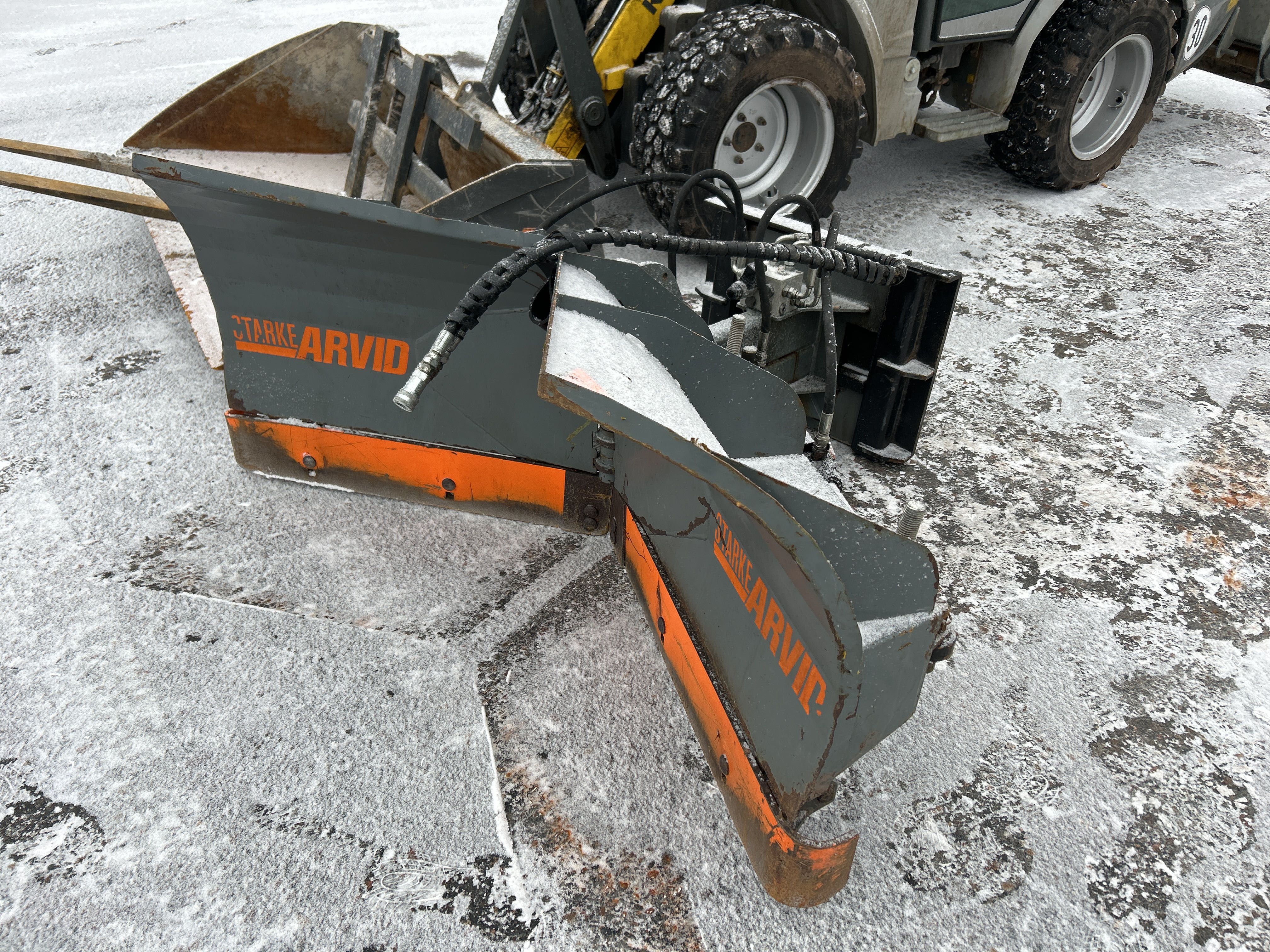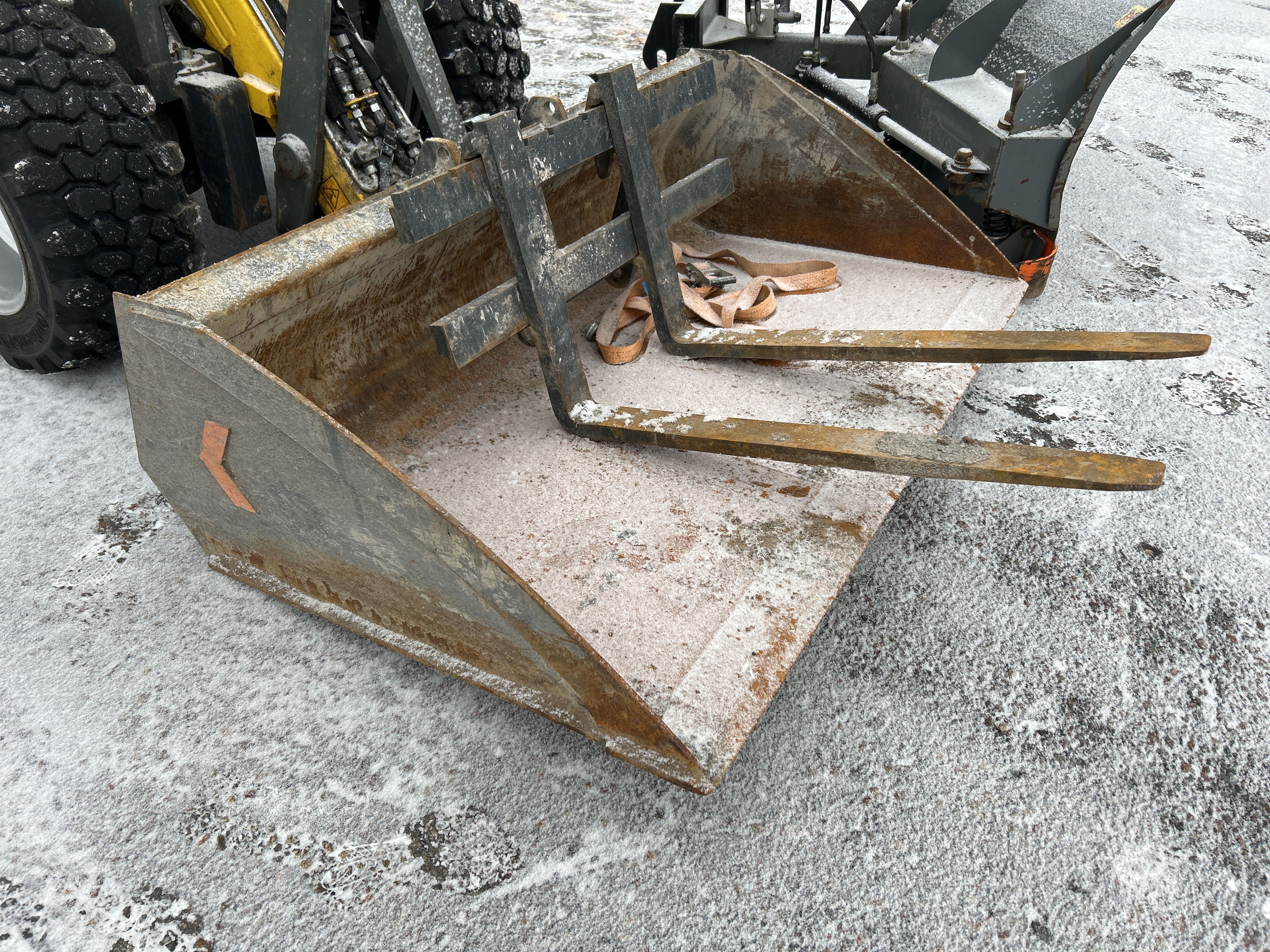 Kompaktlastare Kramer 5040 med skopa, gafflar, vikplog & sandspridare