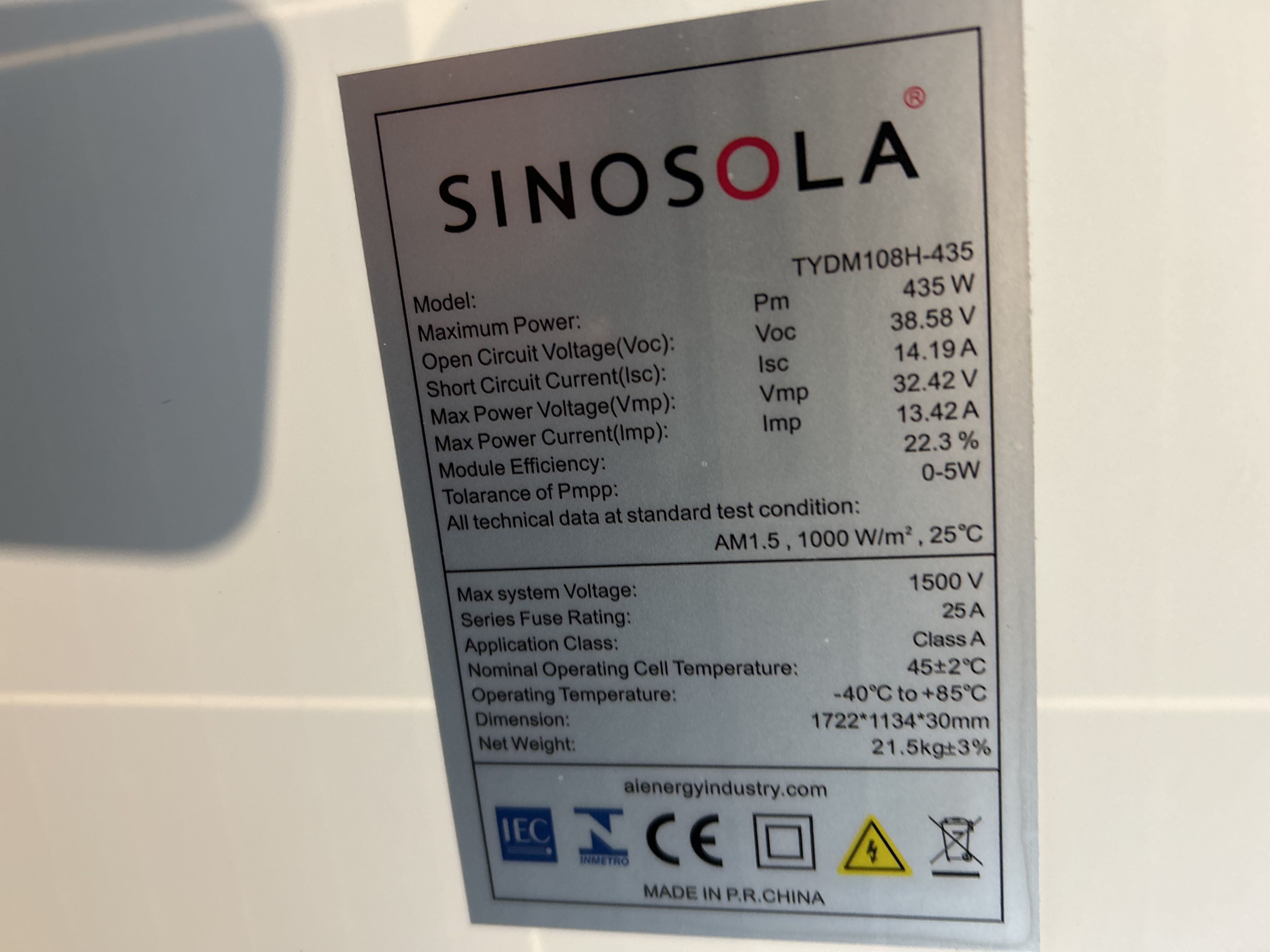Solpaneler ca 100 st med monteringsdetaljer - Sinosola TYDM108H-435