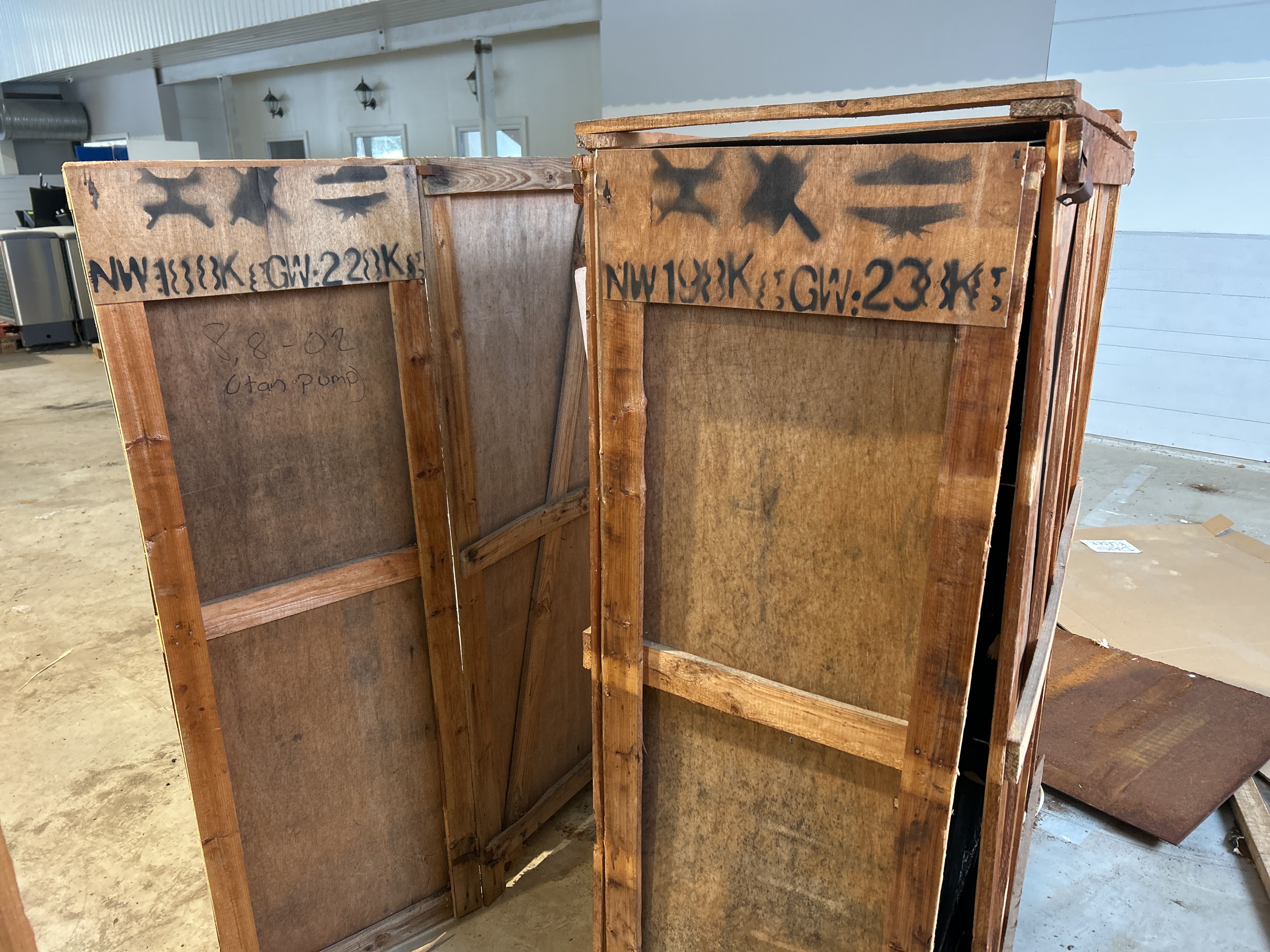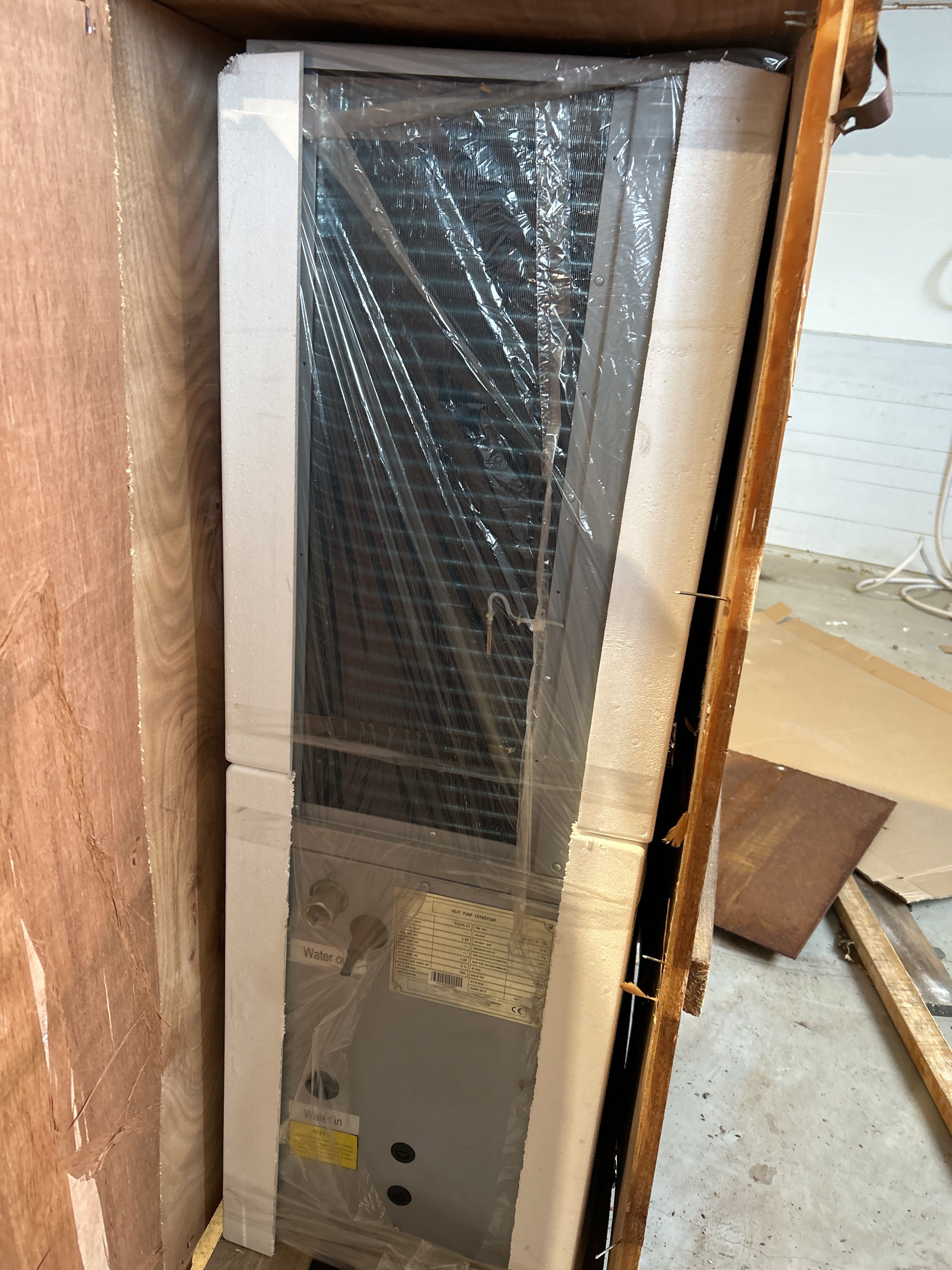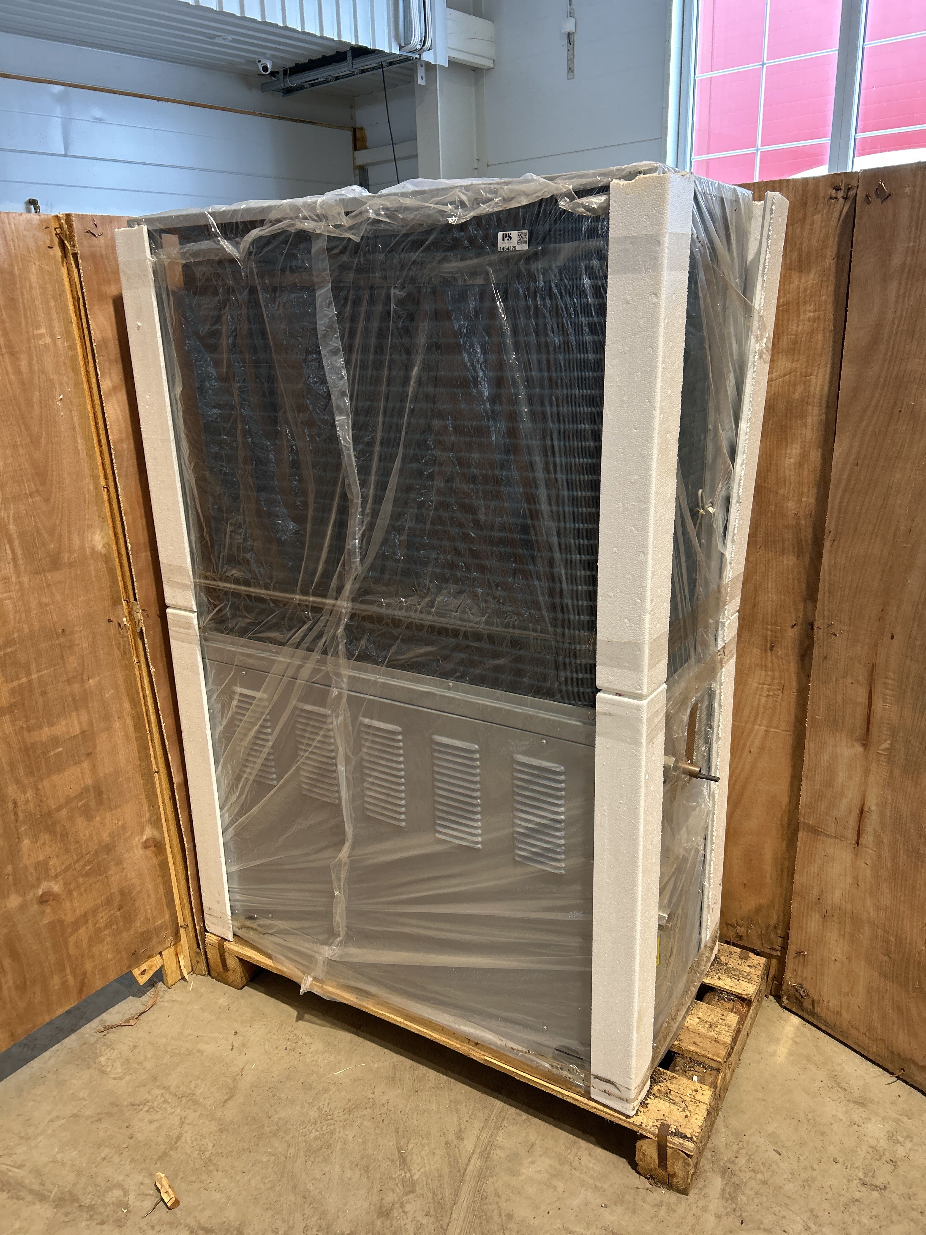 - Luftkylda vattenburna värmepumpar av modell HLRgX28.8/L. Enheterna är emballerade i trälådor med måttangivelse på utsidan och är avsedda för uppvärmning av vatten i fastighets- eller industrisystem.