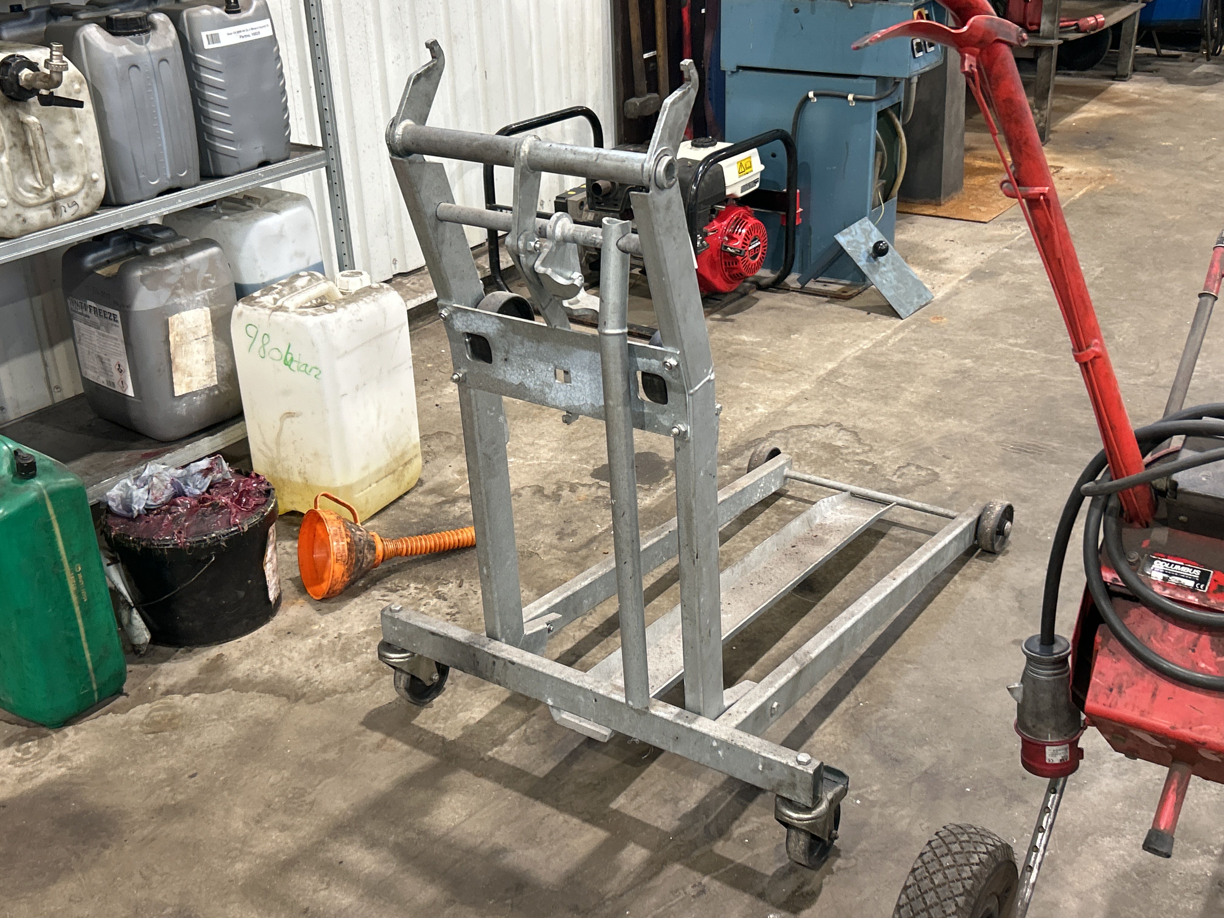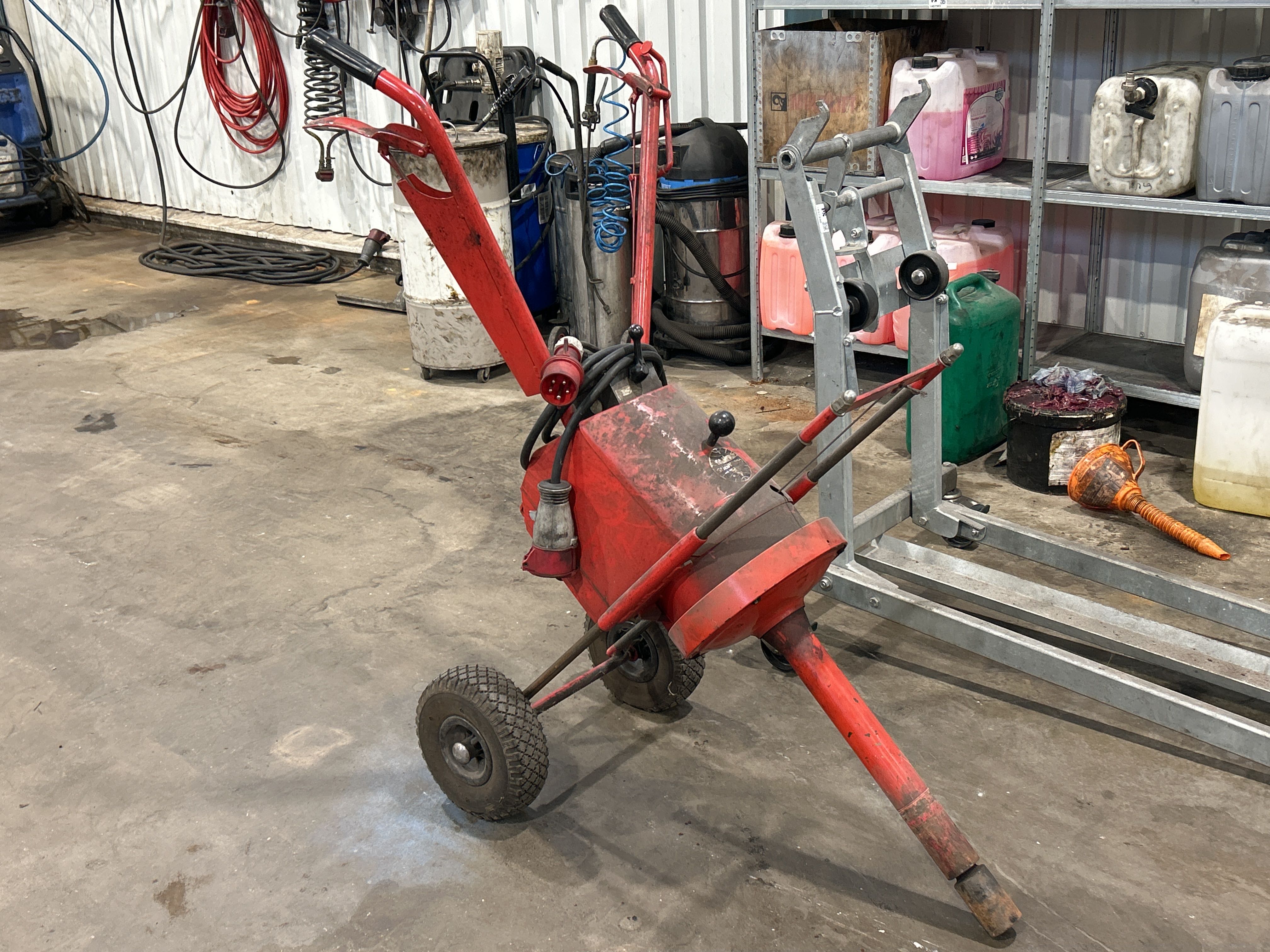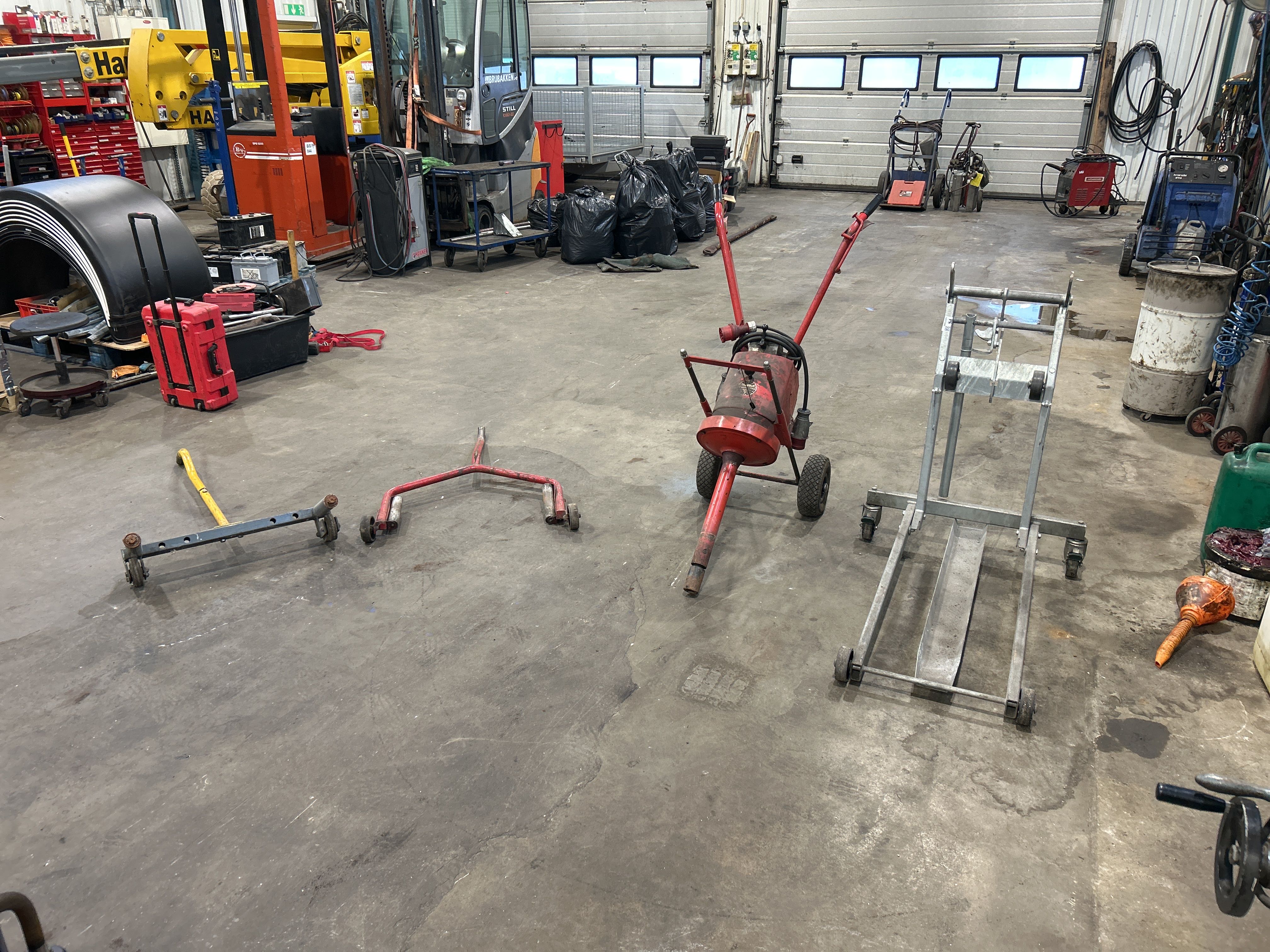 Bland objekten finns sopmaskin, kombiskurmaskin, fordonslyft, truckar, migsvets, pelarborrmaskin, bandslipmaskin på stativ, oljepumpsamlare, pallställage samt sortimenthyllor med innehåll med mera.