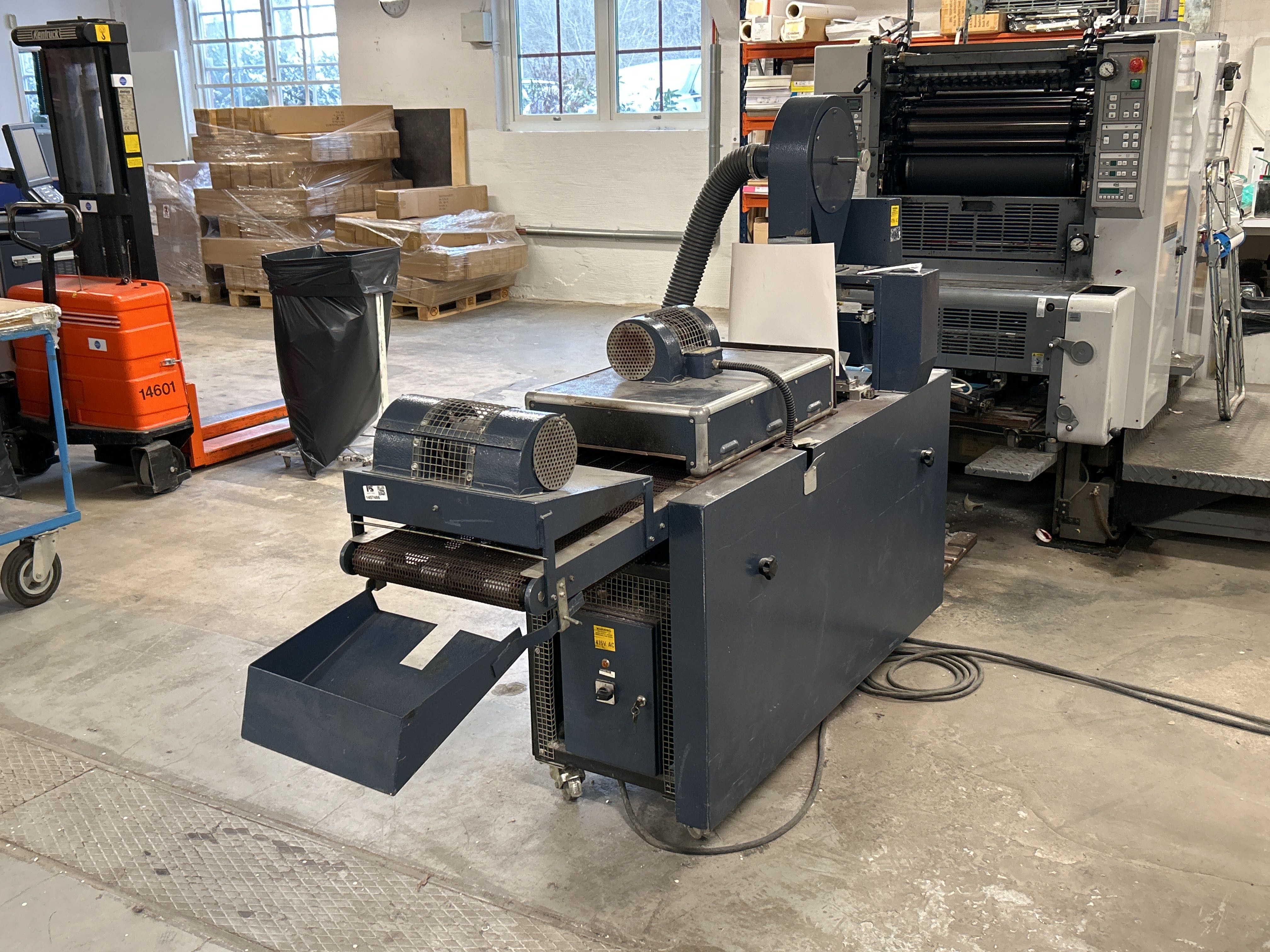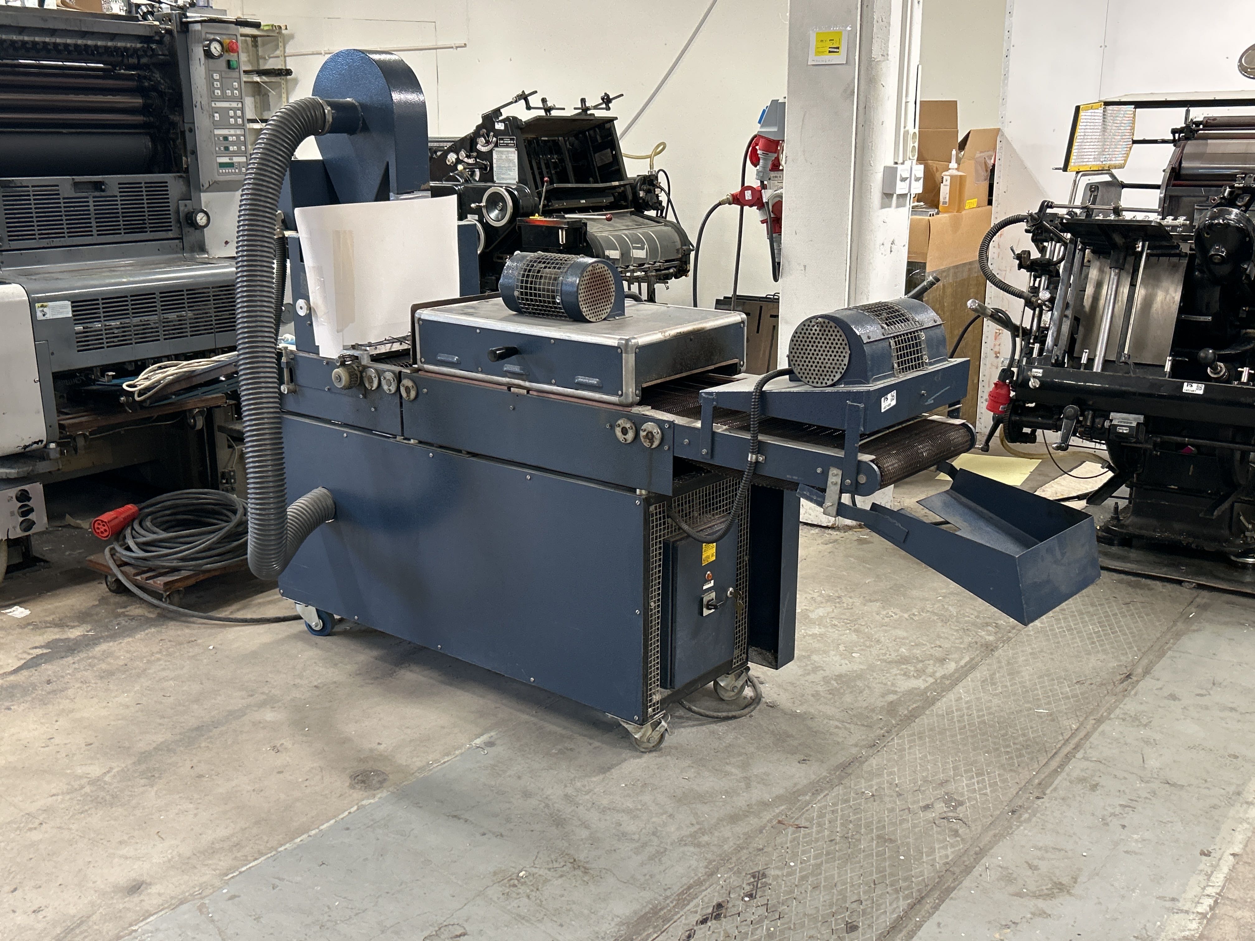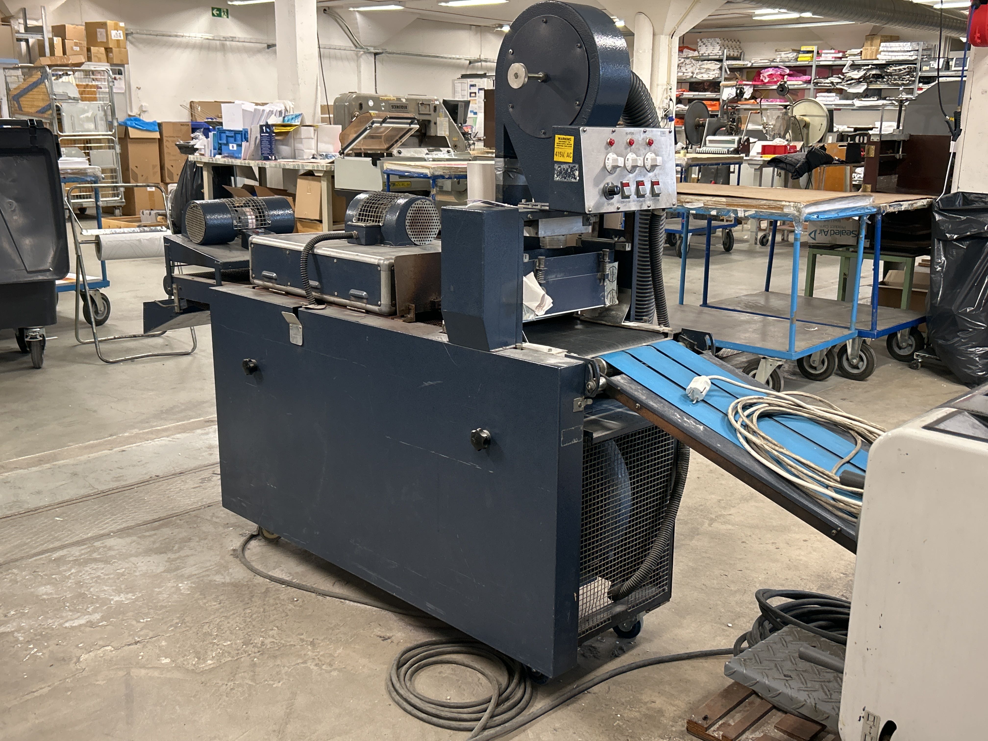 • Maskin för applicering och fixering av smältlim på trycksaker eller andra material. Utrustad med värmezoner, fläktar och transportband för effektiv bearbetning i produktionsmiljö.