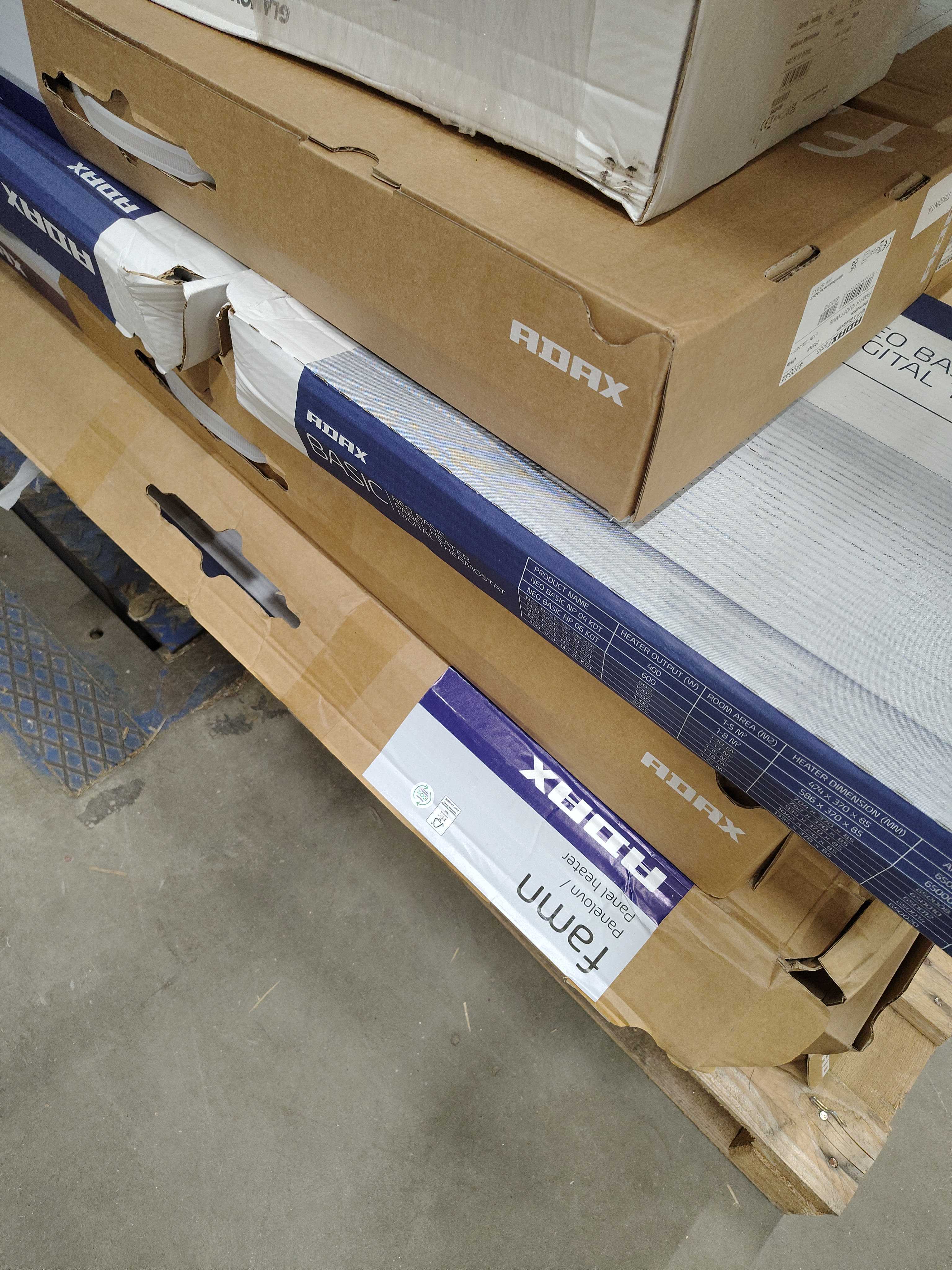 Skadat emballage förekommer. Buklar och repor finns på vissa radiatorer. Radiatorerna har inte öppnats eller kontrollerats i detalj. Ytterligare skador eller avvikelser kan förekomma