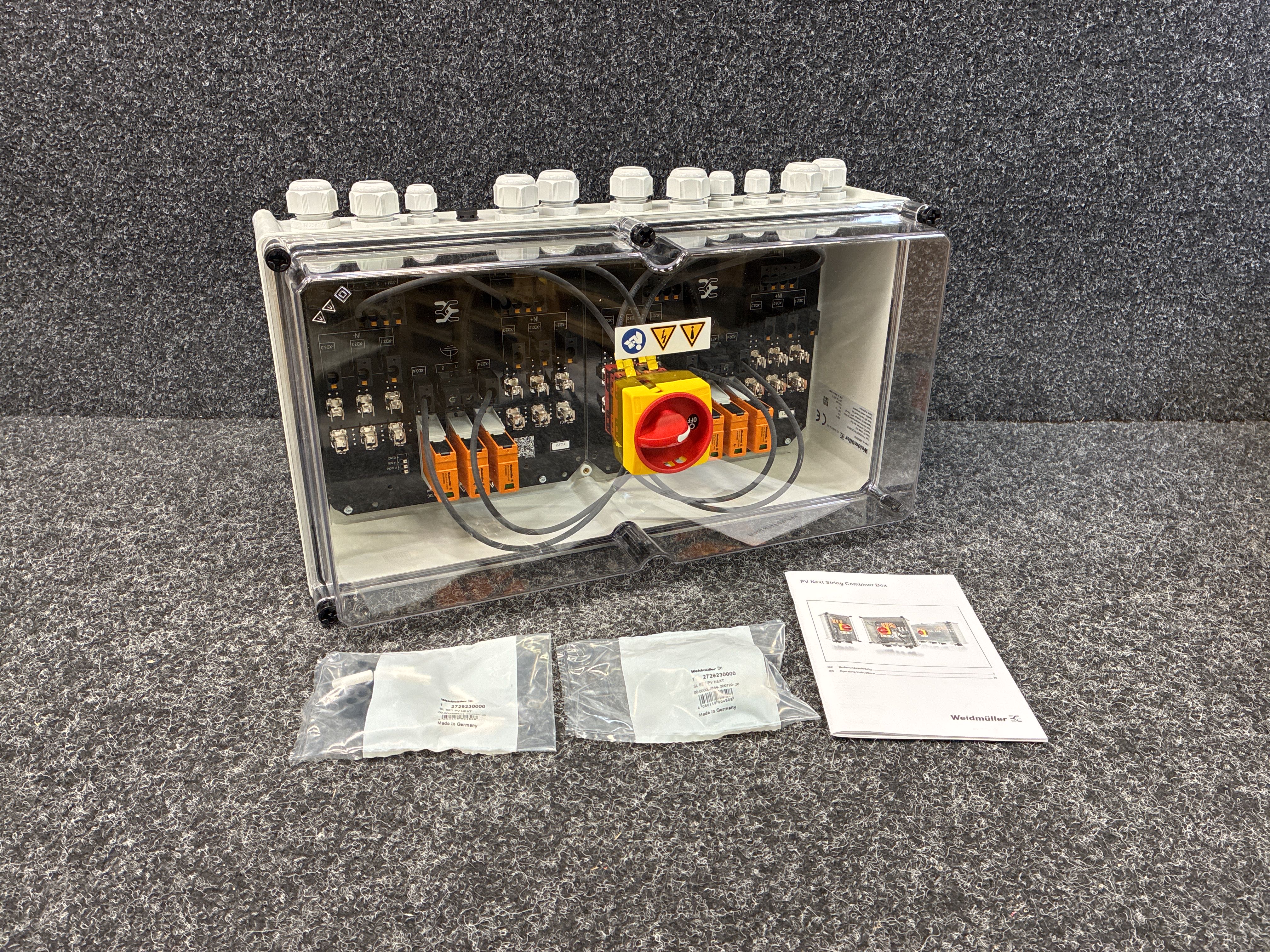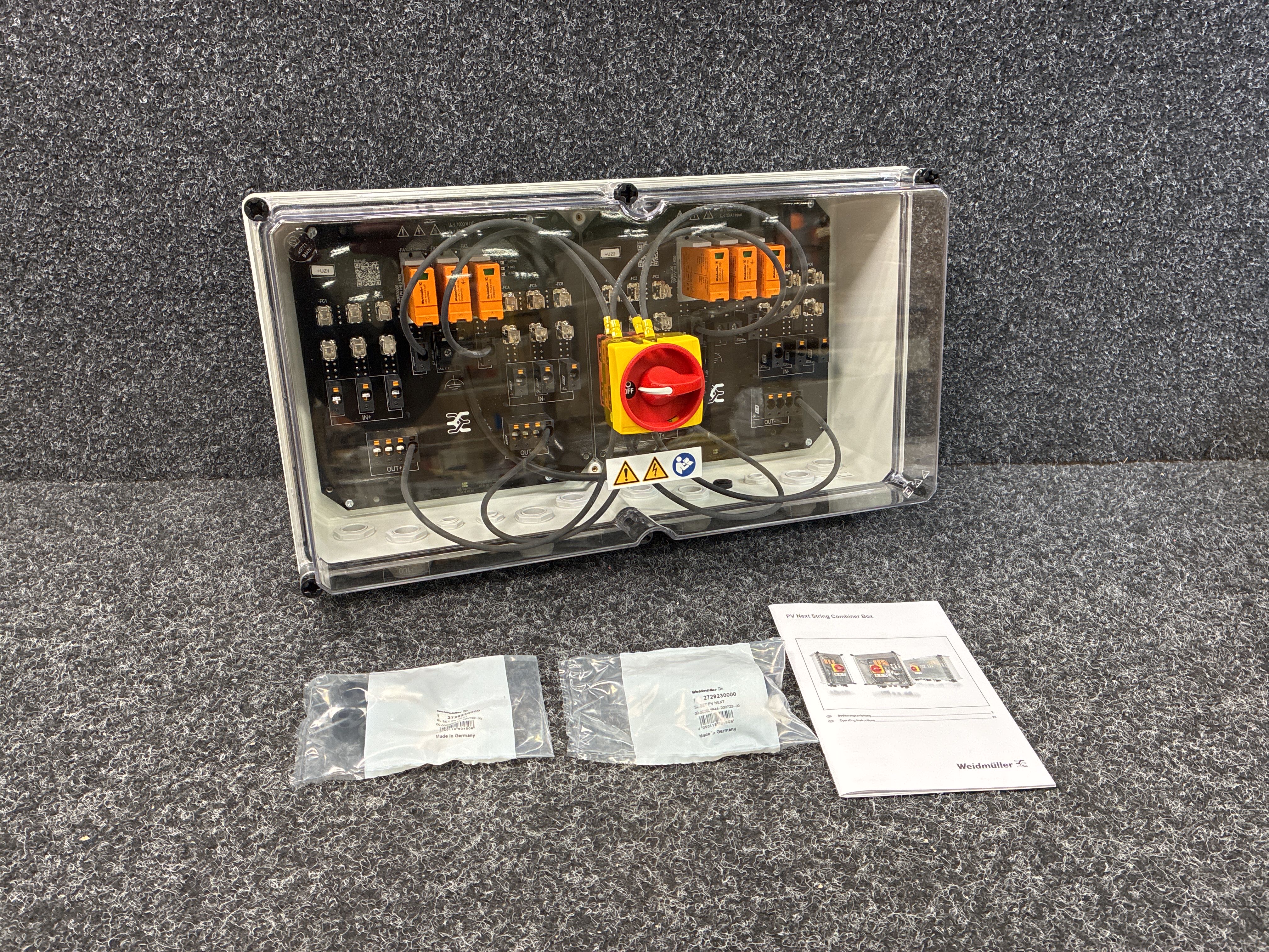 Fotovoltaik, Kopplingslåda, PV Next, 1000 V, 2 MPP, 3 ingångar/3 utgångar per MPP, Med säkringshållare, Överspänningsskydd I / II, Växla frånskiljare, Förskruvning.
