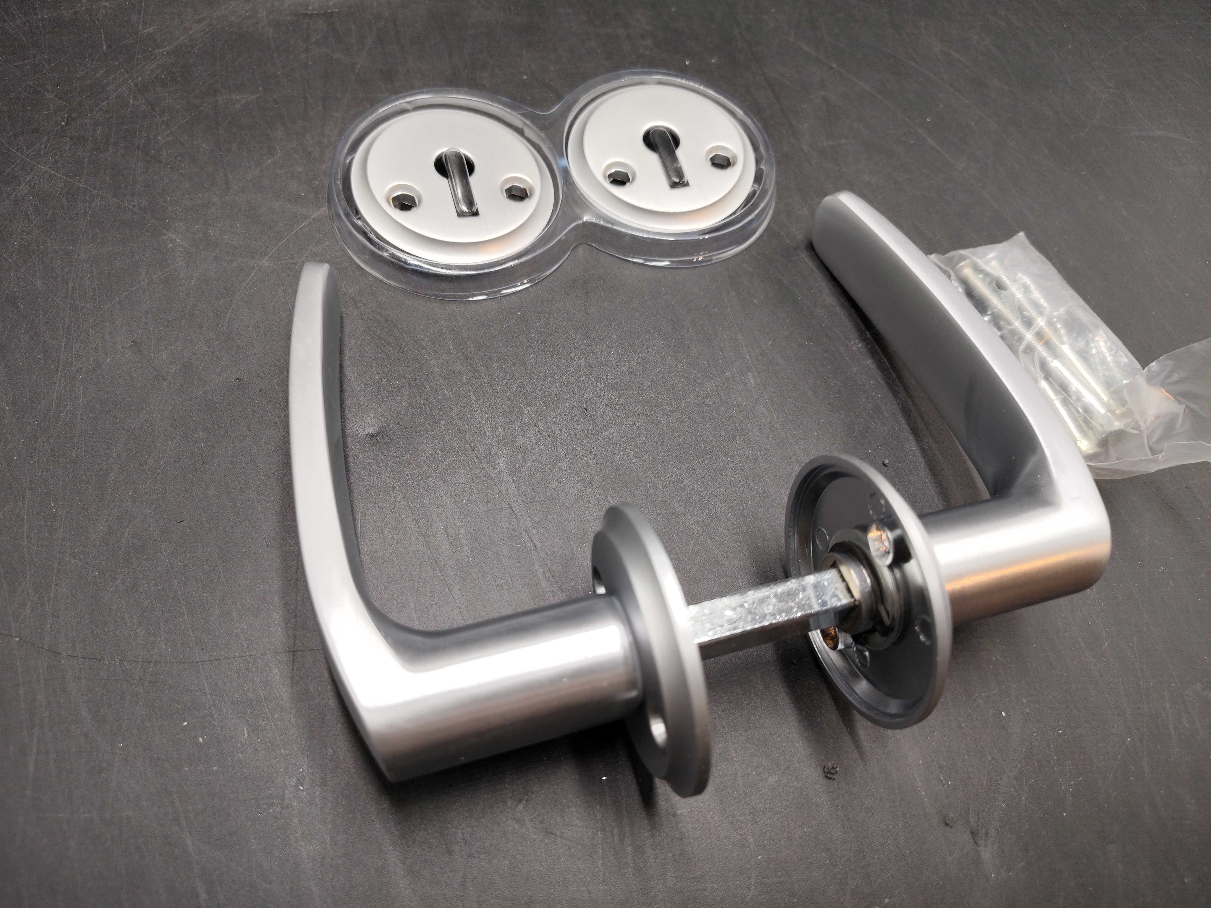 Innerdörrhandtag i matt krom med tillhörande nyckelskylt. Ett stilrent och funktionellt beslag anpassat för standardinnerdörrar i bostäder och kontorsmiljöer.