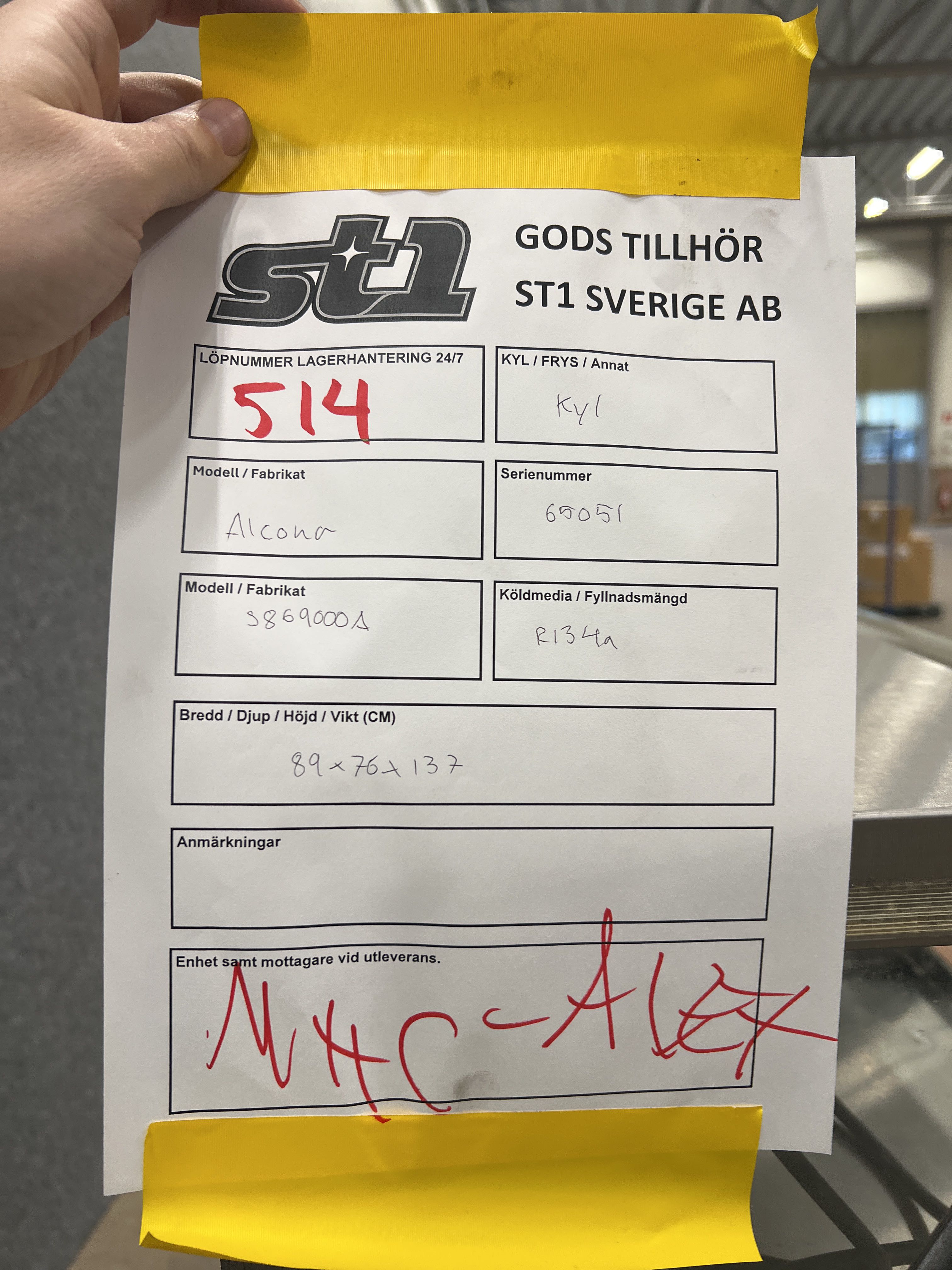 - Köldmedium: R-134a, 210g