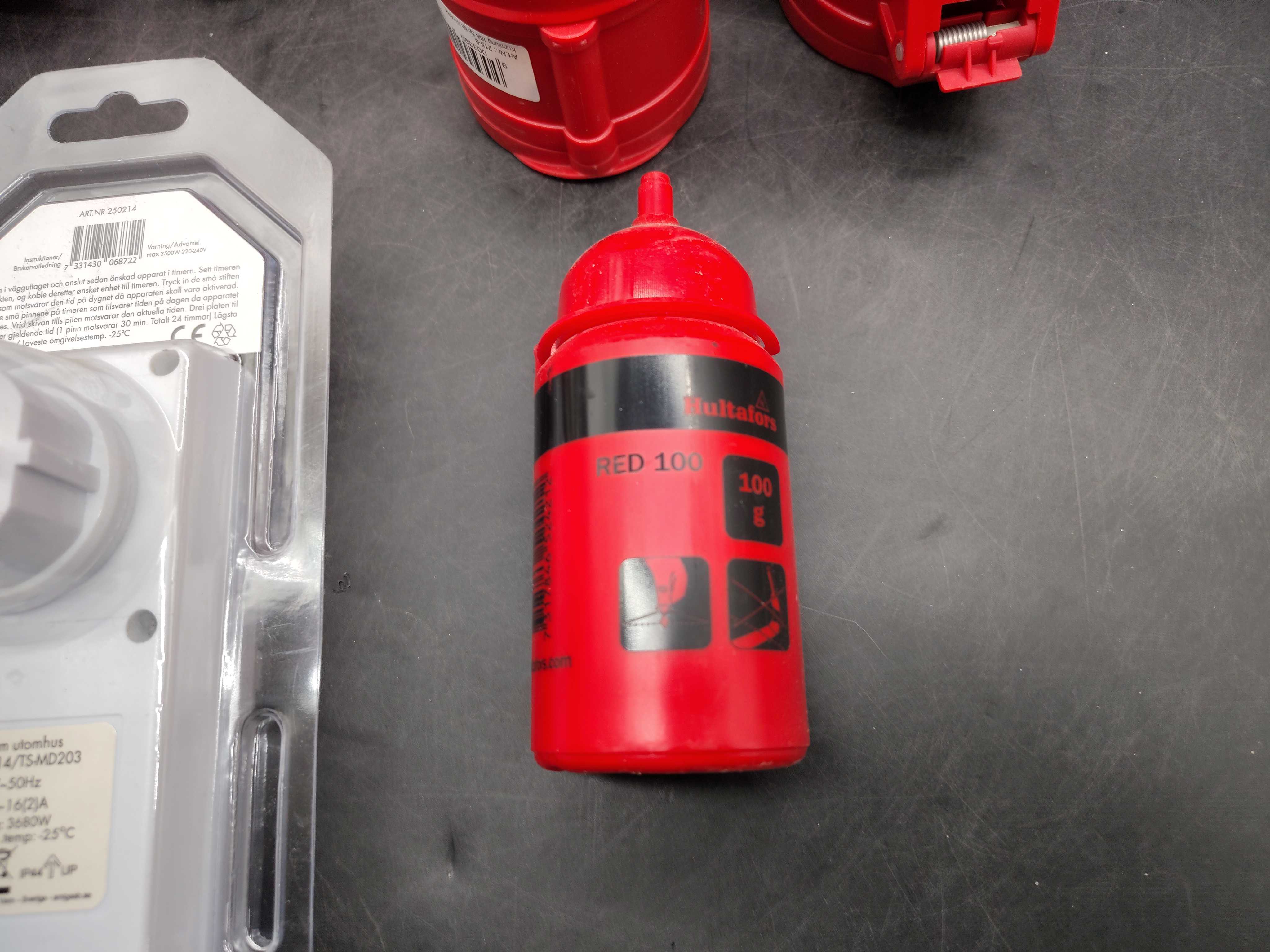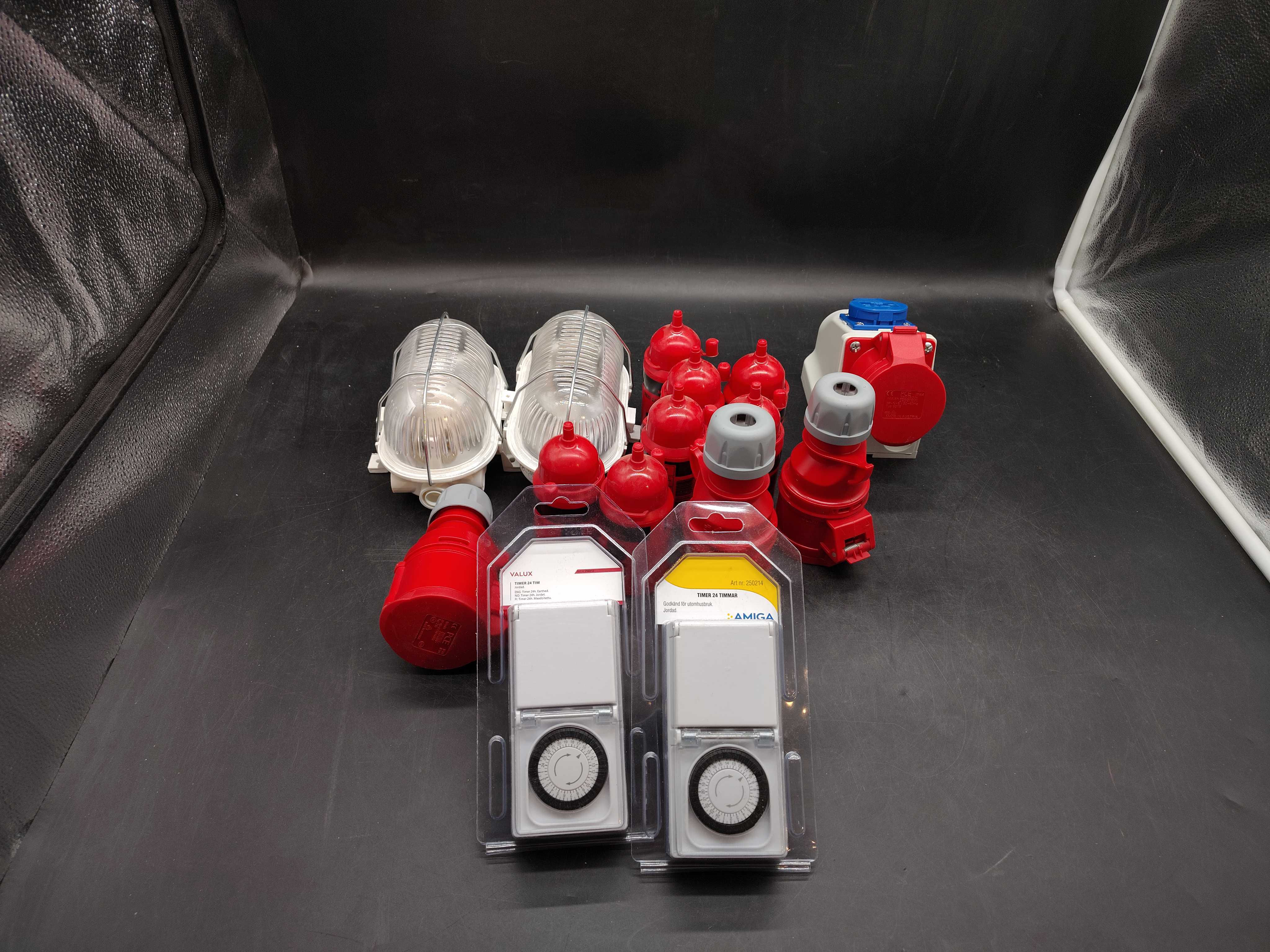 Elmaterial, ca 15 st – industrikontakter, timers, armaturer