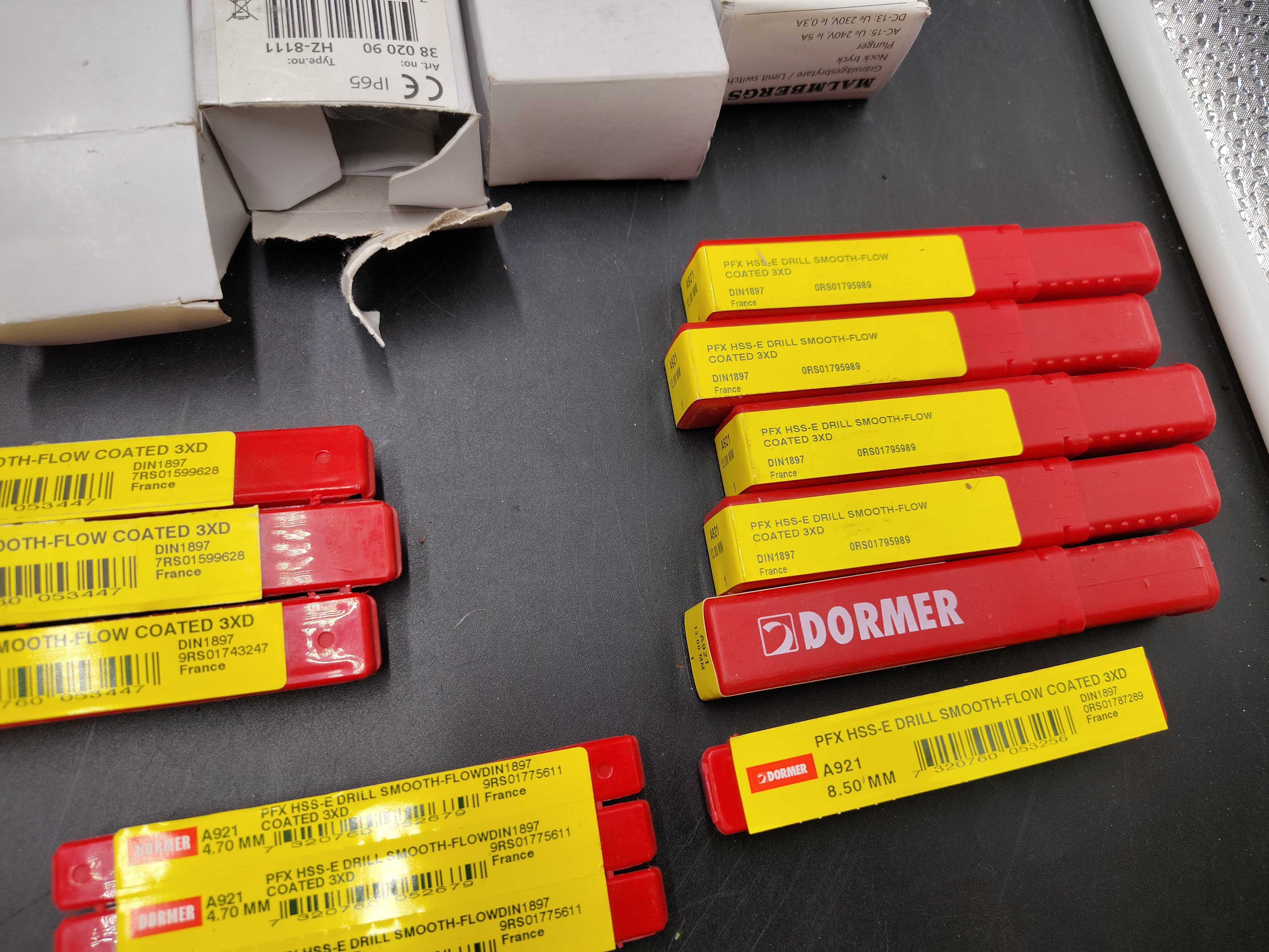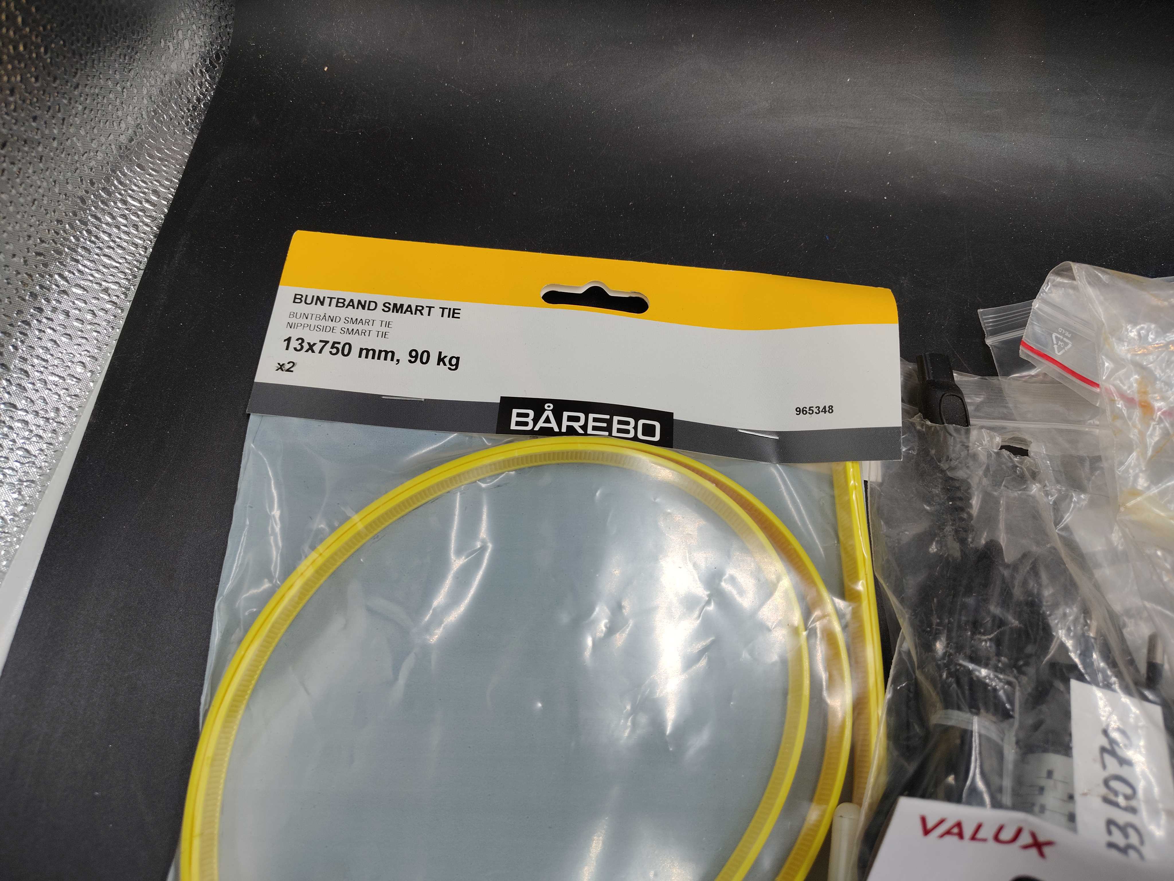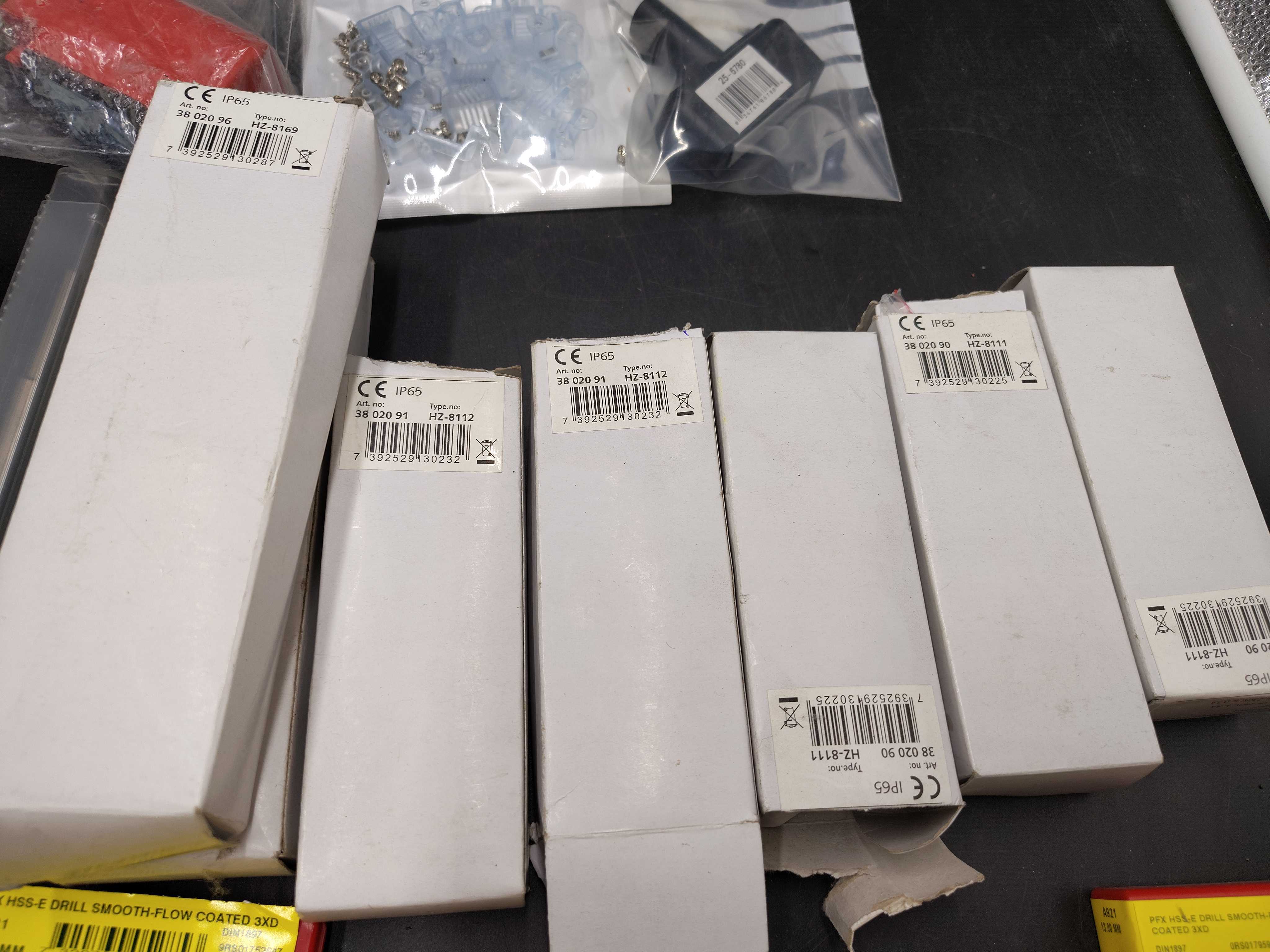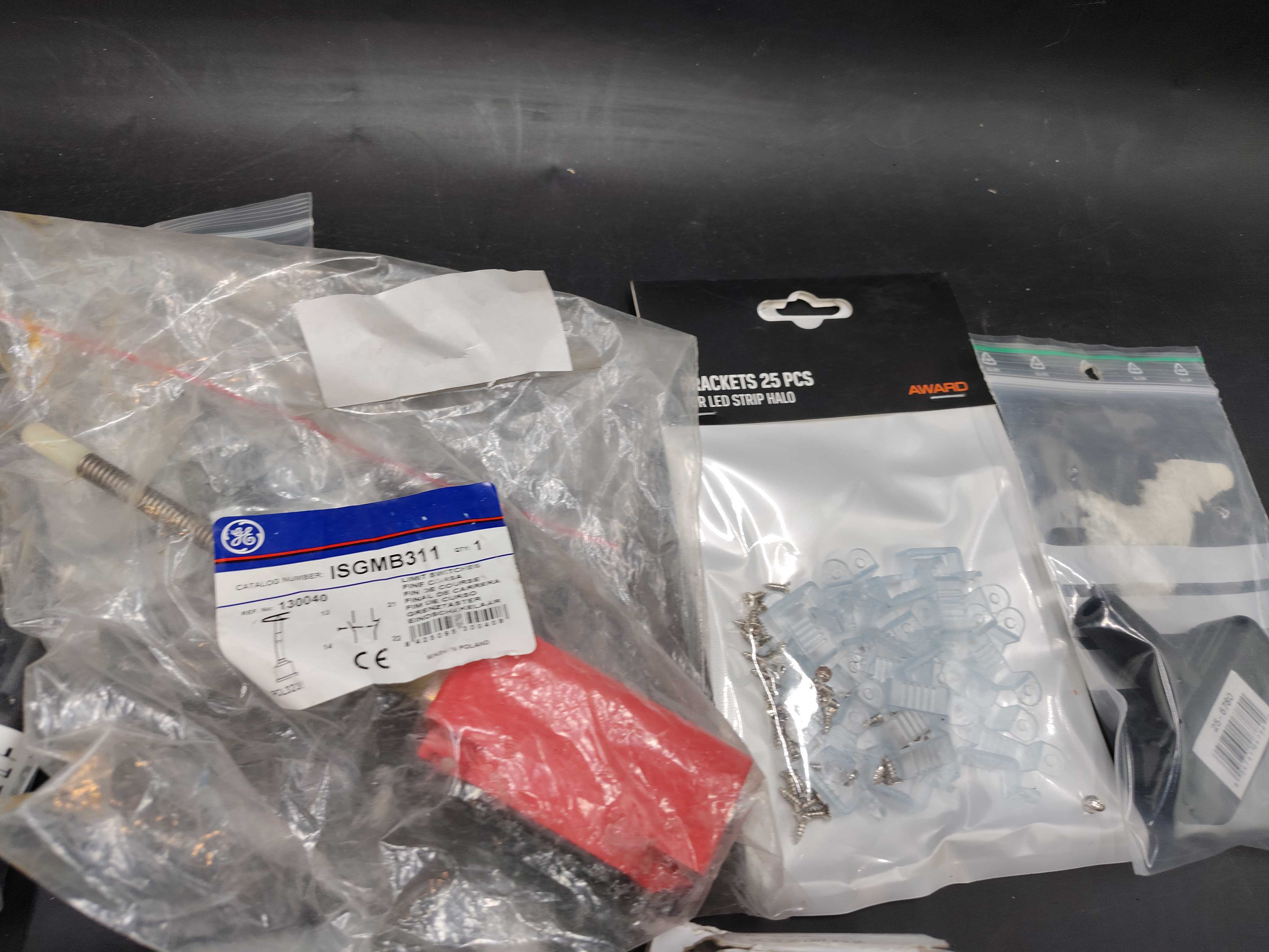 Blandat elmaterial, parti – kopplingsdetaljer, brytare, buntband, borr