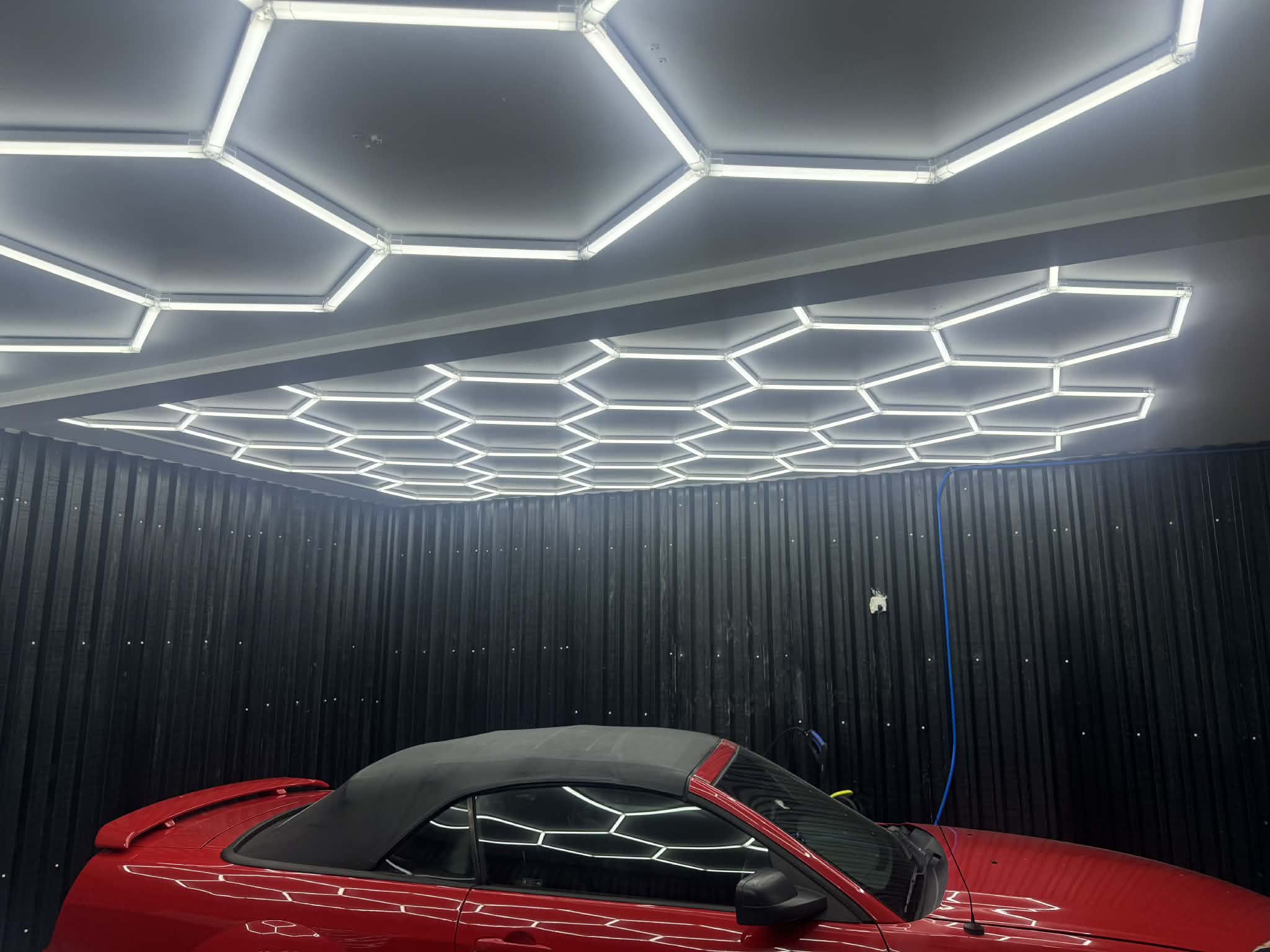 Modulärt LED-system i hexagonmönster. Systemet ger ett starkt, jämnt och riktat arbetsljus och är konstruerat för miljöer som kräver både bra belysning och hållbar konstruktion.