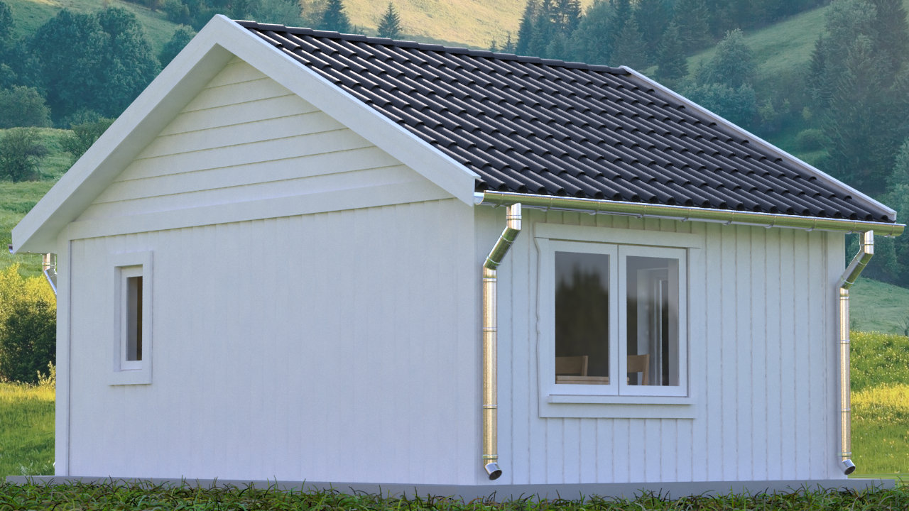 Huset levereras utan panel påspikad (ingår ej) vilket gör att kunden själv kan bestämma vilken typ av panel den vill ha och om den ska vara liggande eller stående. Det går också bra att välja att putsa huset om man så vill.