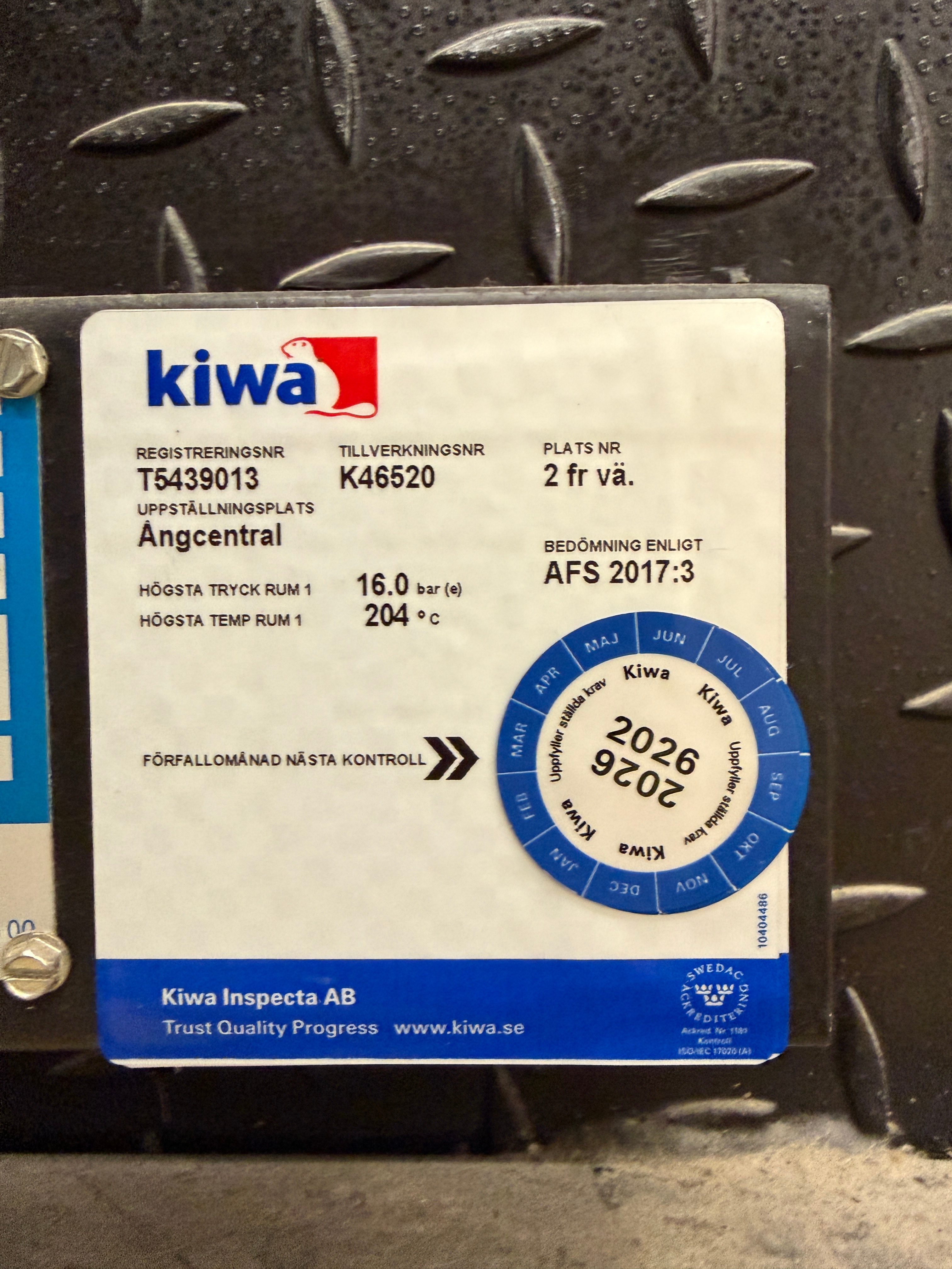 Senaste godkända besiktning: Märkt för ny kontroll 2026