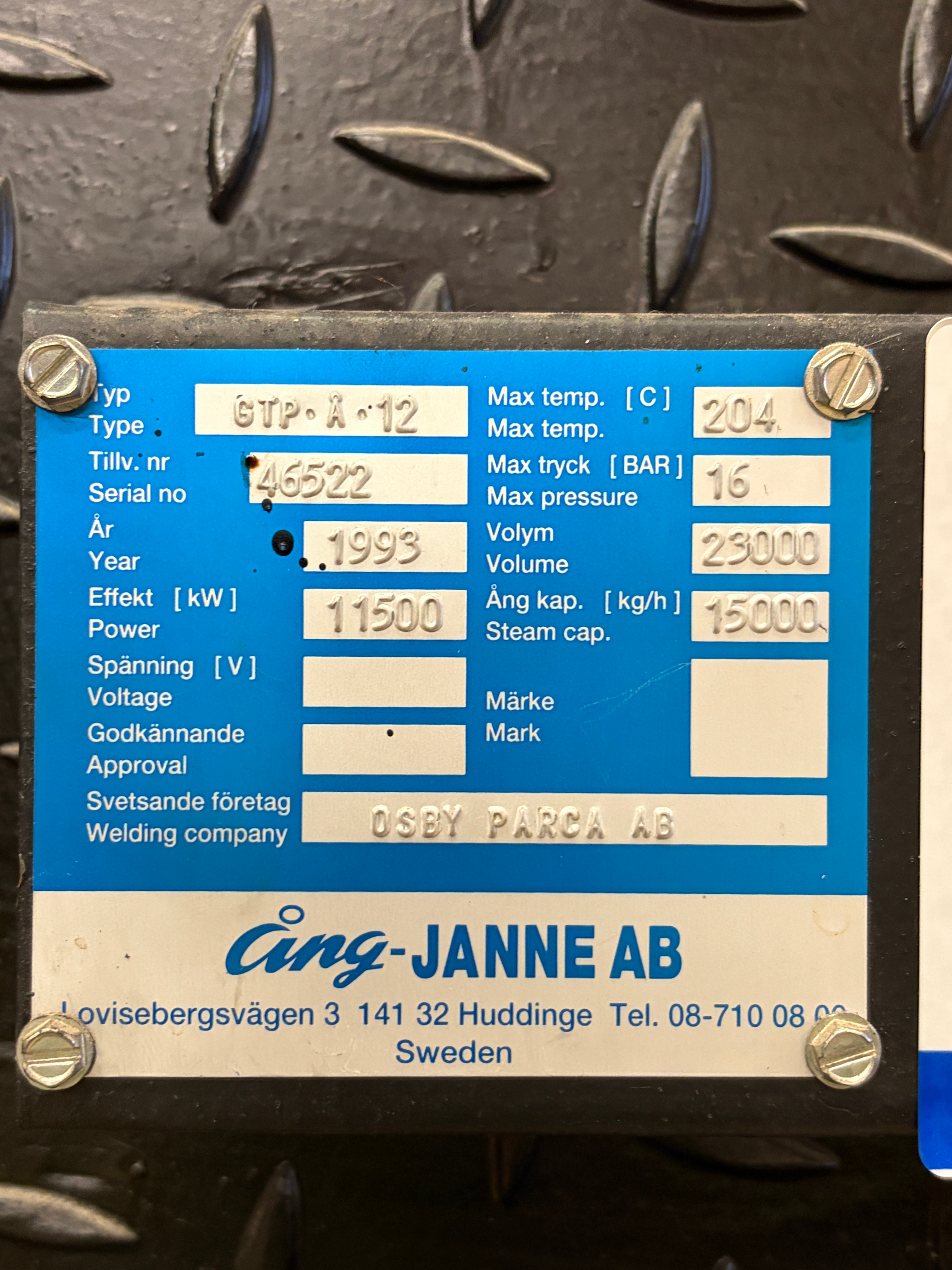 Ångpanna med industribrännare - Ång-Janne GTP Å12 -1993