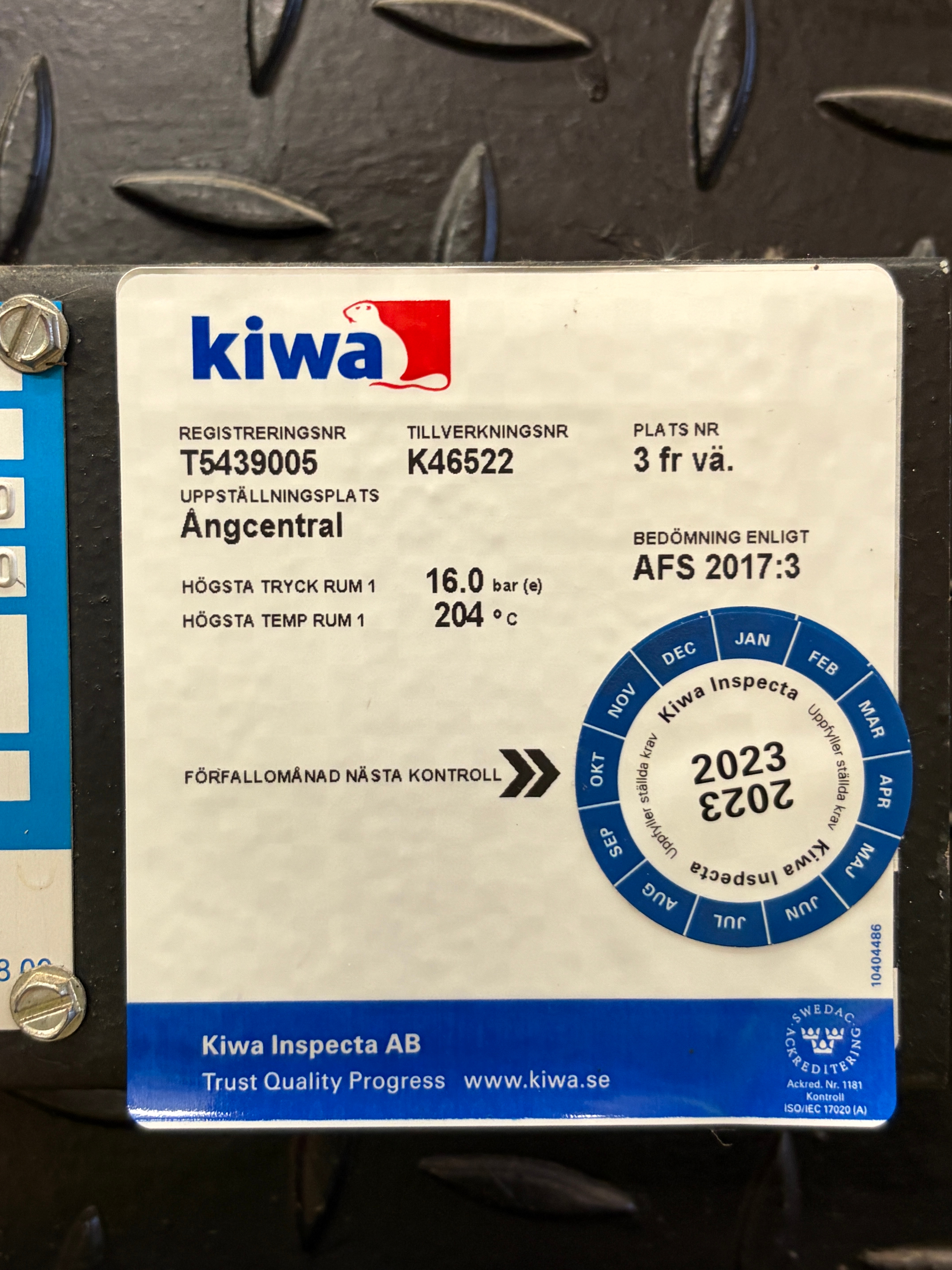 Kontrollorgan: Kiwa Inspecta AB