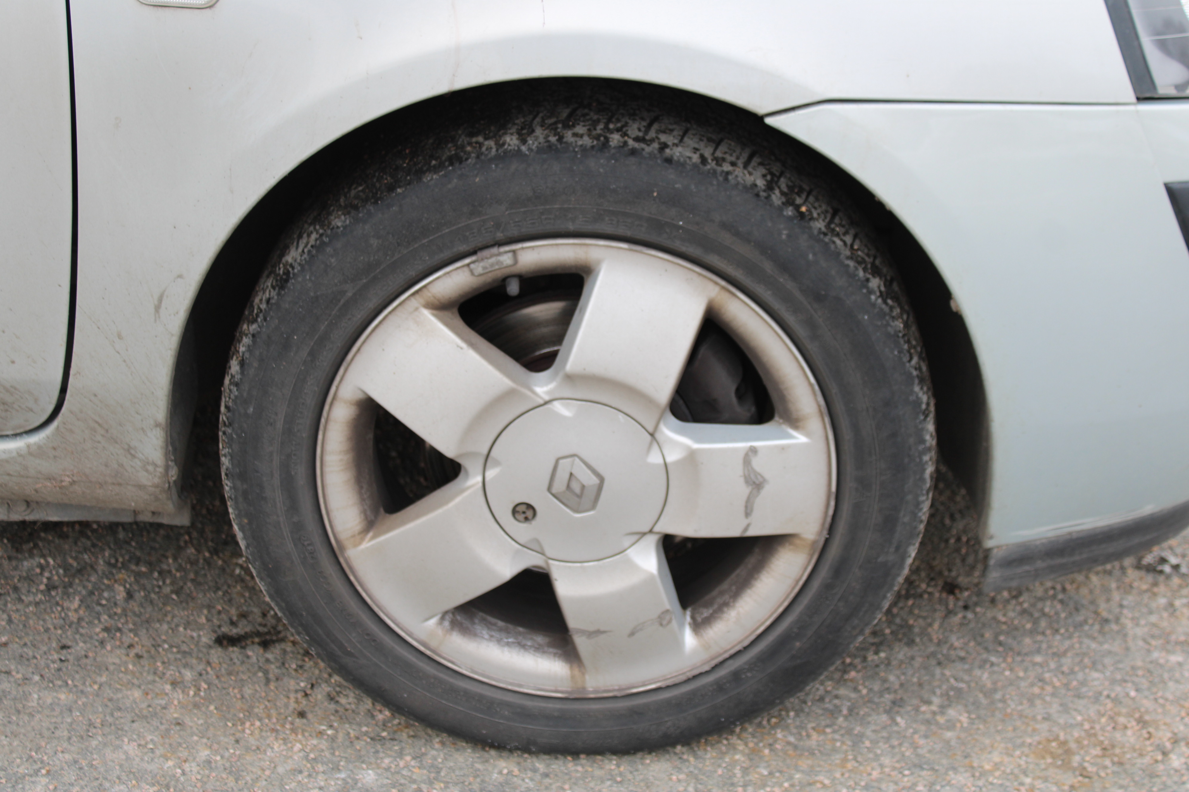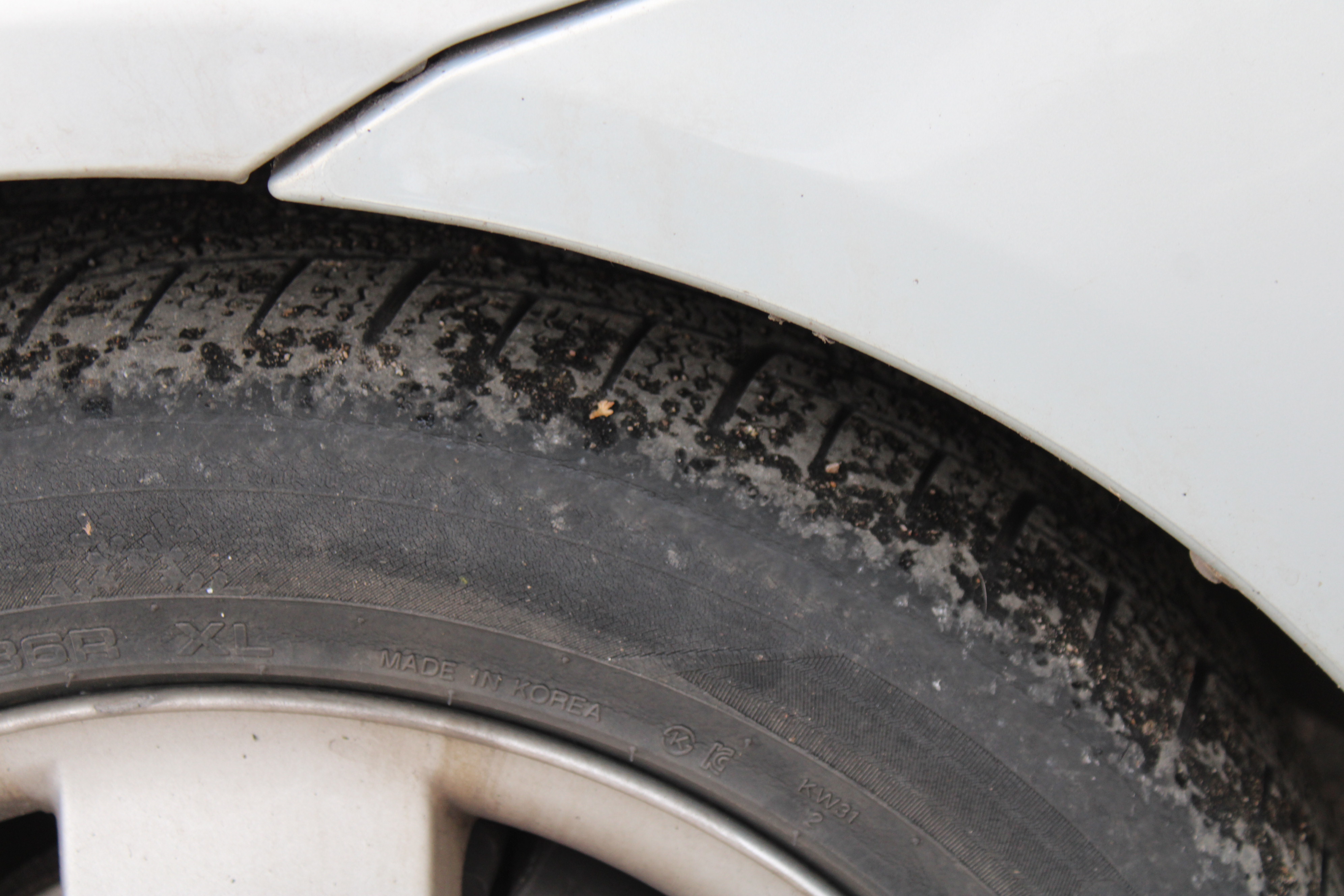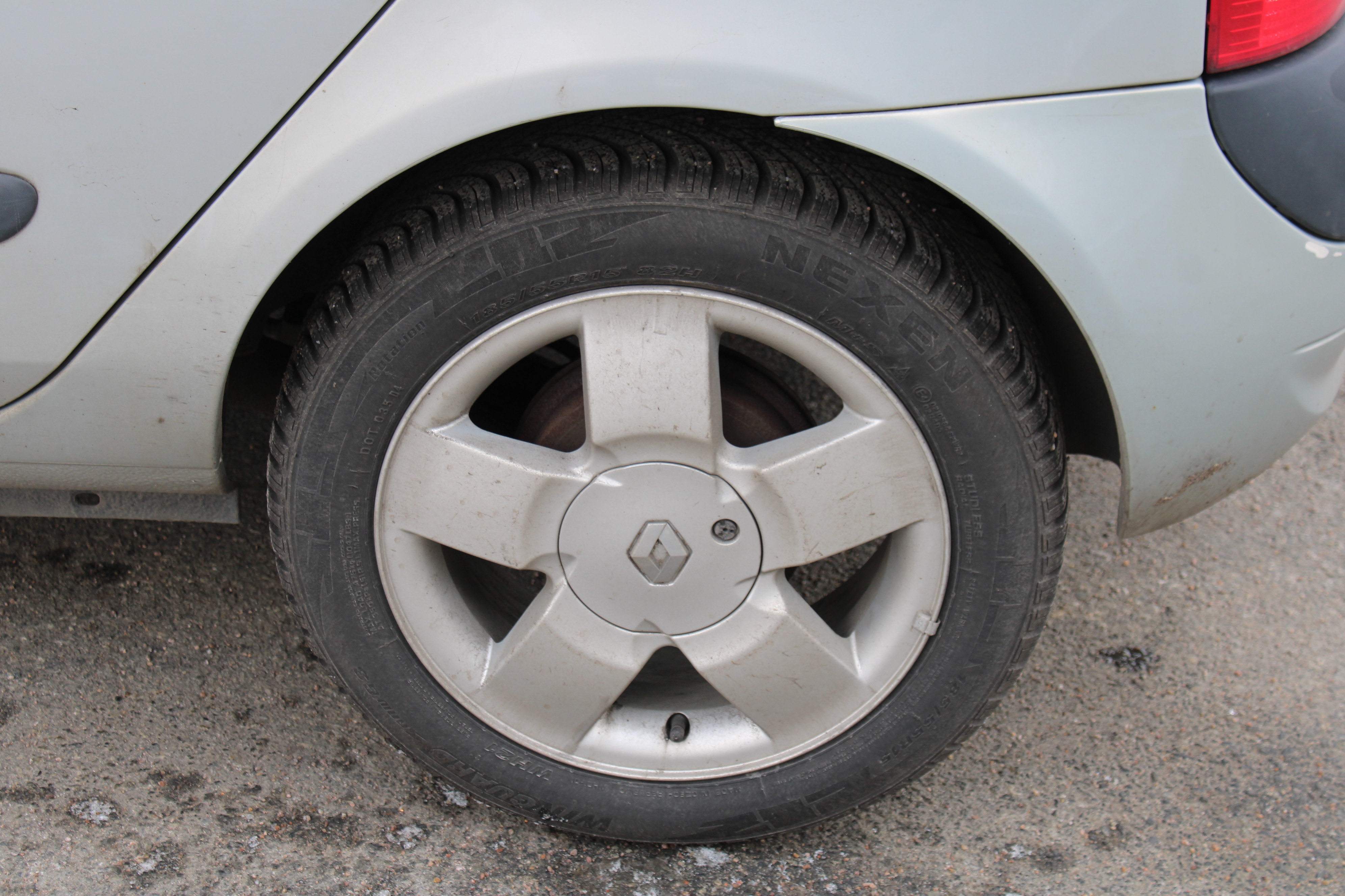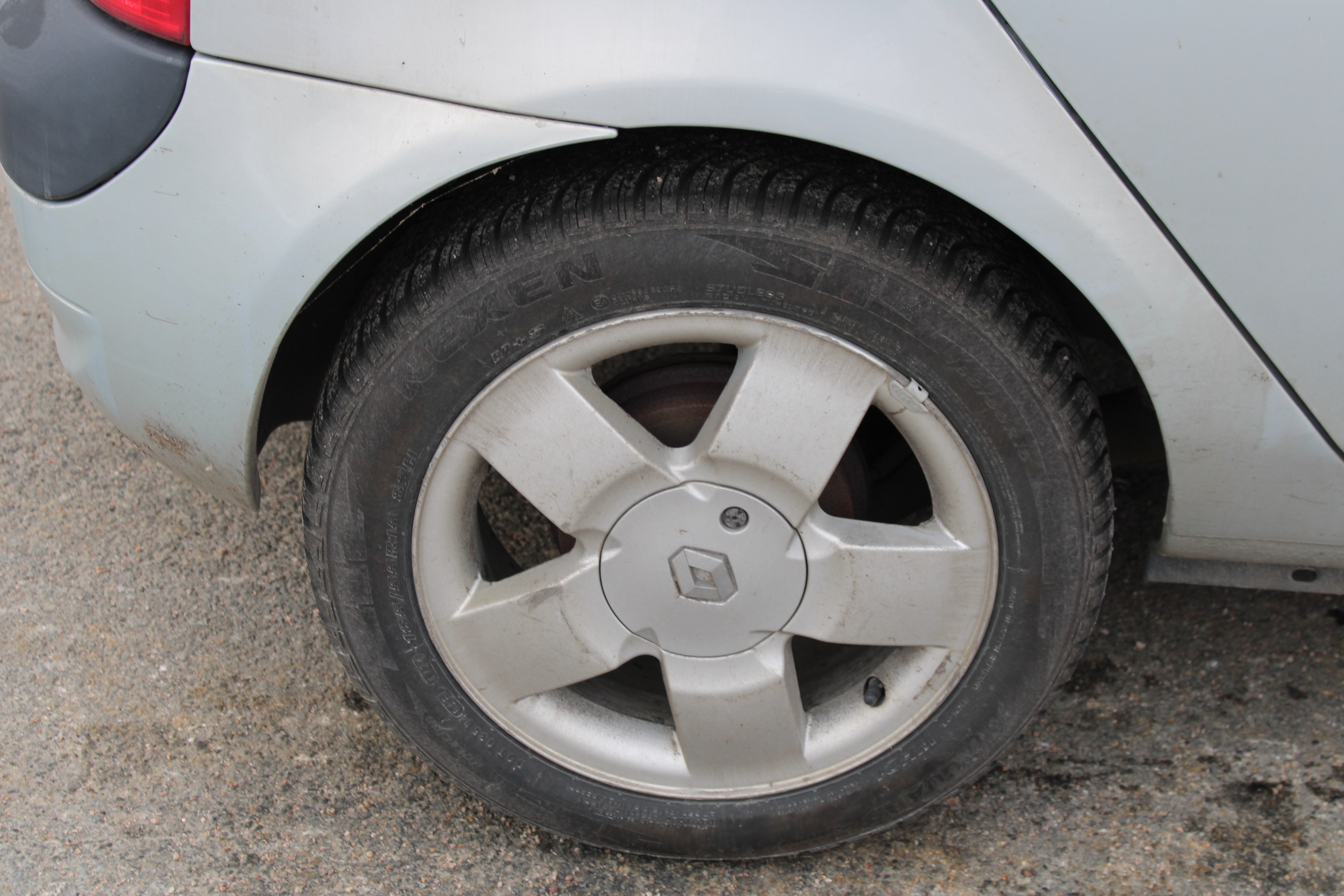 Står på dubbfria vinterdäck. Slitna fram men bra bak.