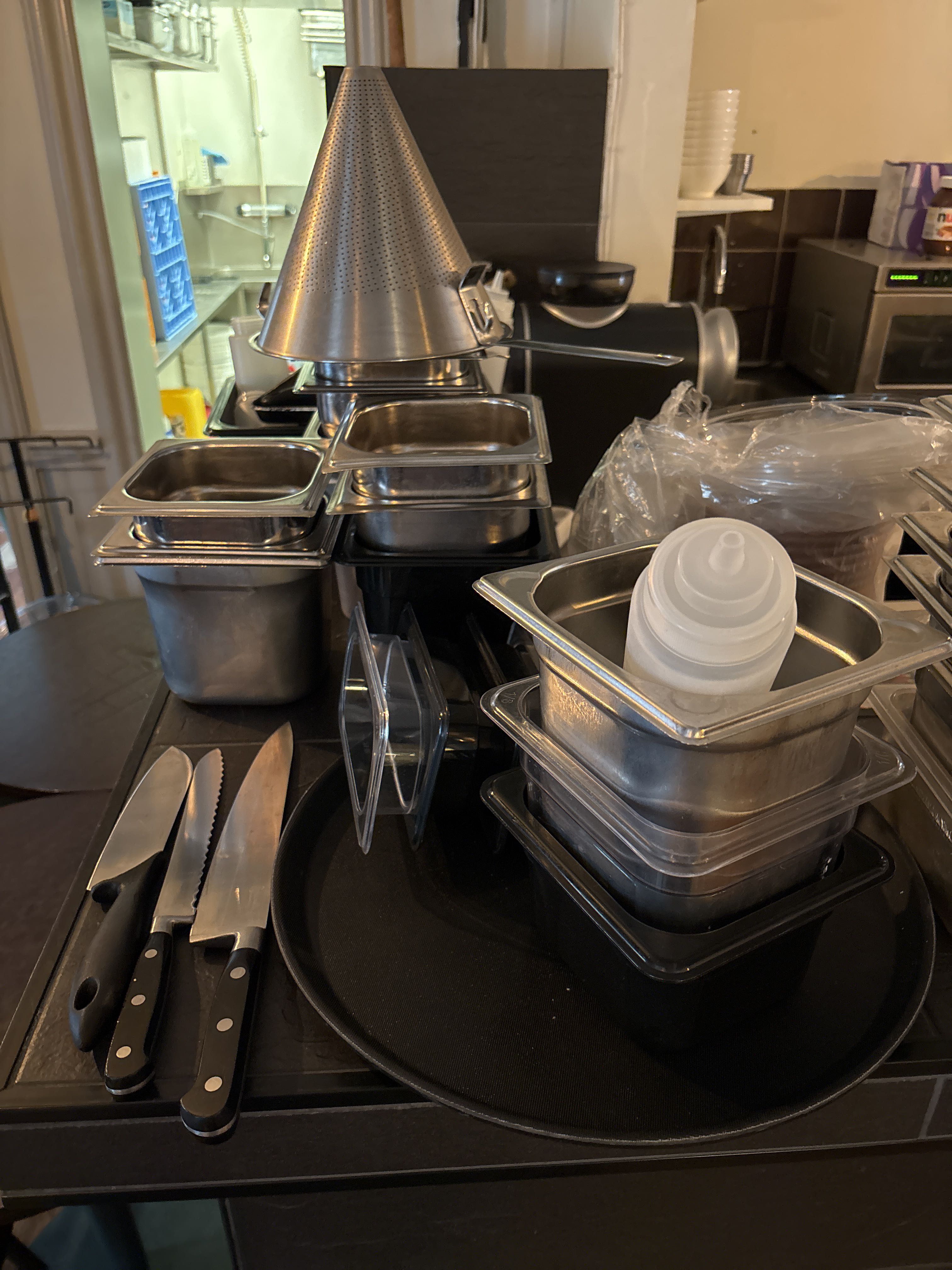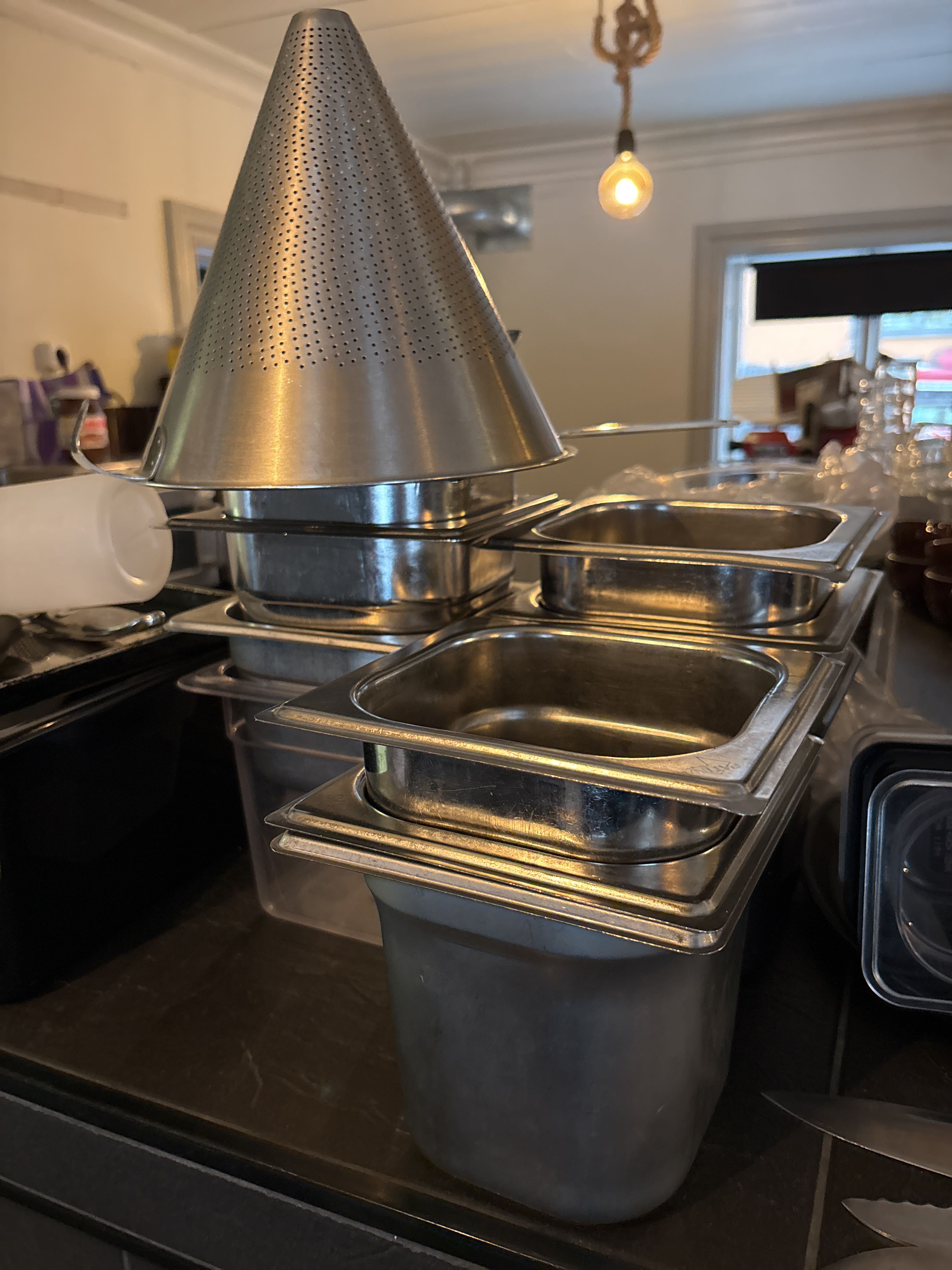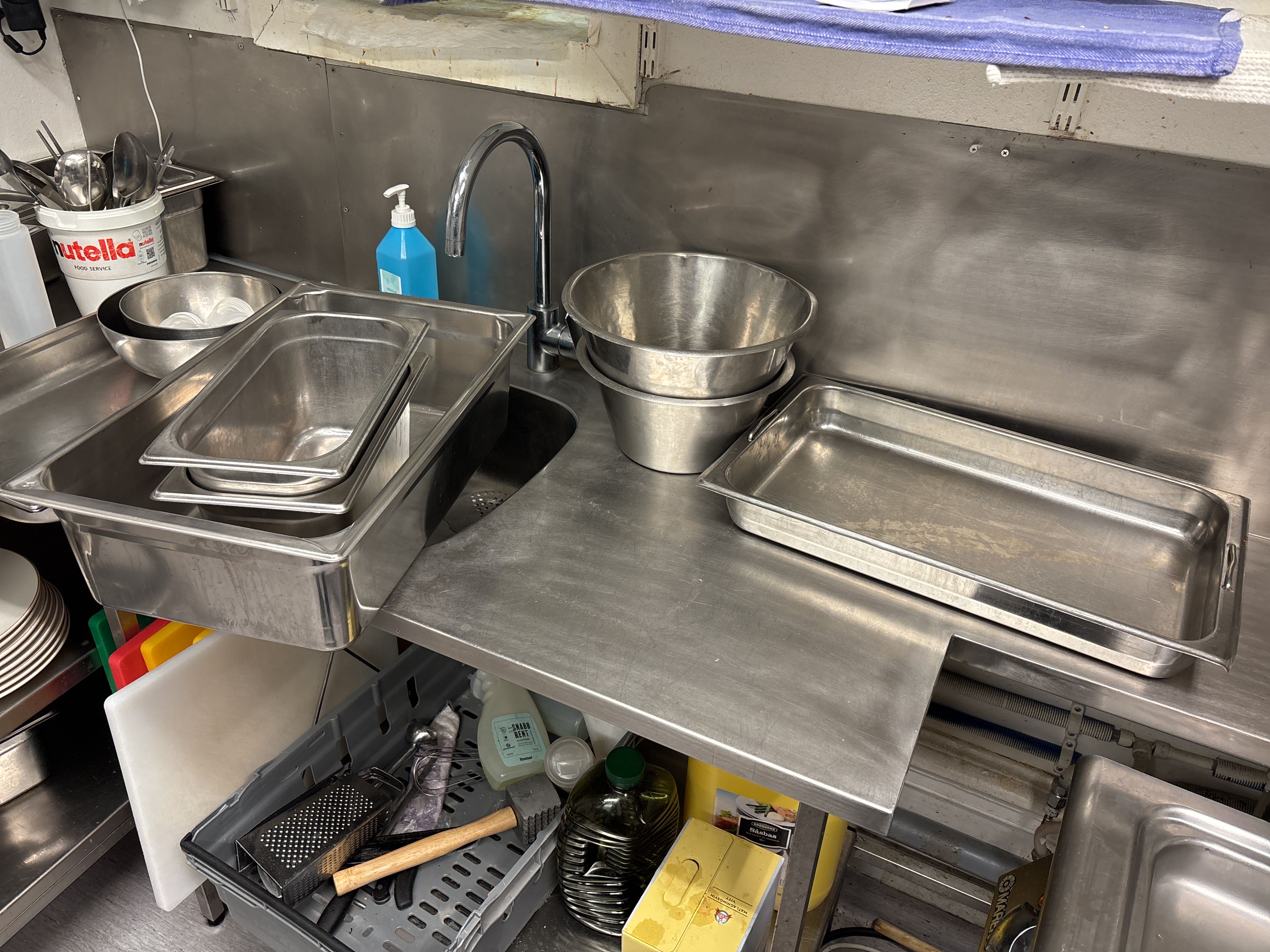 In-/utväg till restaurangdelen sker via en dubbelsidig trappa (ca. 7st steg). Medtag därmed kompetent bärhjälp, alternativt lämplig lyftutrustning för att kunna hantera det som ska hämtas. Mått på dörrhåll för in-/utpassage är med bredd på 81 cm och en höjd på ca. 180 cm.