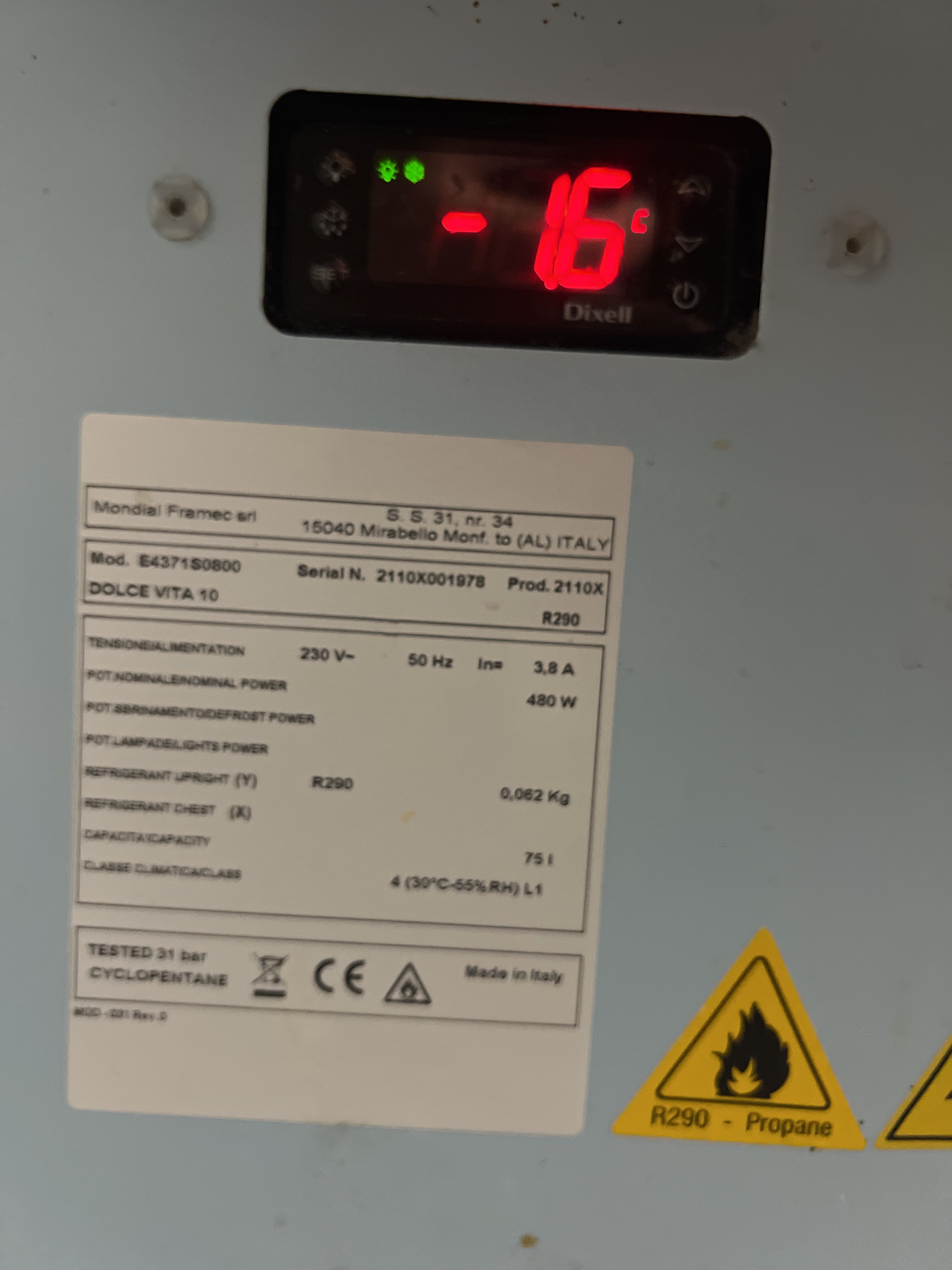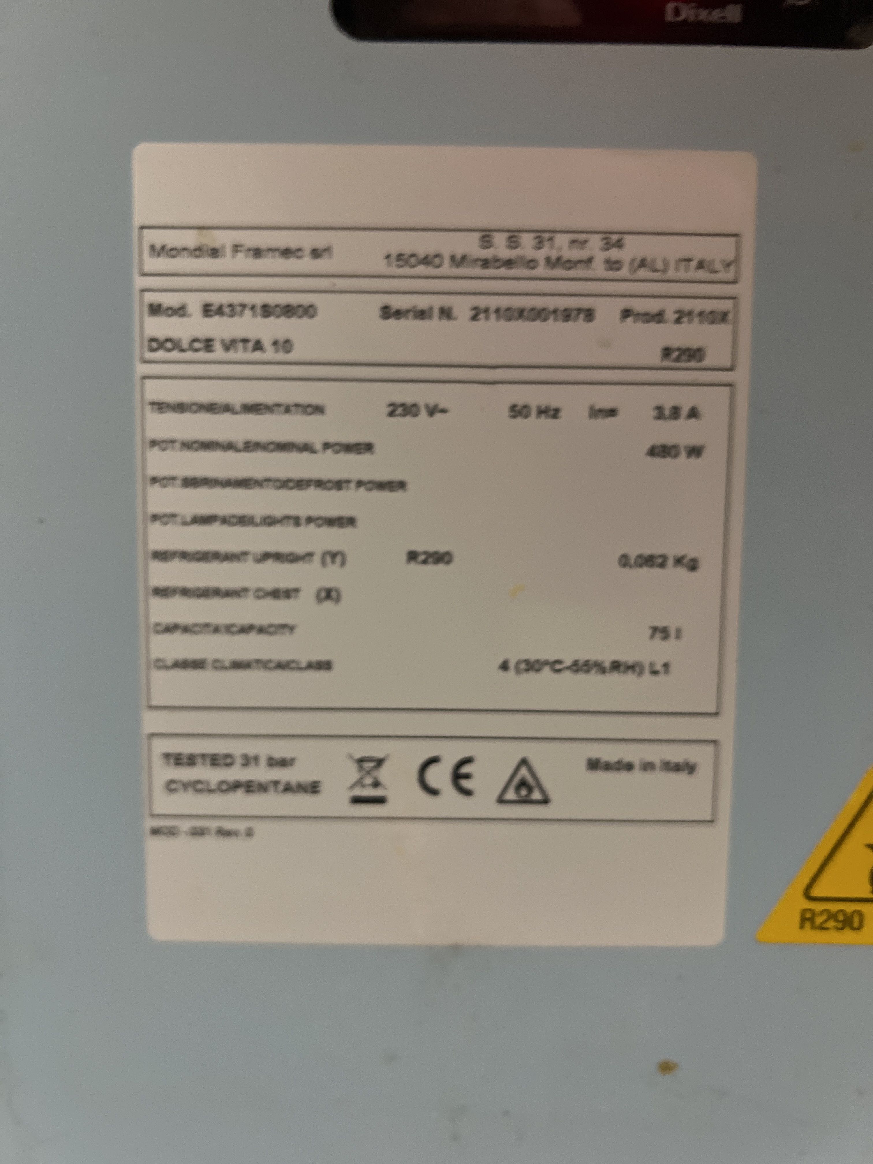 • Köldmedium: R290 (0,062 kg)