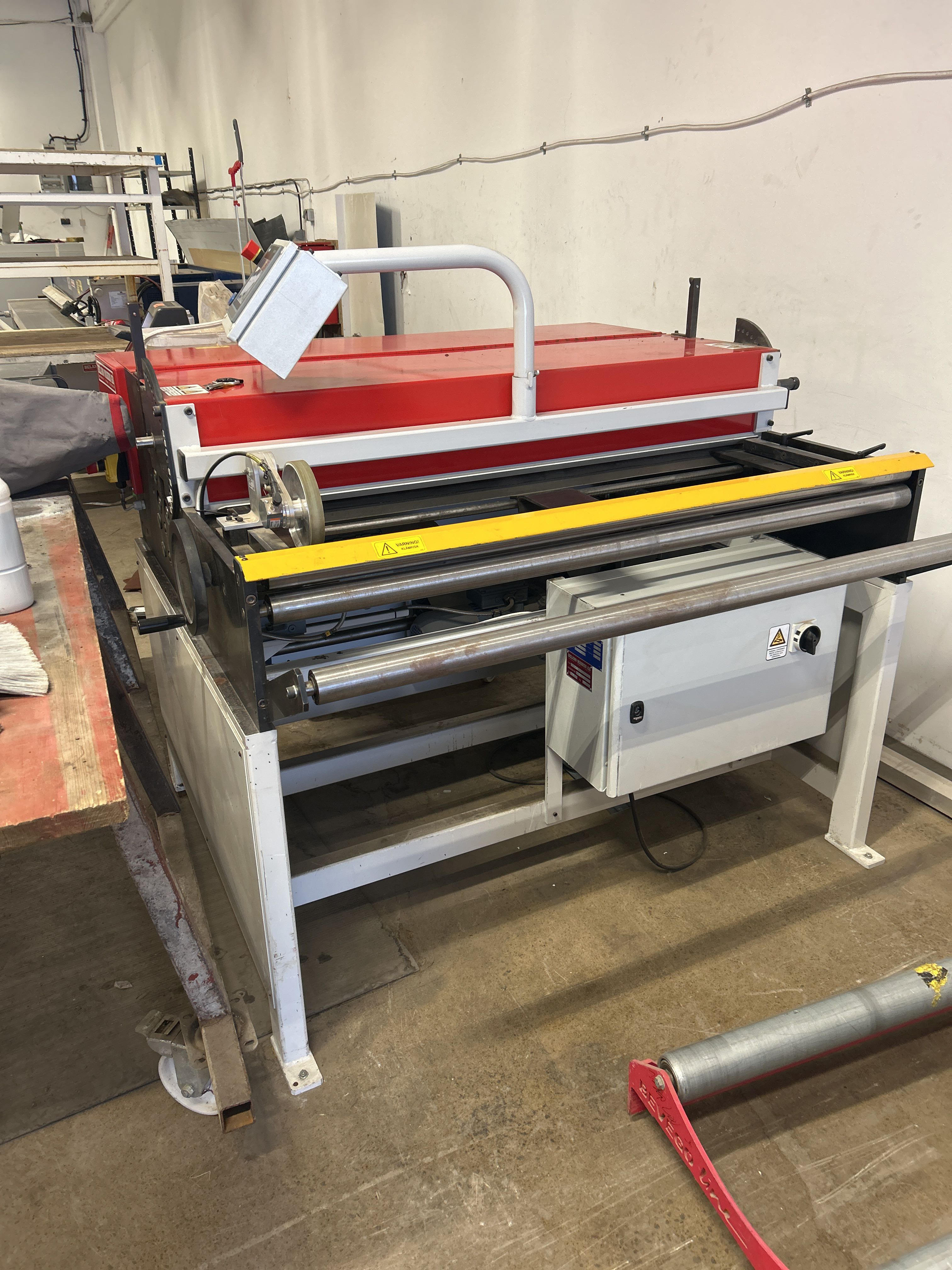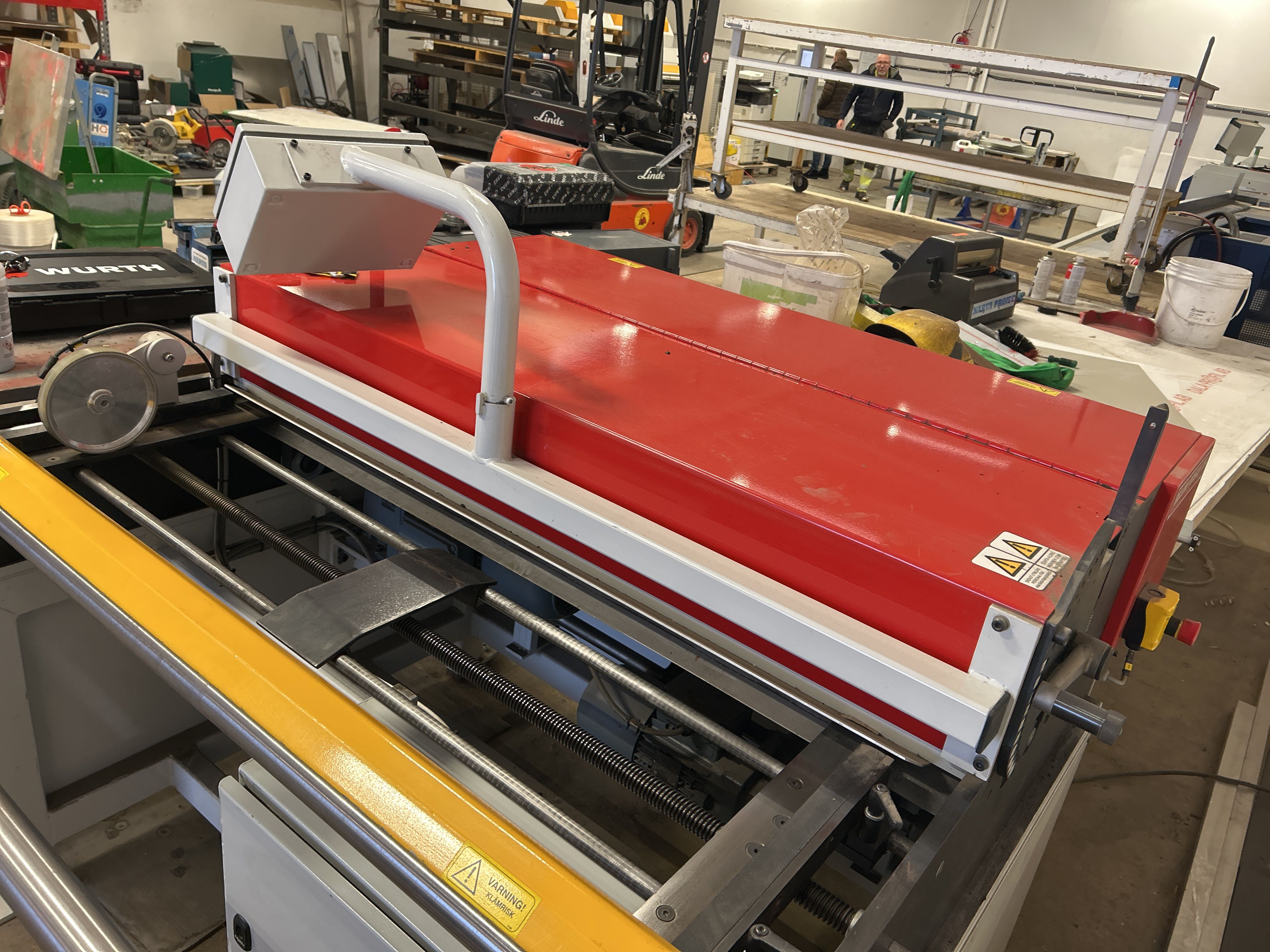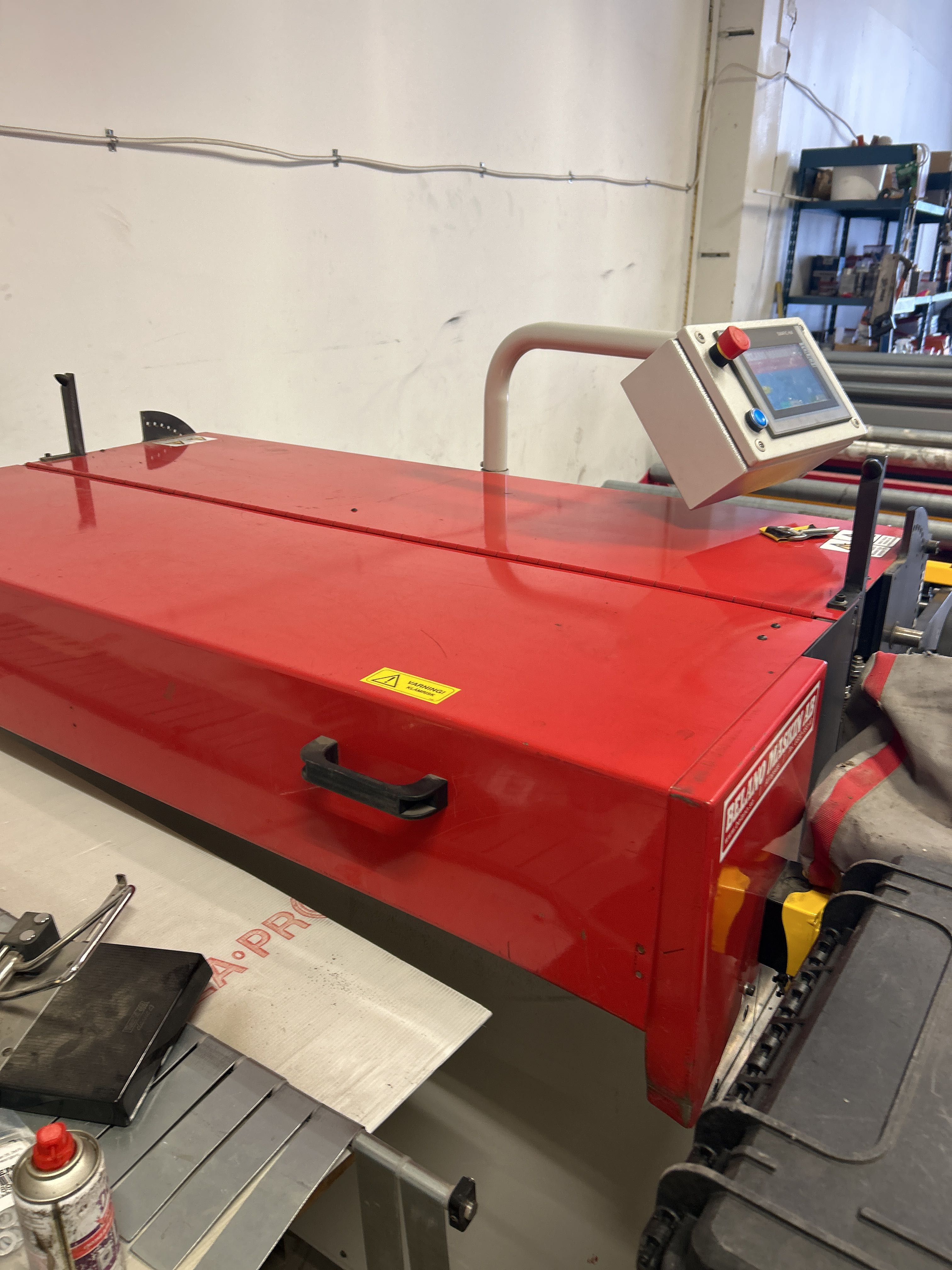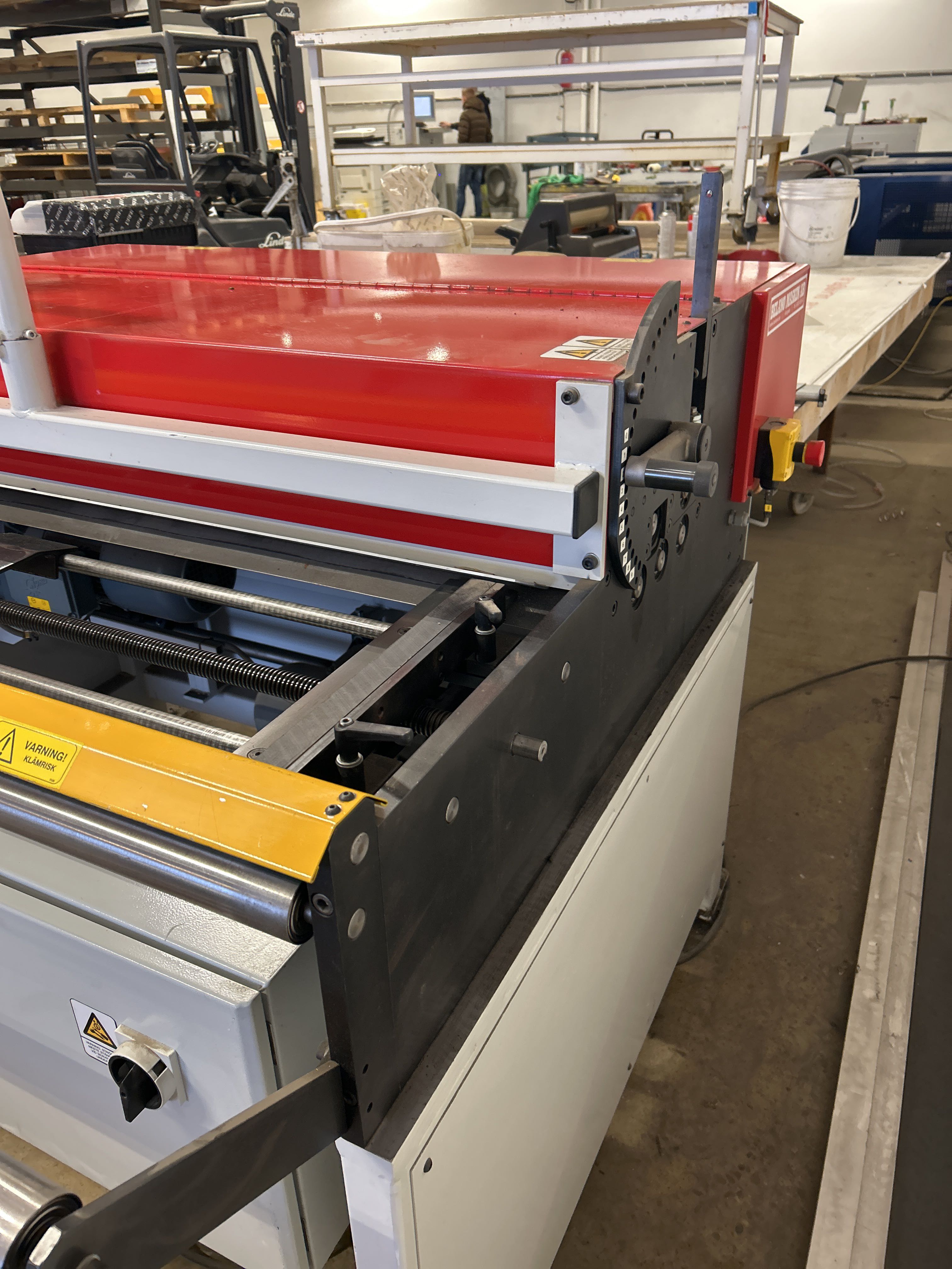 - Kraftig och kompakt klippsträcka med integrerad gradsax och trevalsigt riktverk. Utrustad med styrsystem via Siemens Simatic HMI. Extra rullstativ medföljer för förlängning av materialsträckan med spindelskärning.