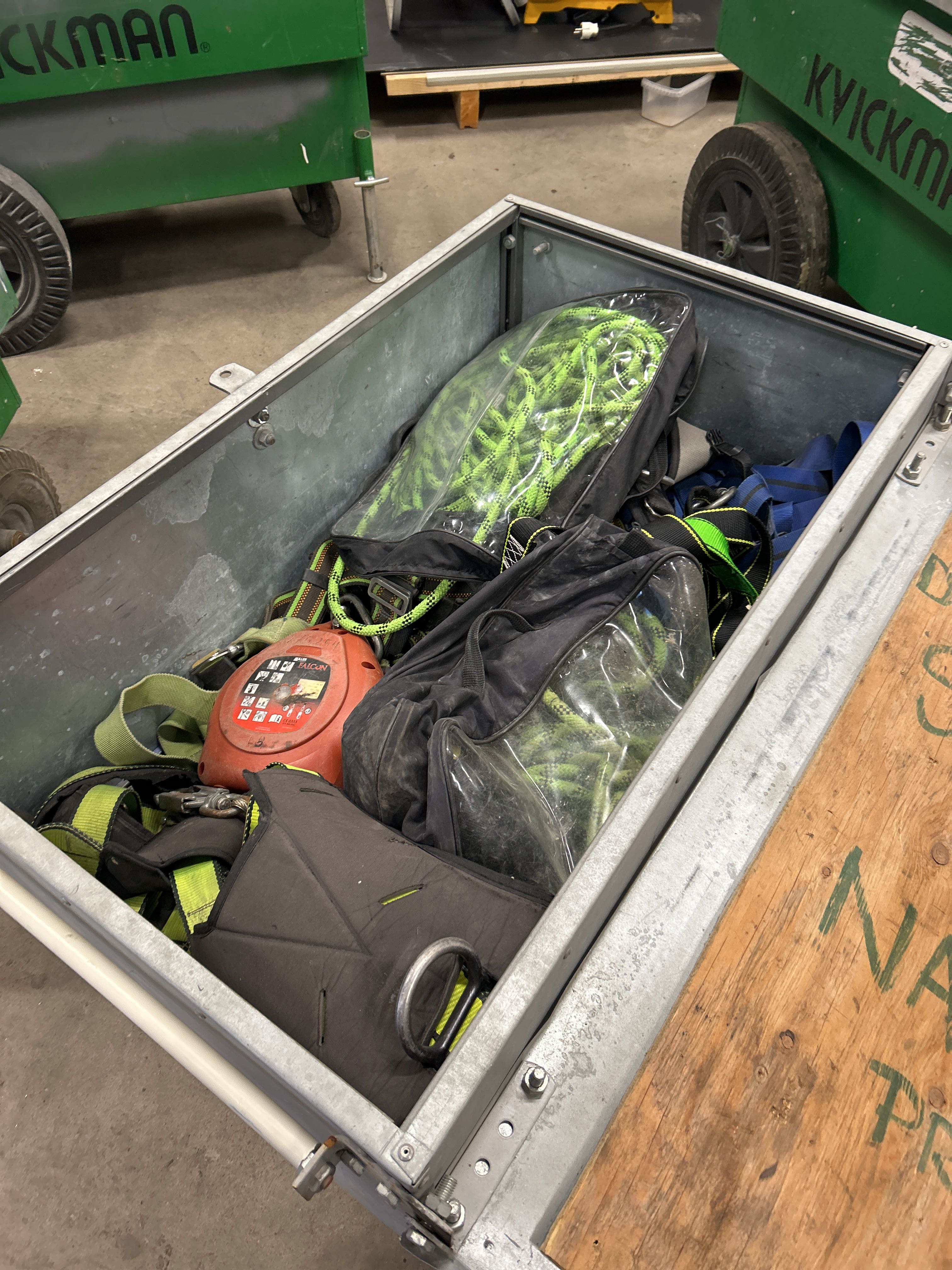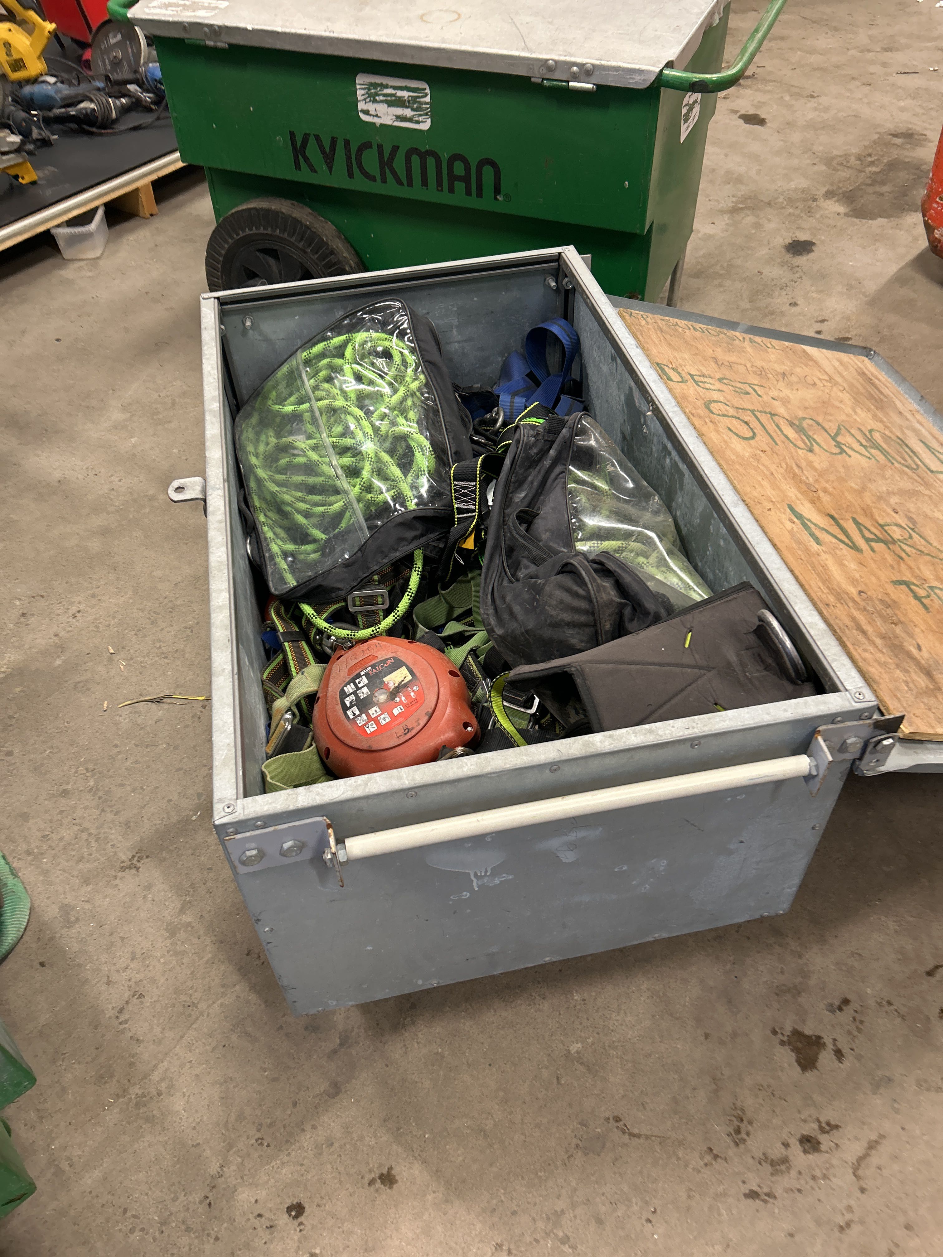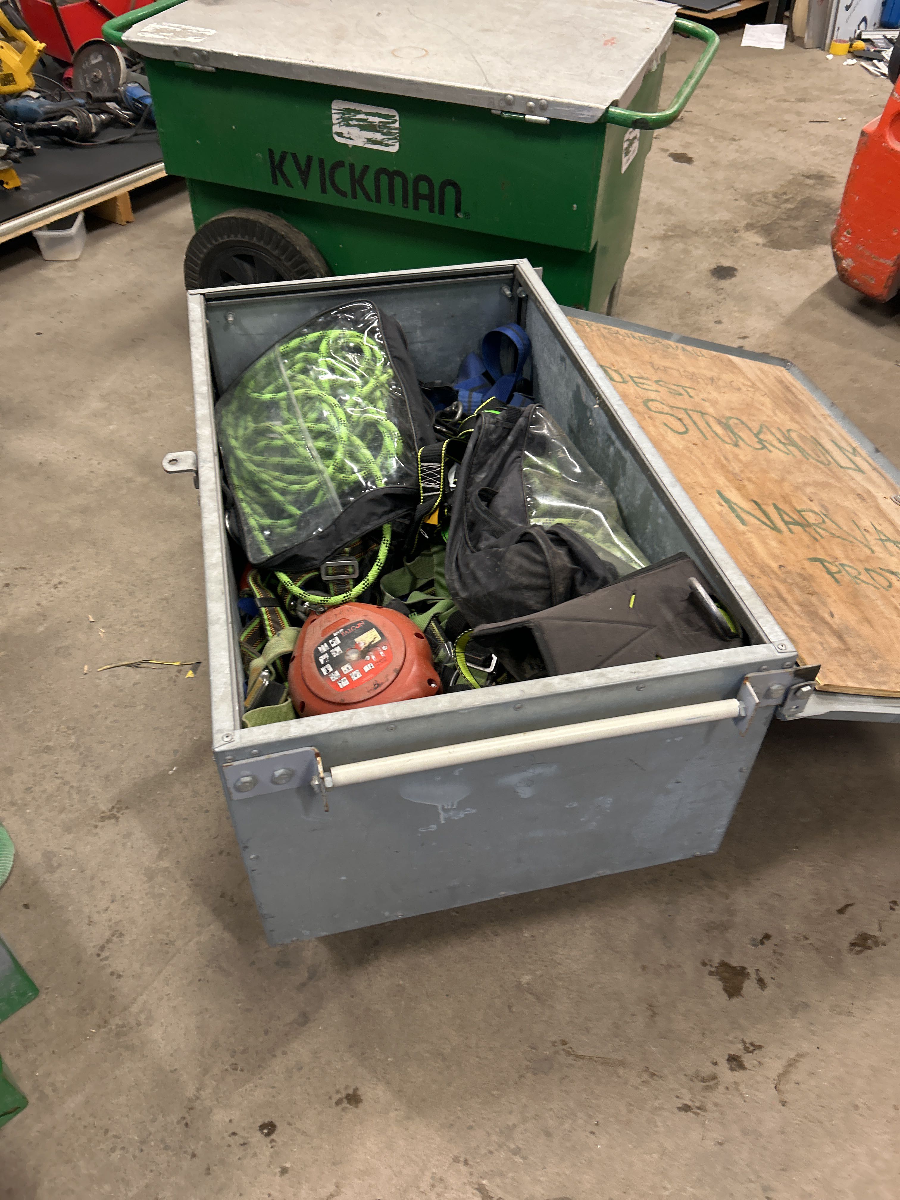 Plåtlåda med fallskyddsutrustning