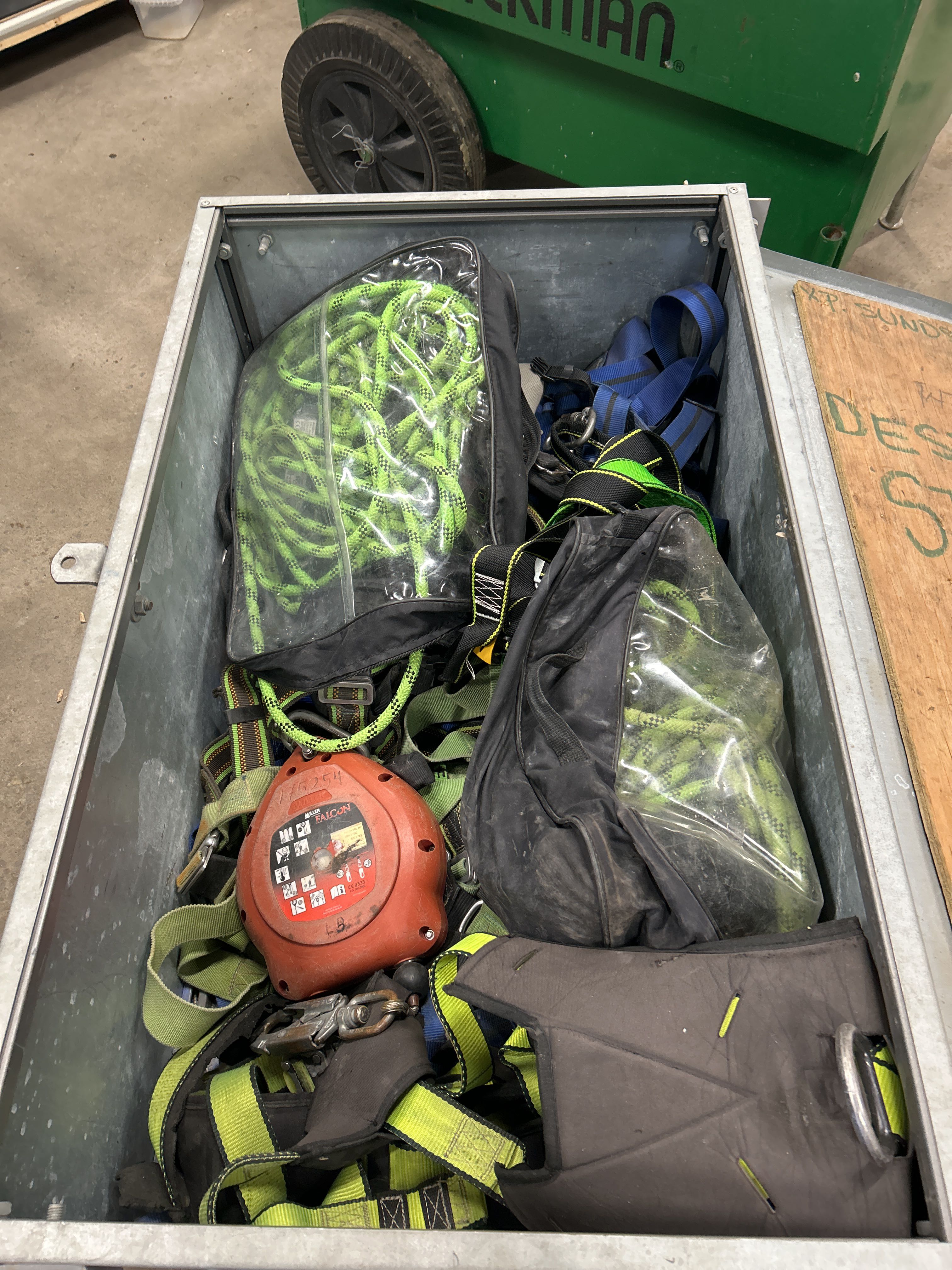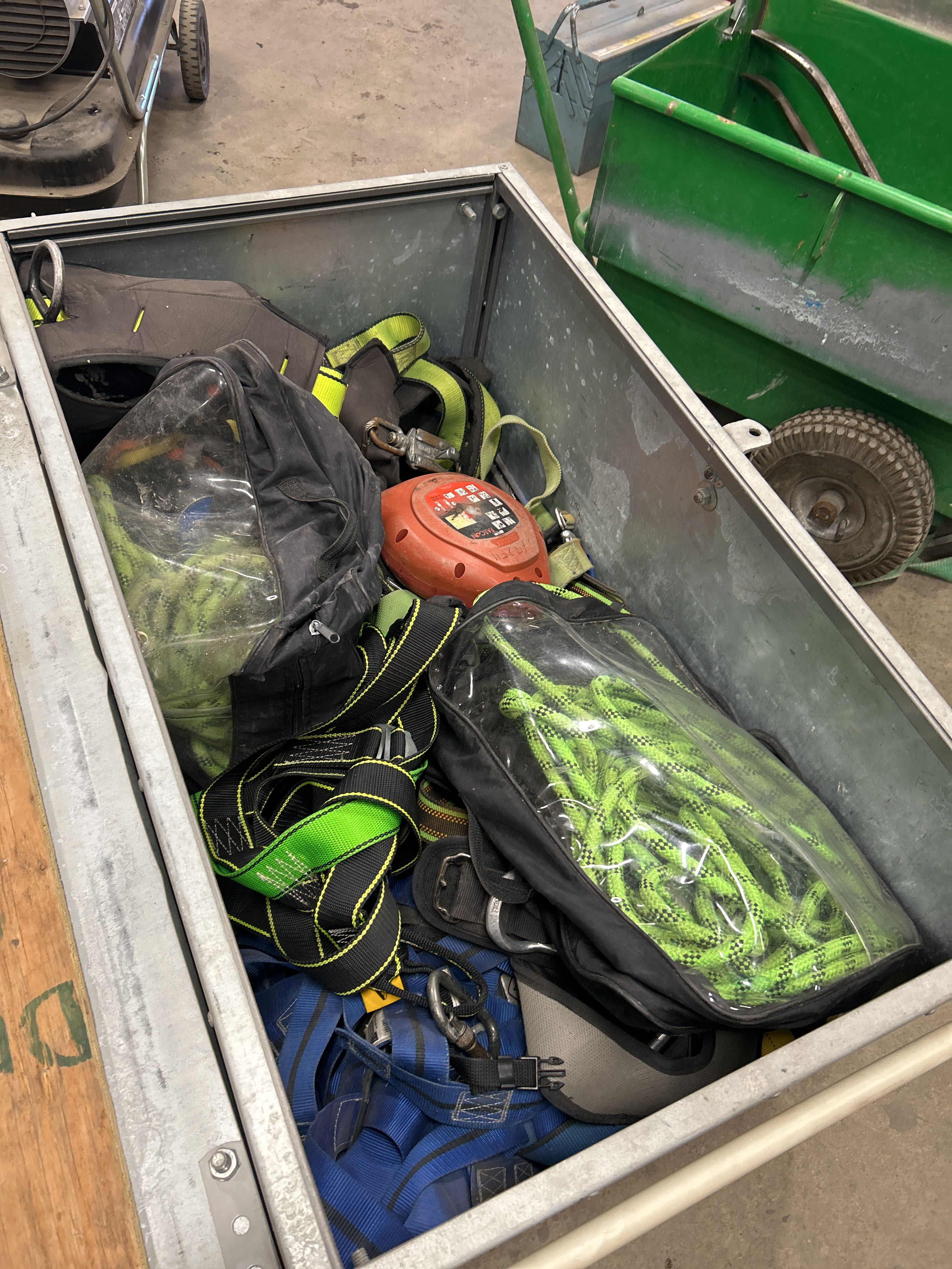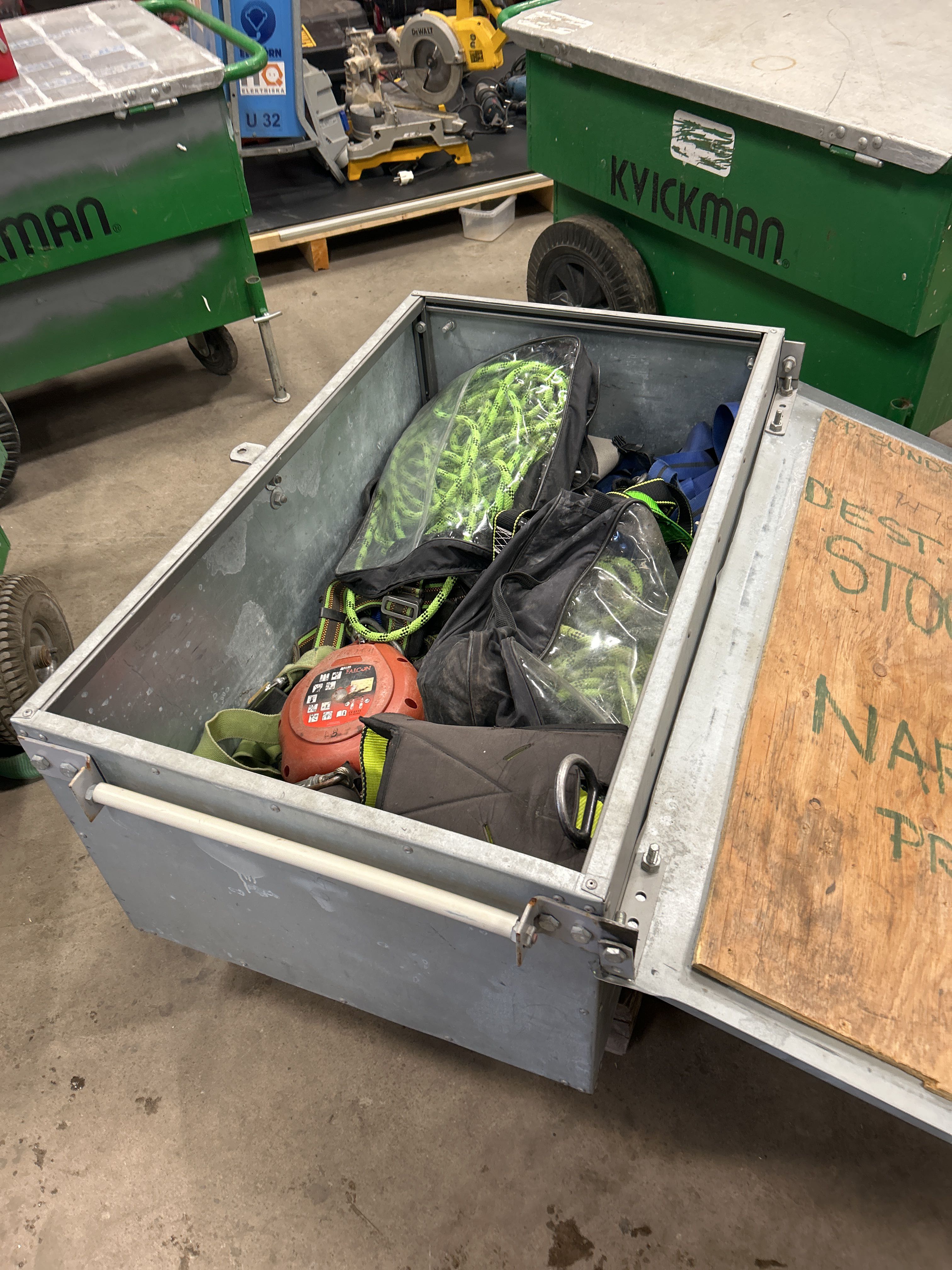 Plåtlåda med fallskyddsutrustning