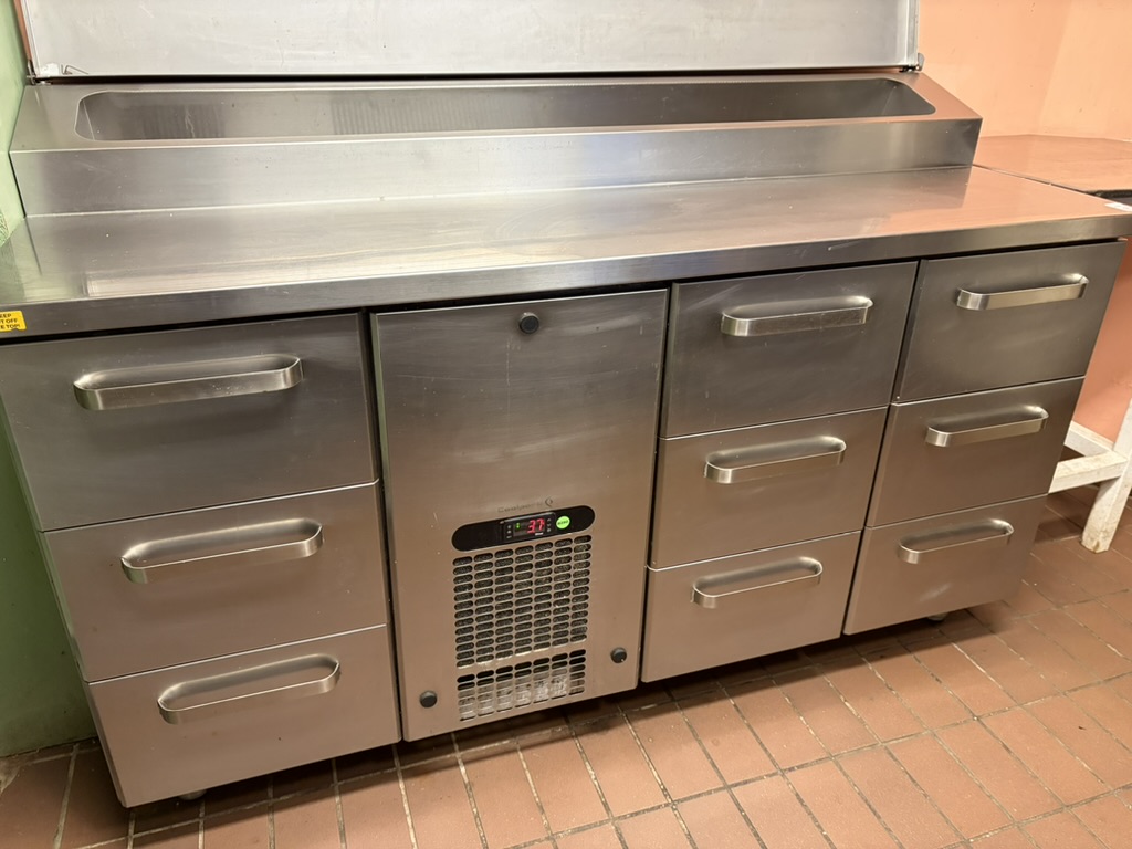 Rostfri kylbänk Coolpart KLE1609 med kylränna och 9 st utdragbara lådor.