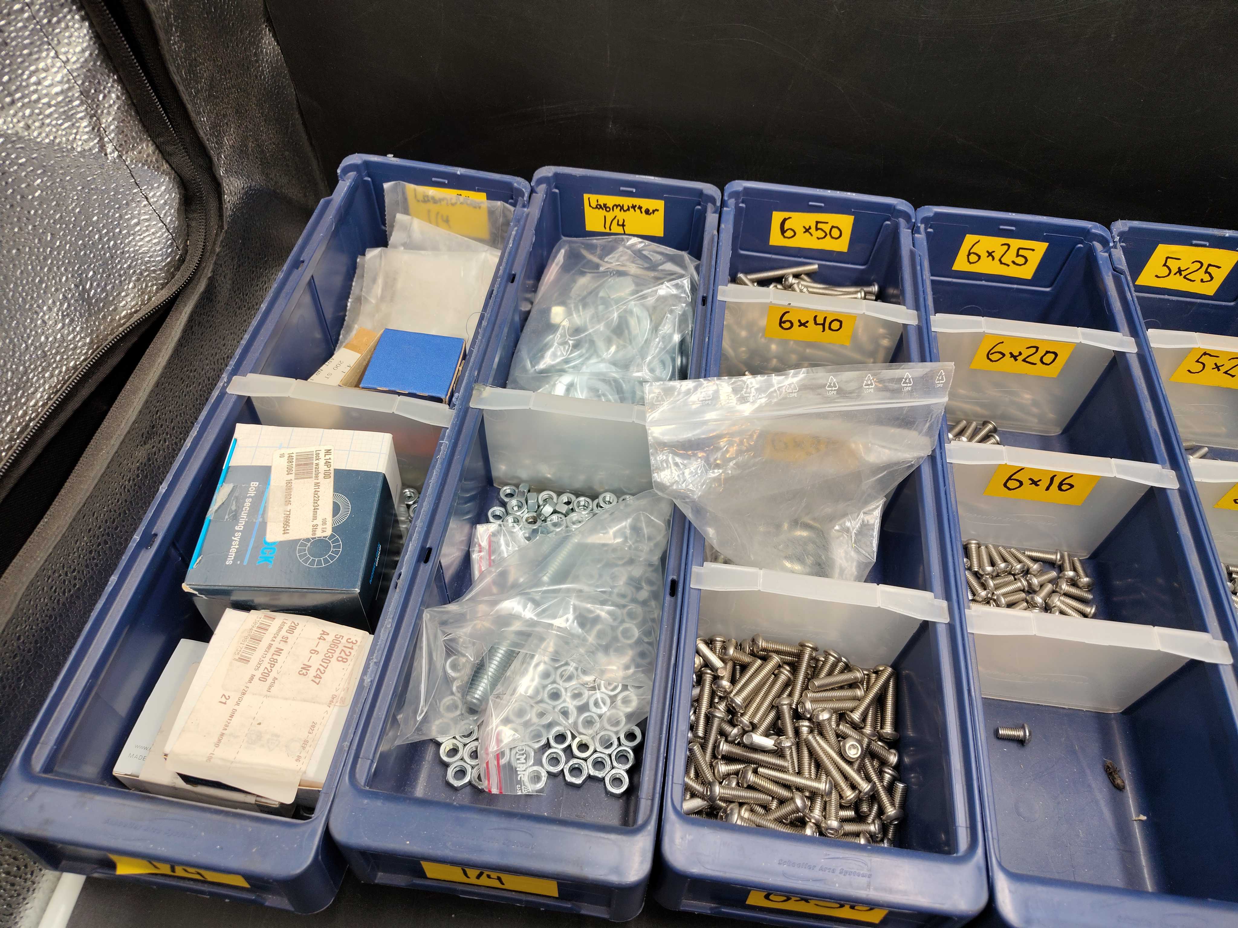 Blandat sortiment av fästelement lämpat för verkstad, bygg, service eller förråd. Sortimentet omfattar olika typer och utföranden som passar för en rad infästnings- och monteringsarbeten. Ett praktiskt parti för den som vill komplettera sitt lager eller ha material tillgängligt för varierande behov.