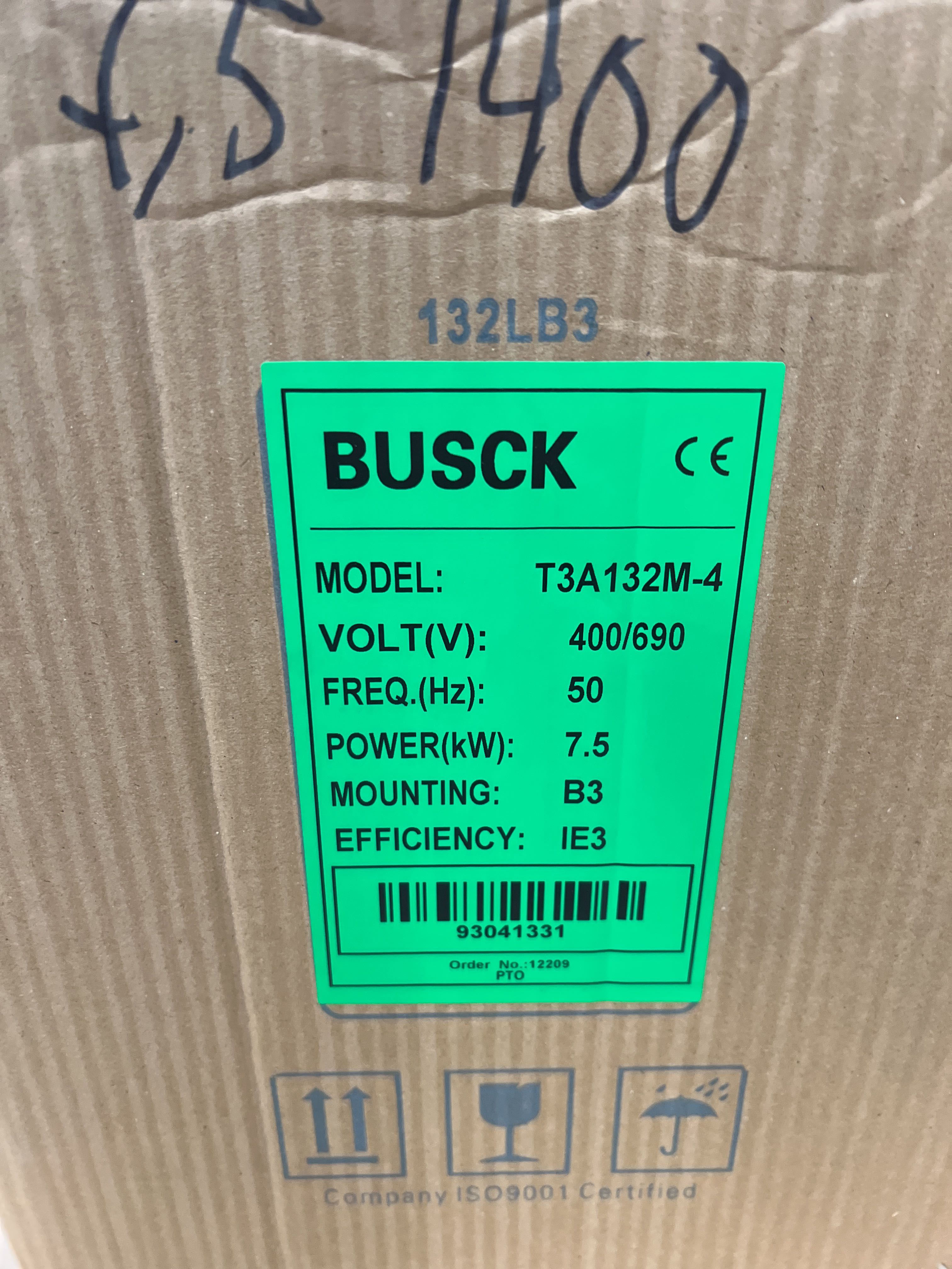 3-fasmotor Busck T3A132M-4 7,5kw 1400 r/m 400/690V B3