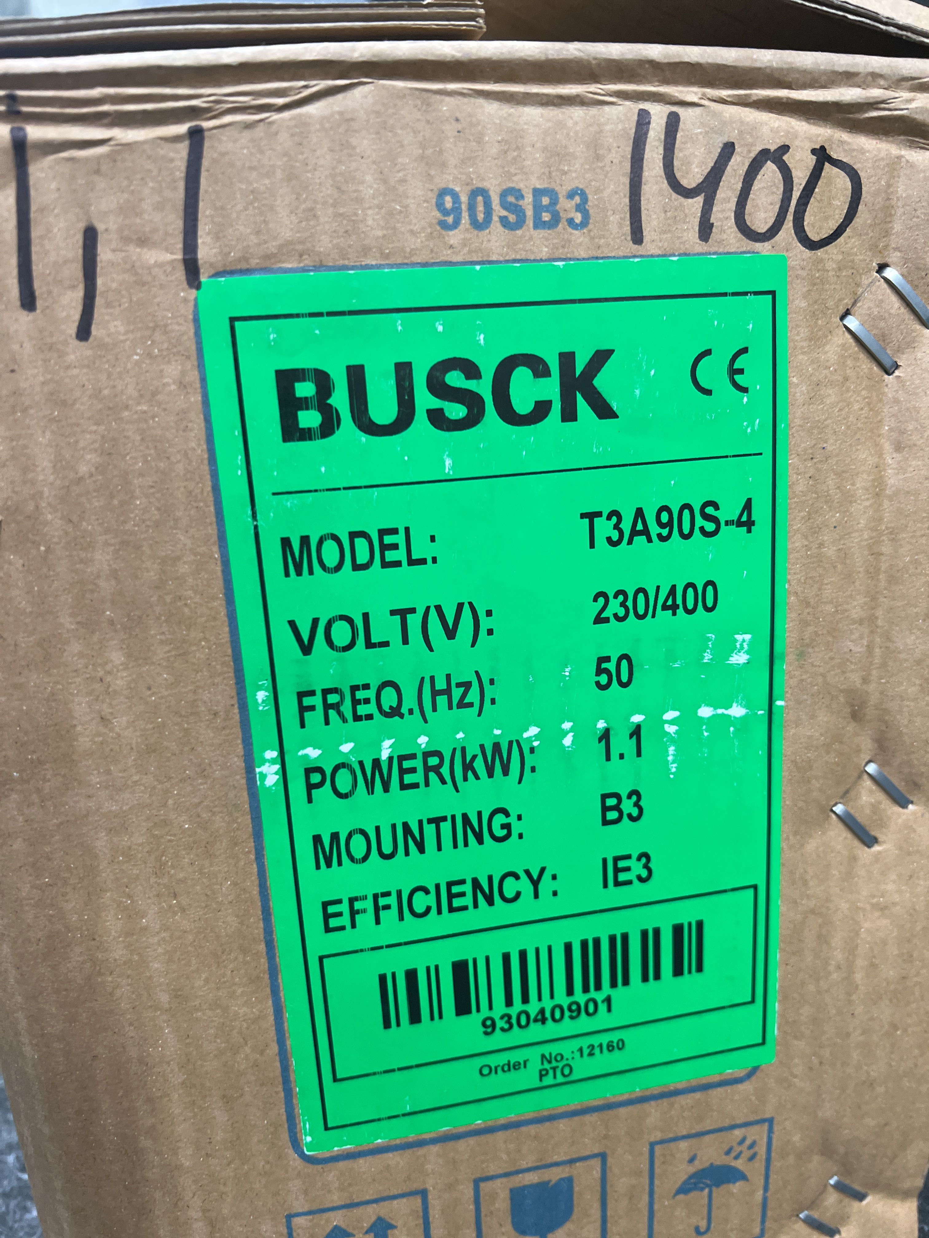 1471096 3-fasmotor Busck T3A90S-4 1,1kw 1400r/m 230/400V B3